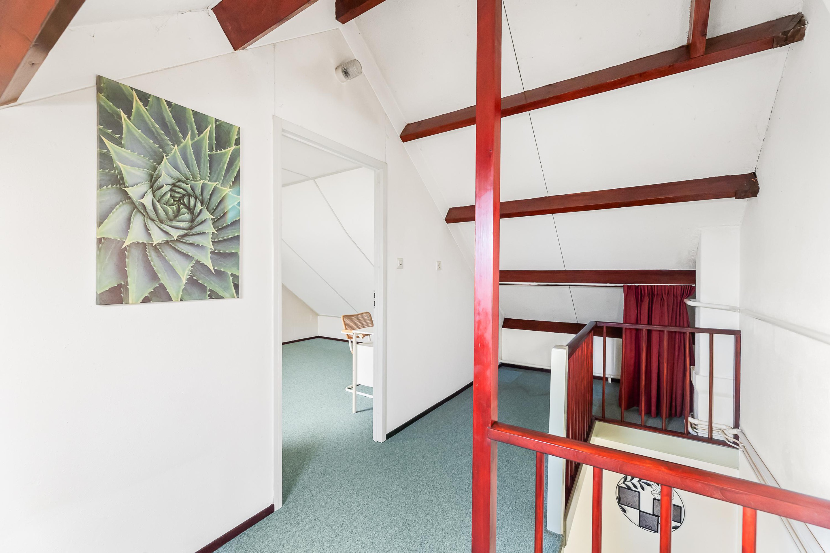 overloop met opstelling c.v.-combiketel (Atag, bouwjaar 2013). Hier is ook ruimte om een wasmachine- en drogeraansluiting te creëren. Hier bevindt zich de vierde slaapkamer (ca. 18 m2).