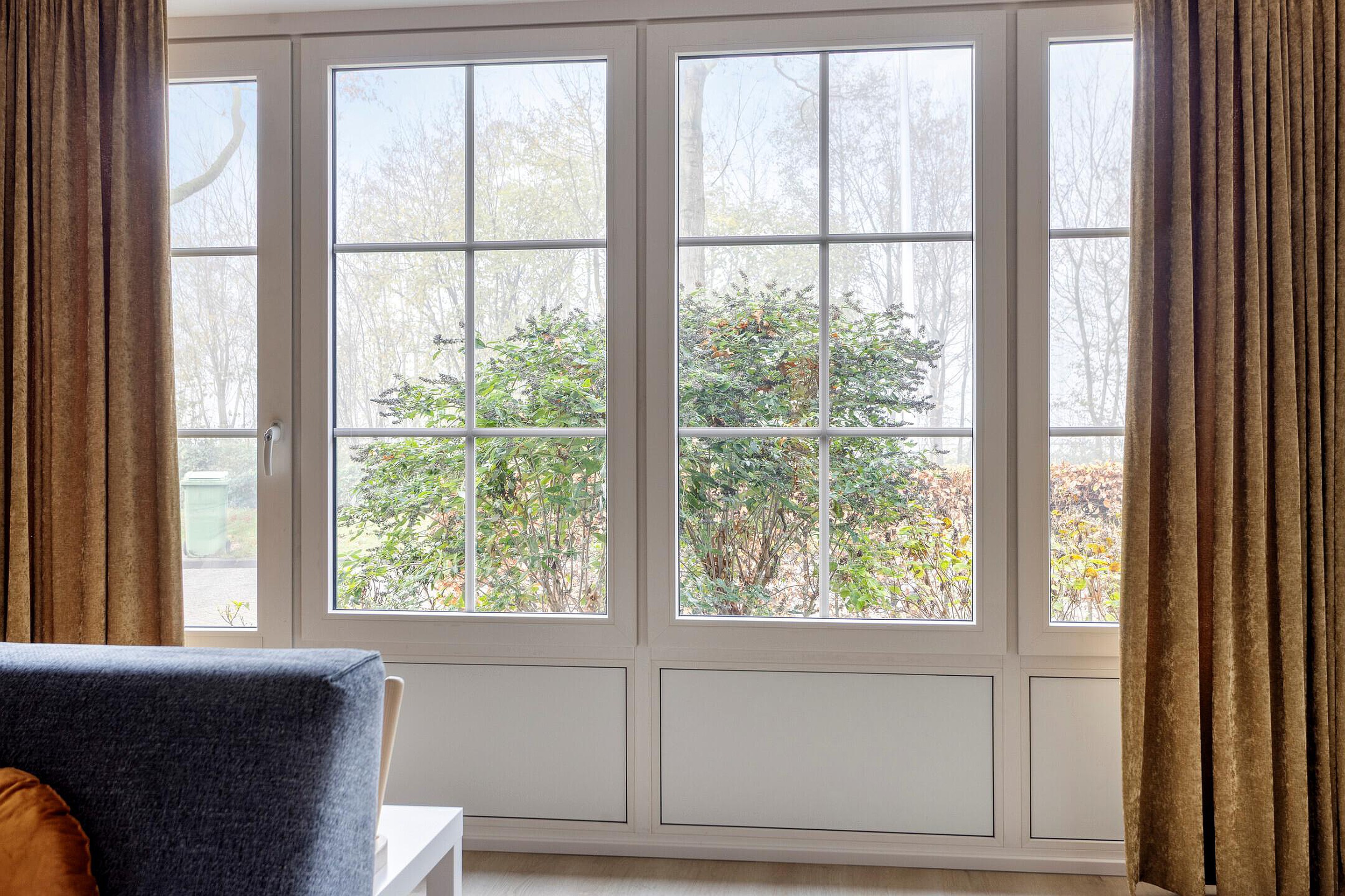 - de woning is bijna geheel voorzien van kunststof kozijnen met isolerende beglazing;