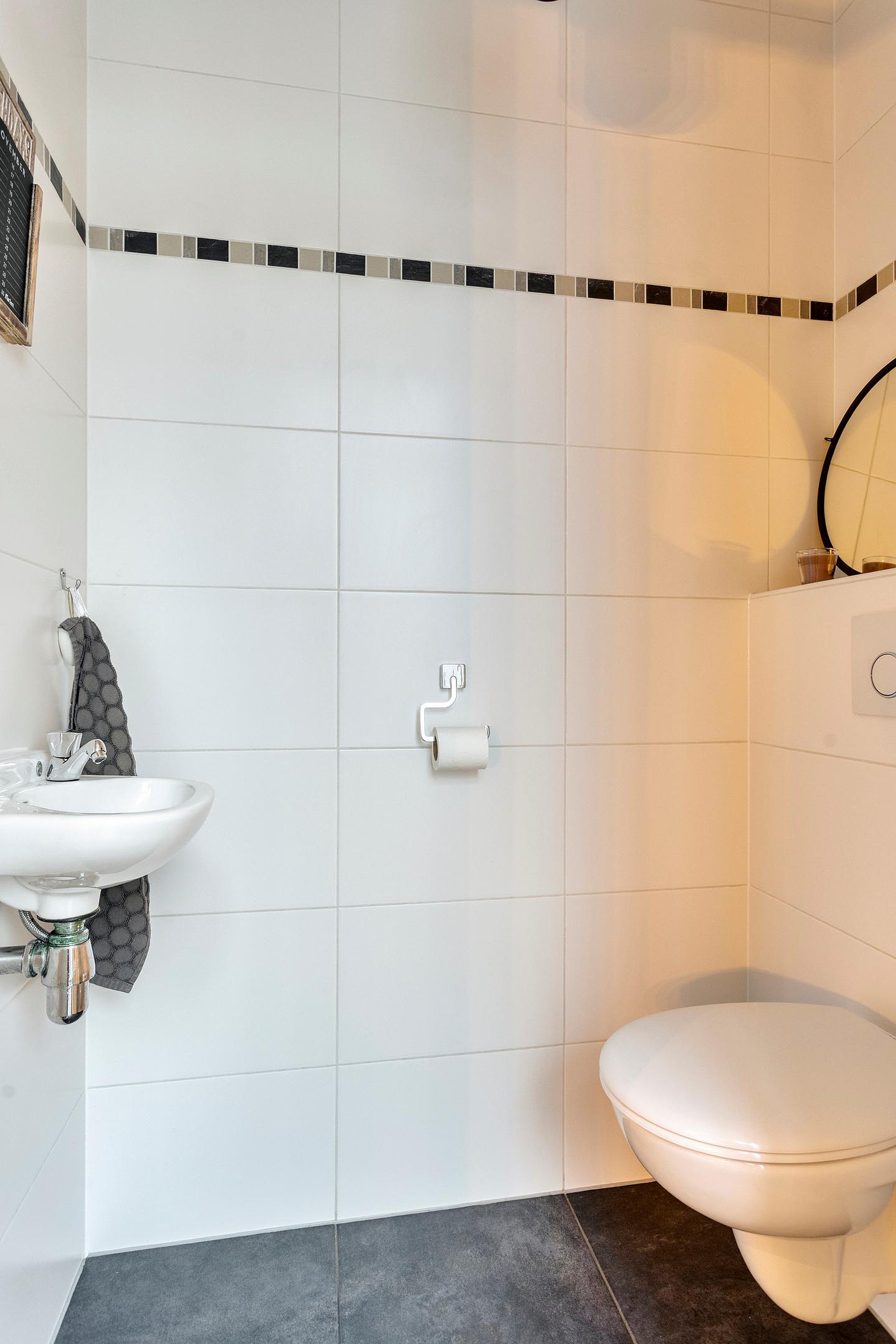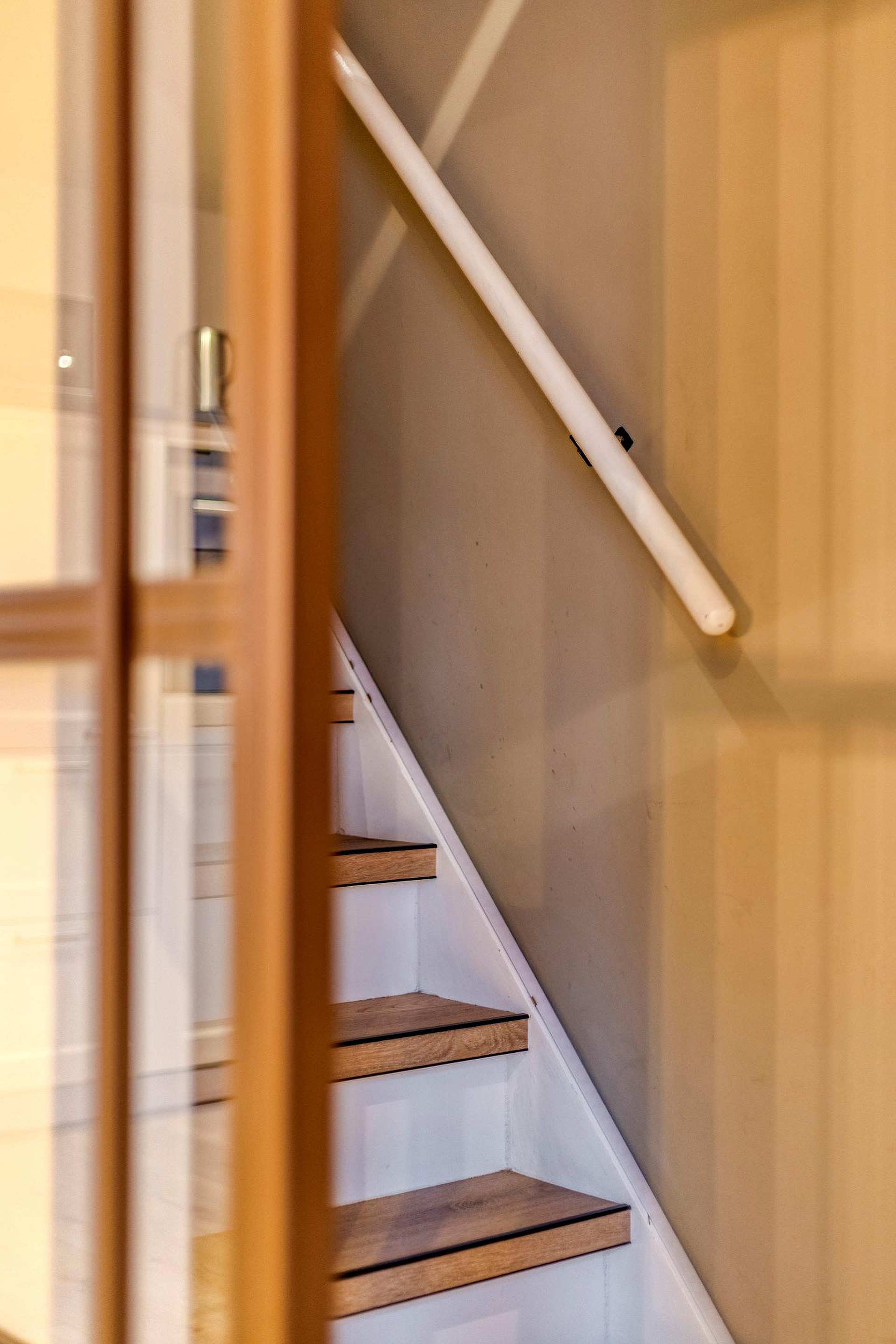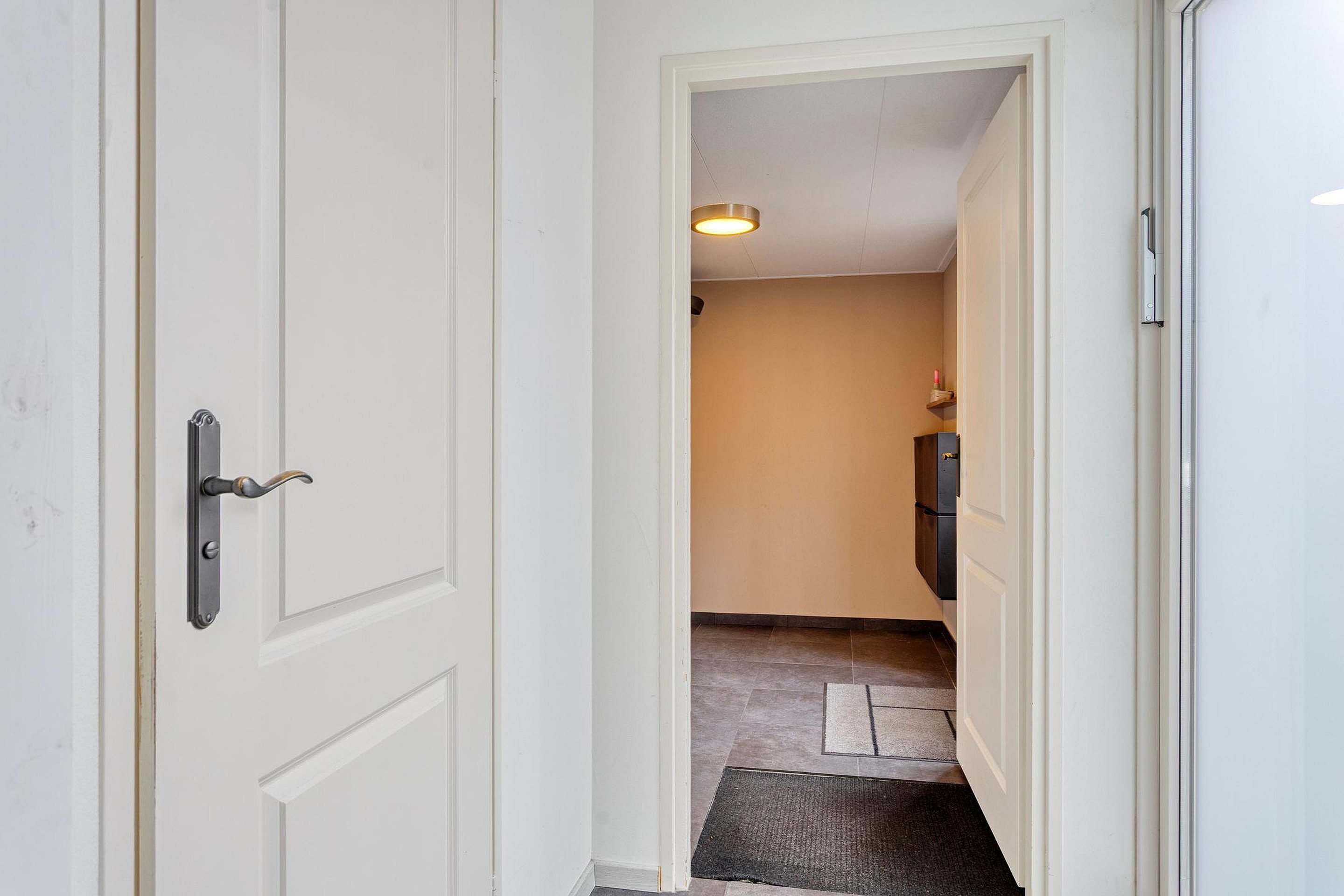Begane grond Entree / bijkeuken, tussenhal met toilet. De woonkamer beschikt over veel lichtinval, tuindeur, trapopgang en een keukenblok met diverse inbouwapparatuur, o.a. een inductiekookplaat, afzuigkap, oven, vaatwasser en een koel-/vrieskast.