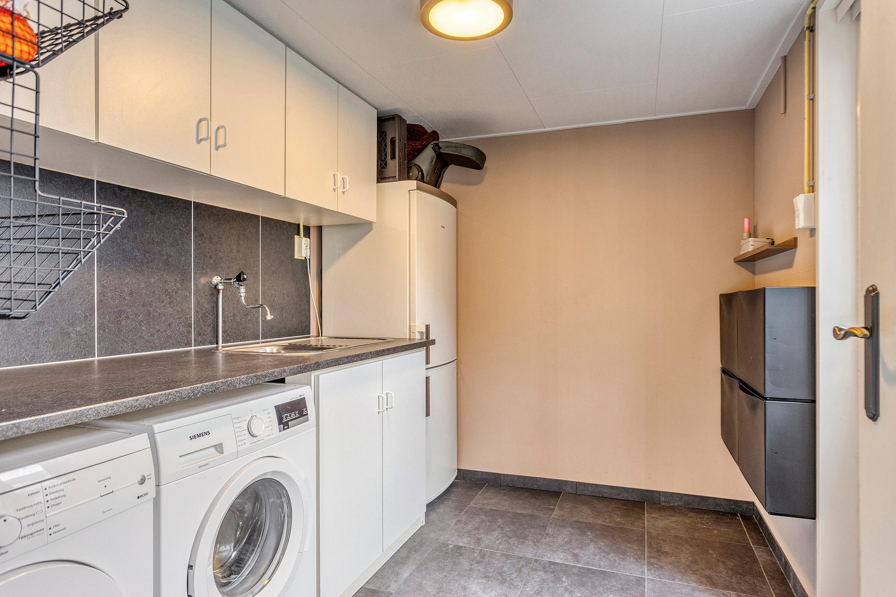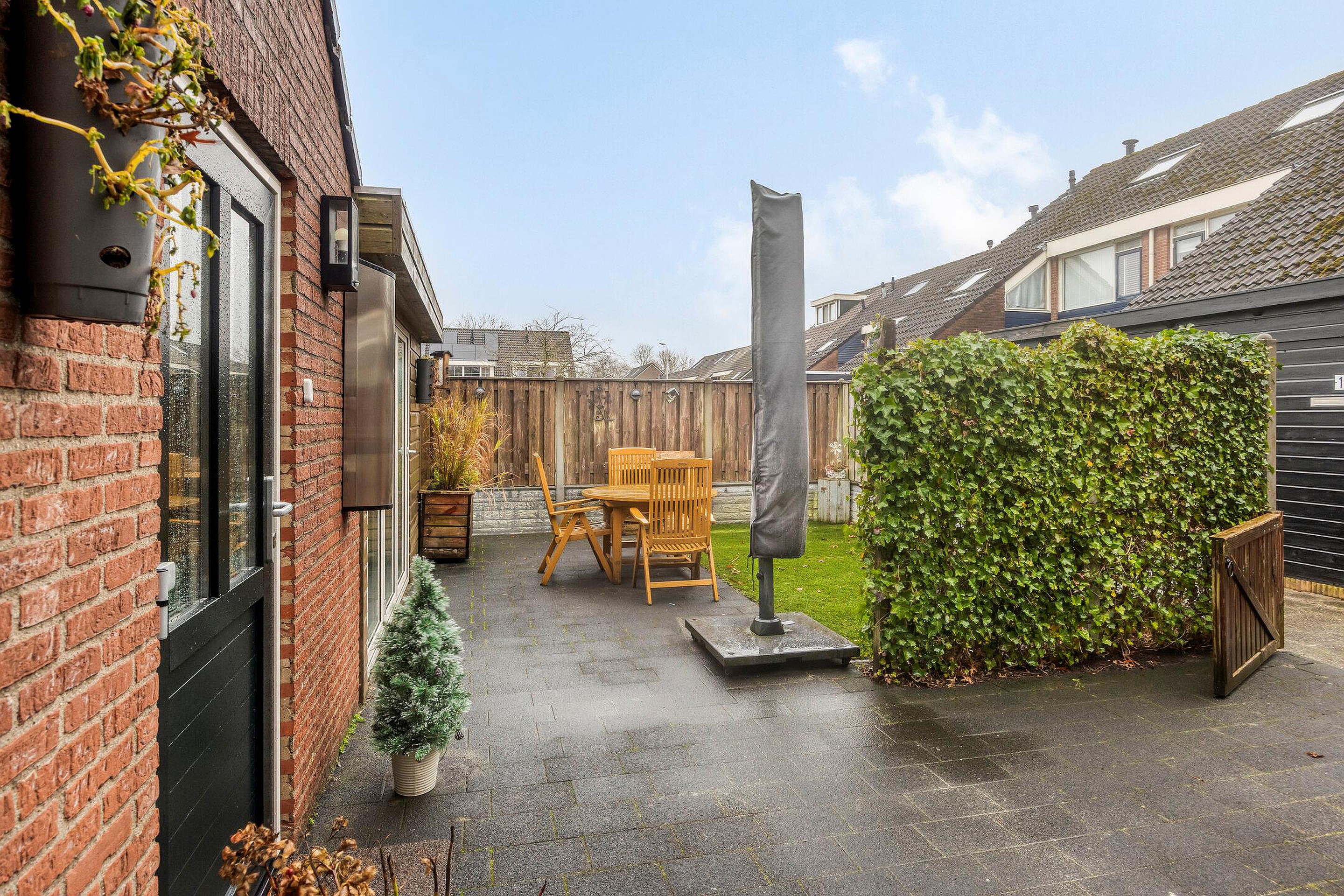 Tuin De onderhoudsvriendelijke achtertuin, gelegen op het oosten, beschikt over houten berging, een terras, een achterom en een toegang naar de garage. De stenen garage is voorzien van een vliering en opslaande deuren naar de oprit in de voortuin.