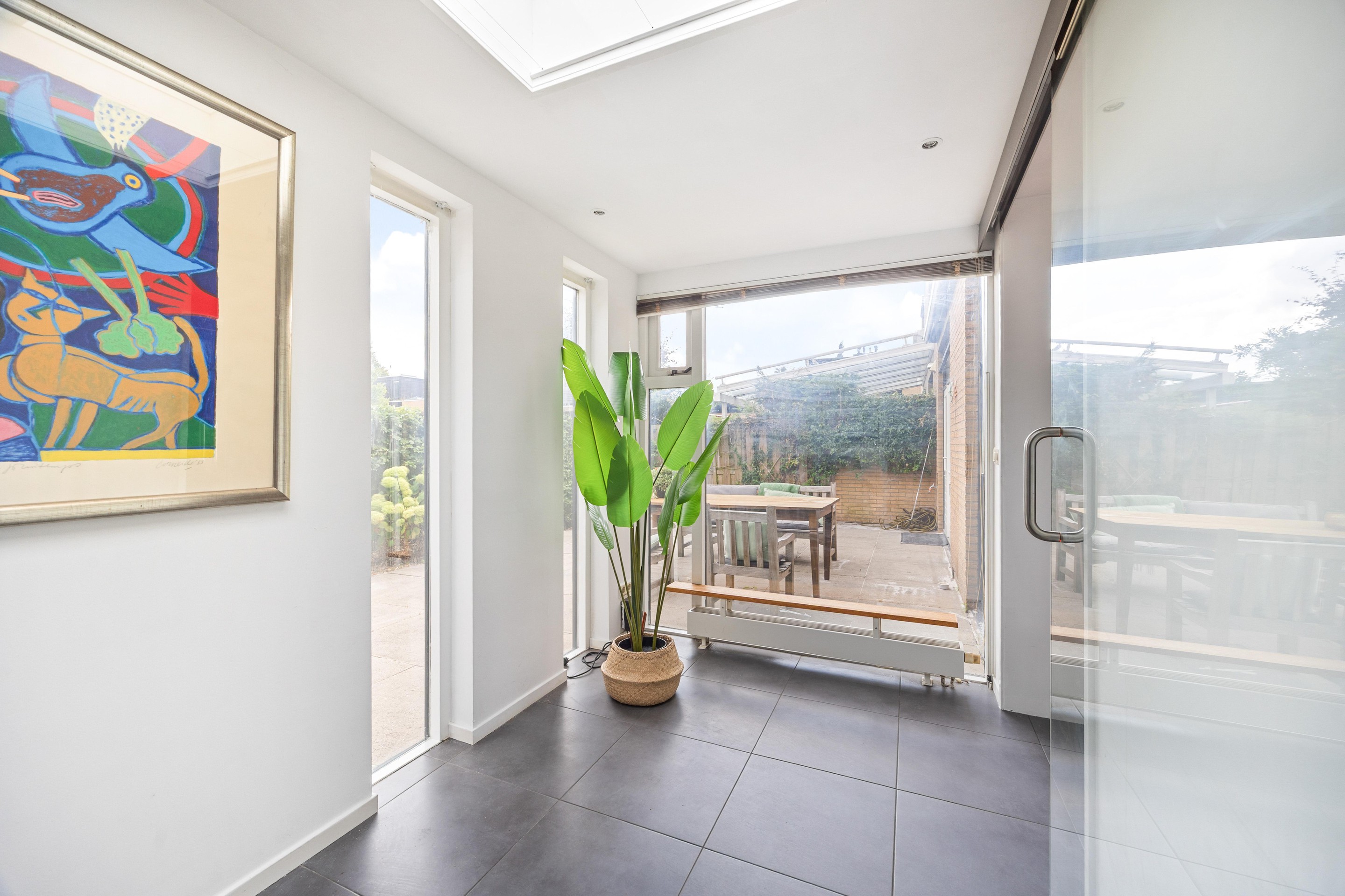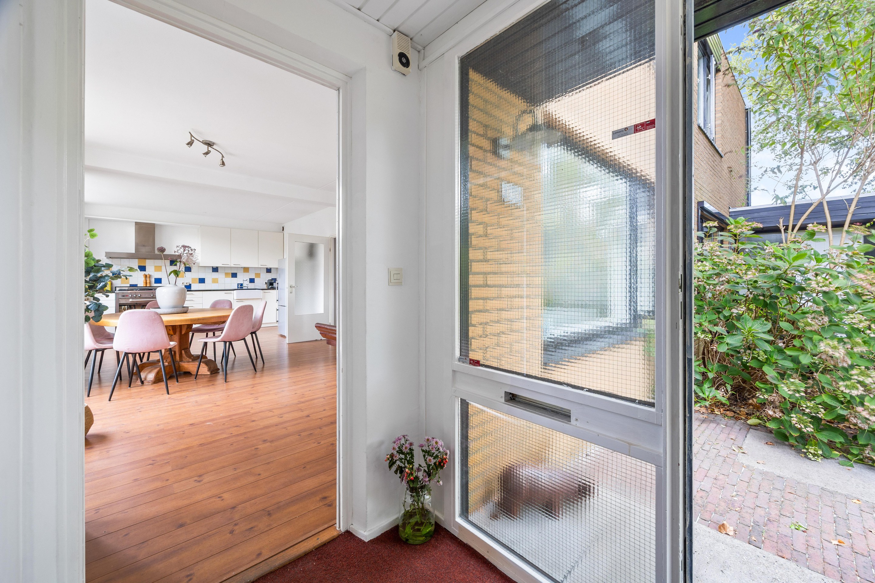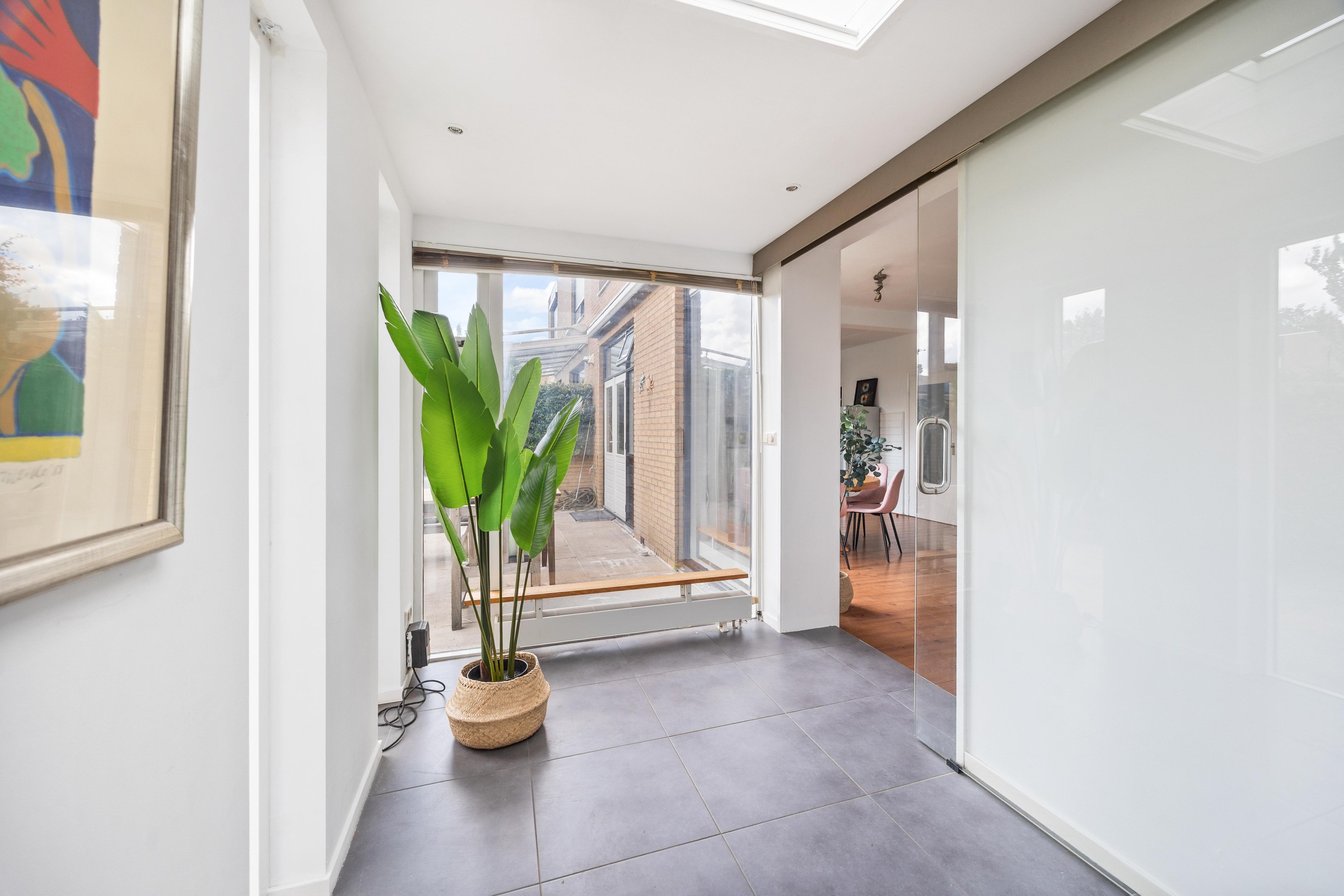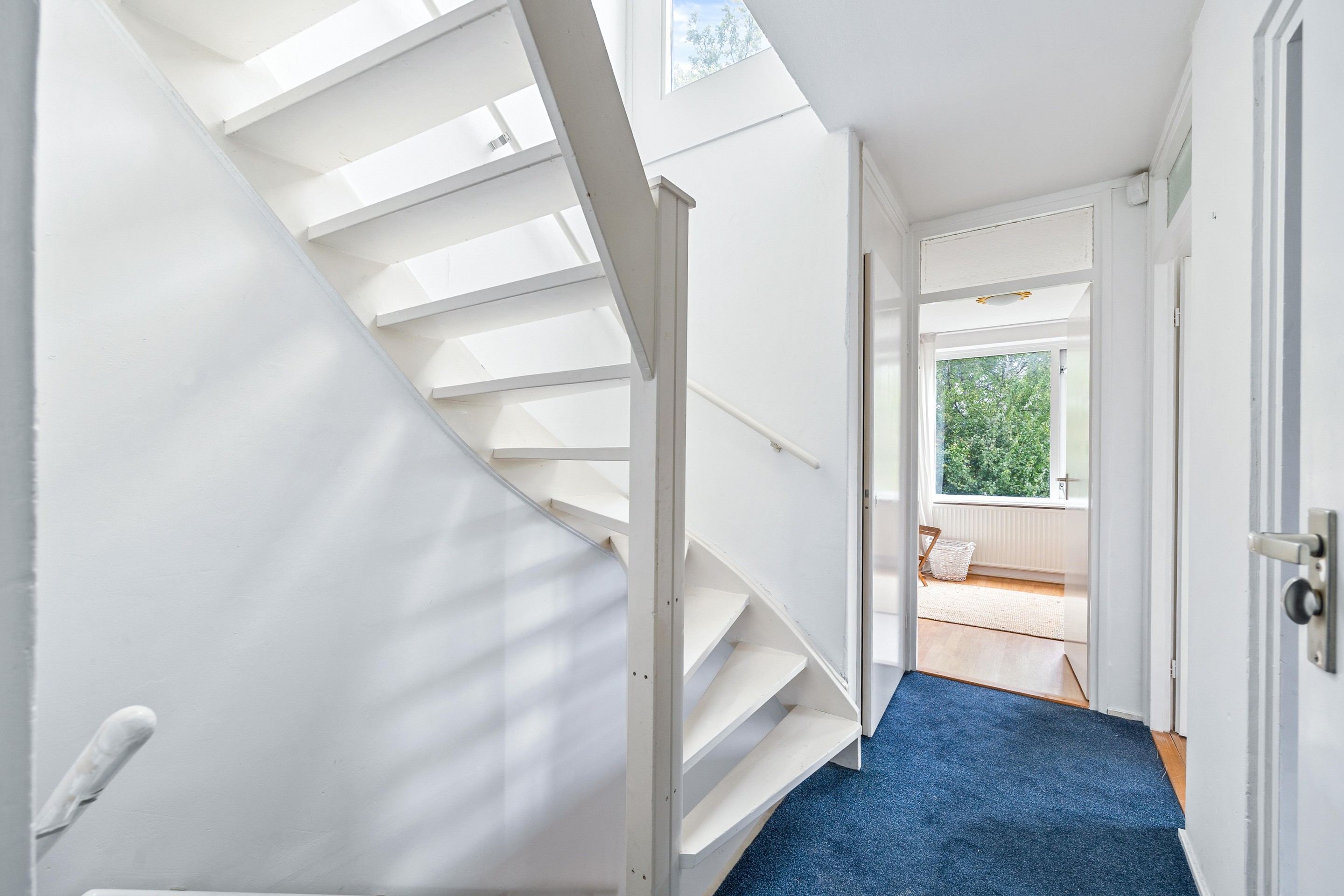 Ruime voortuin; entree in hal met meterkast en toegang tot de royale (ca.40 m2), heerlijk lichte woonkamer/eetkamer en openslaande deur bij de keuken naar de tuin. De open keuken is voorzien van diverse apparatuur. De aangrenzende bijkeuken heeft een opstelplaats voor wasmachine, droger en HR-combiketel en extra bergruimte onder de trap. Aan de woonkamer grenst de kantoor / speelkamer van ca. 9m2. Door de ligging van de tuin geniet u ’s ochtends en ’s middags van de zon. Aan de achterzijde van het huis staat een extra vrijstaande houten fietsenberging van ca. 6 m2.