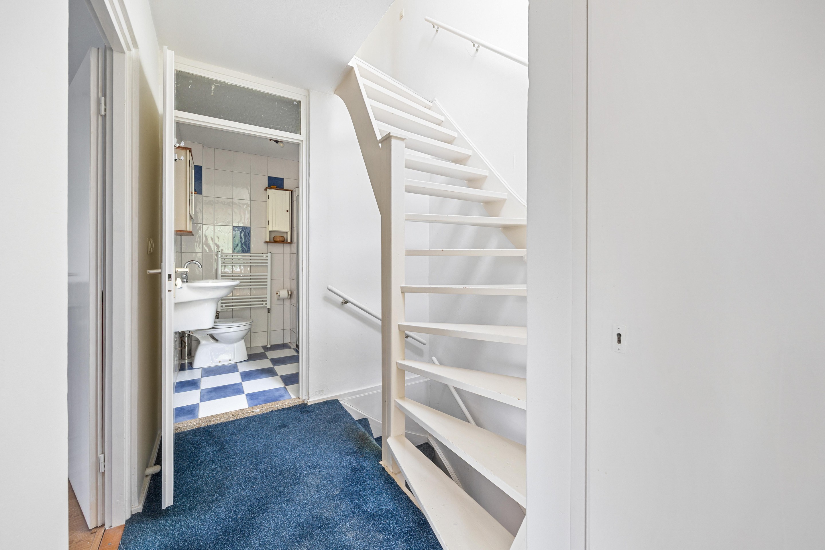 De eerste verdieping is bereikbaar via de hal naast de keuken, in de hal is een separaat toilet. Op de overloop van de 1e verdieping is een diepe bergkast, direct rechts bovenaan de trap is de gemoderniseerde badkamer welke is voorzien van een inloopdouche, een wastafelmeubel en een tweede toilet. Verder bevinden zich op de 1e verdieping 3 ruime slaapkamers, van respectievelijk ca. 16m2, 13m2 en 9m2.