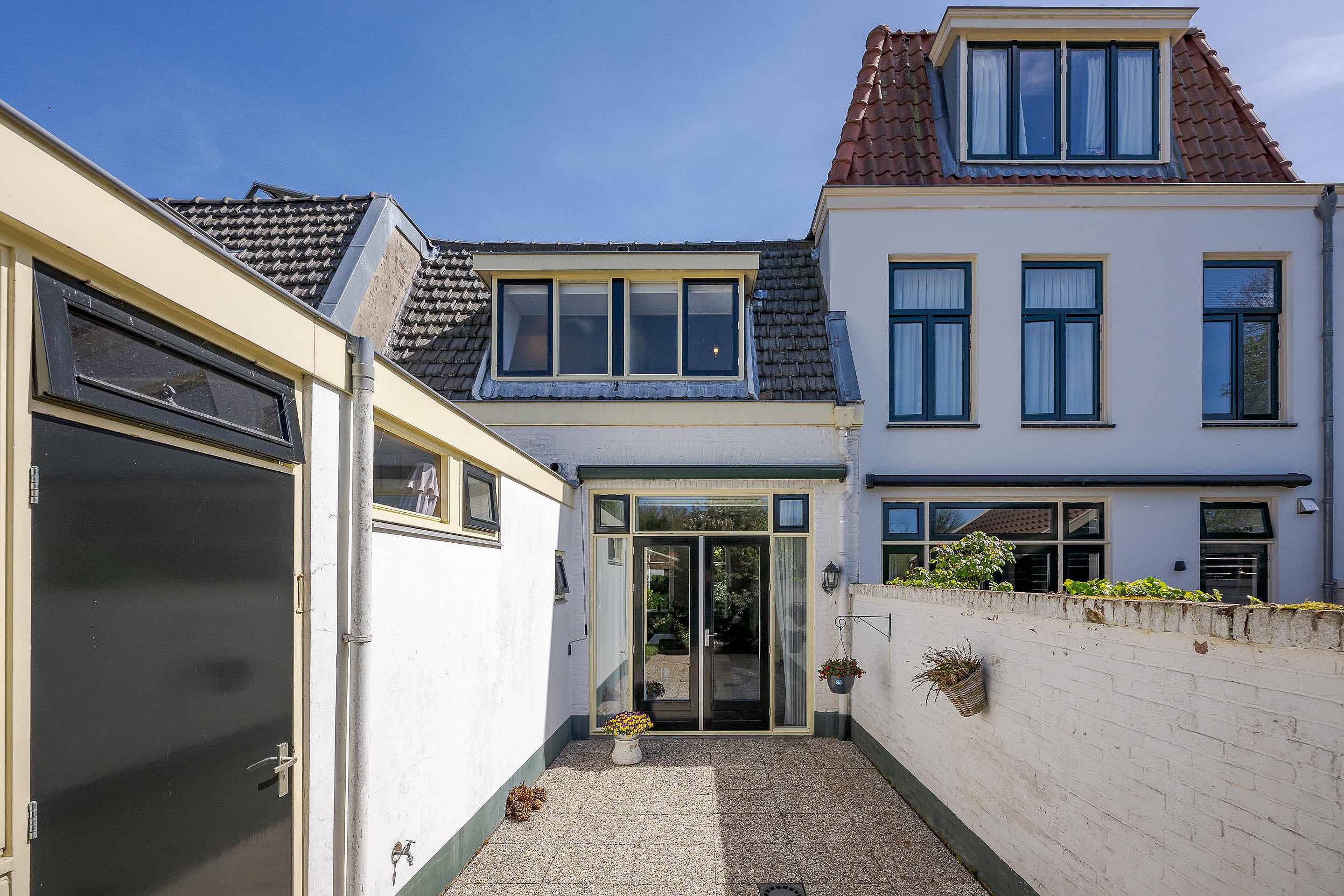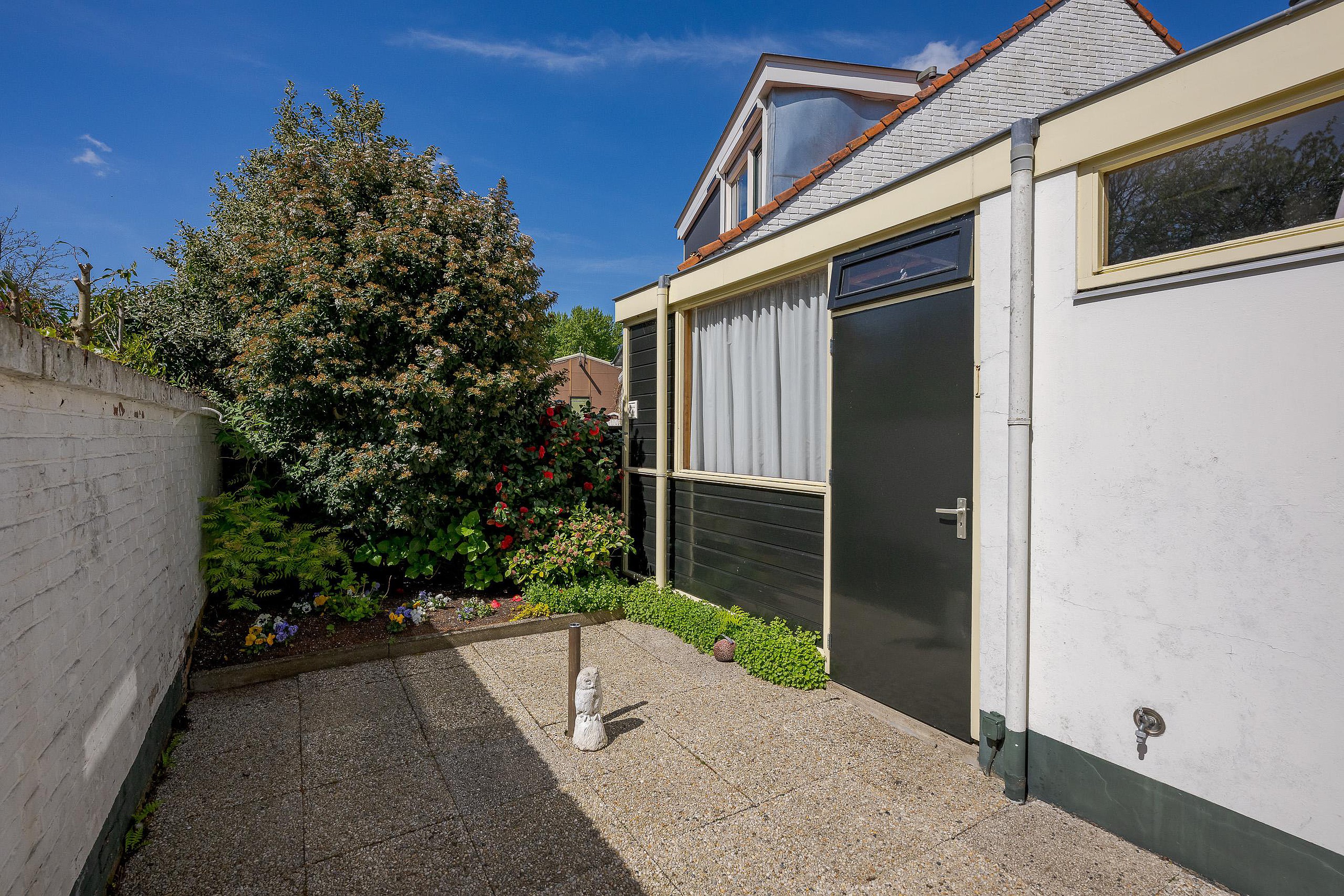 De achtertuin/plaats is netjes verzorg en op het westen gelegen. De berging bevindt zich hier ook, aaneengesloten aan de uitbouw.