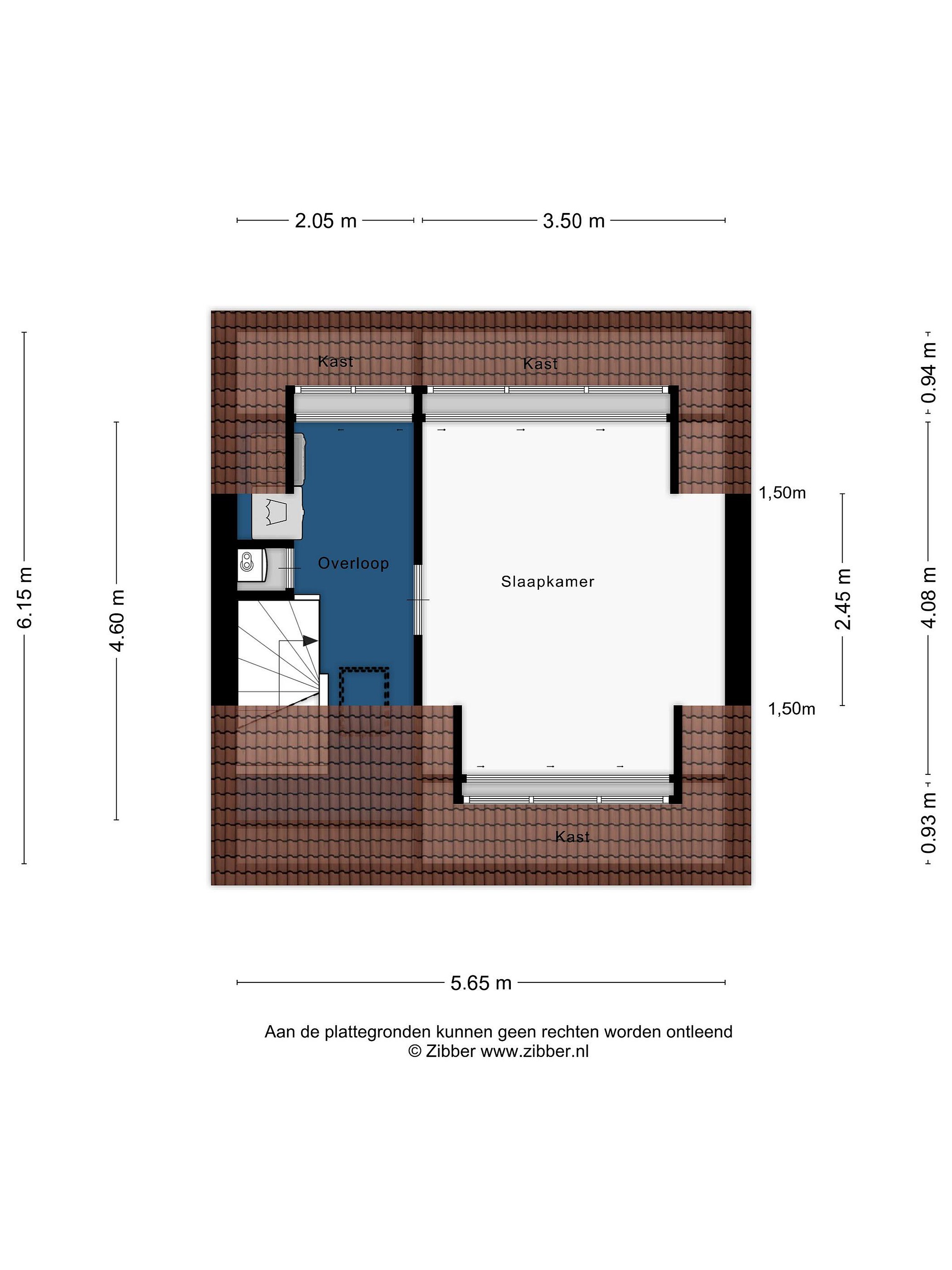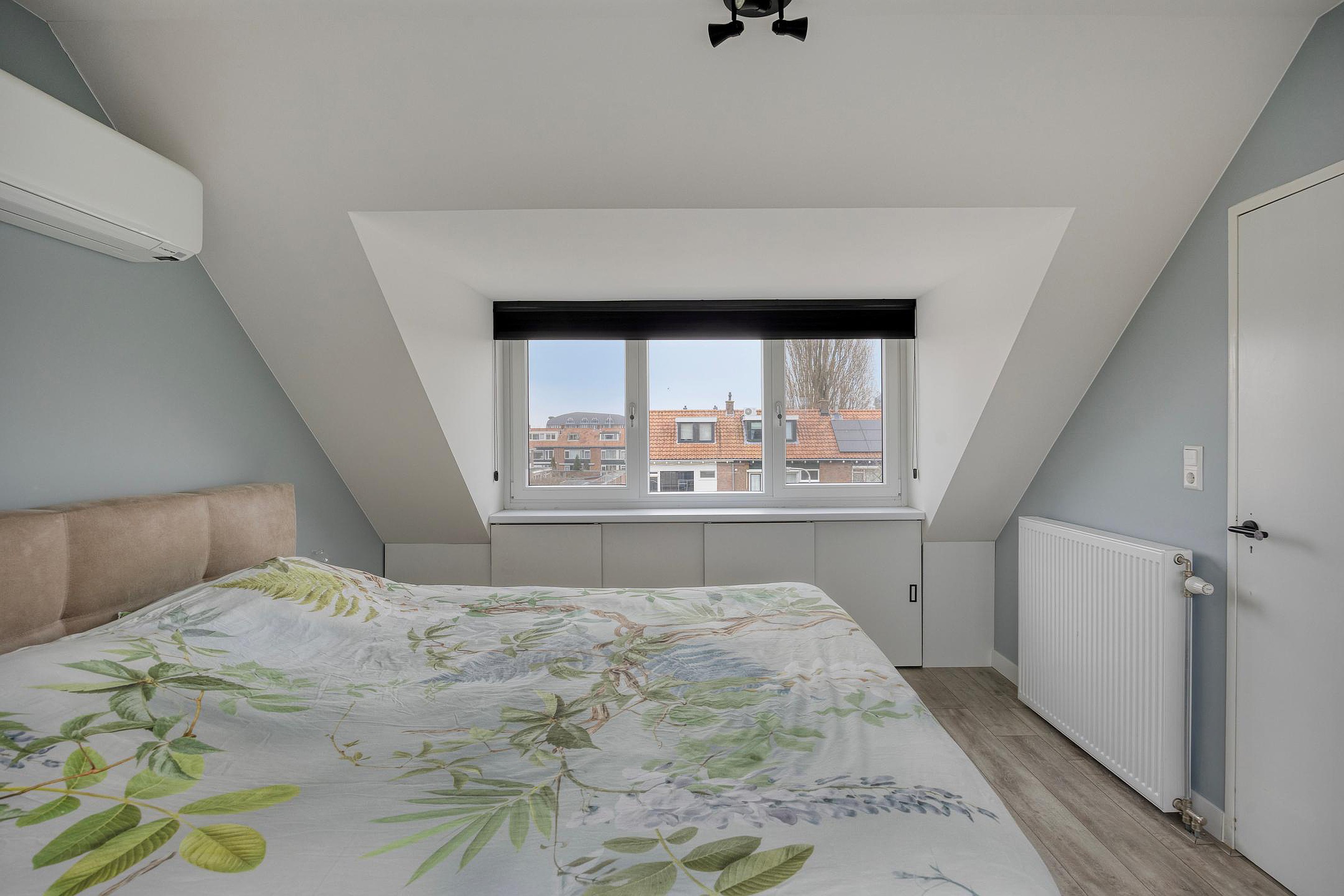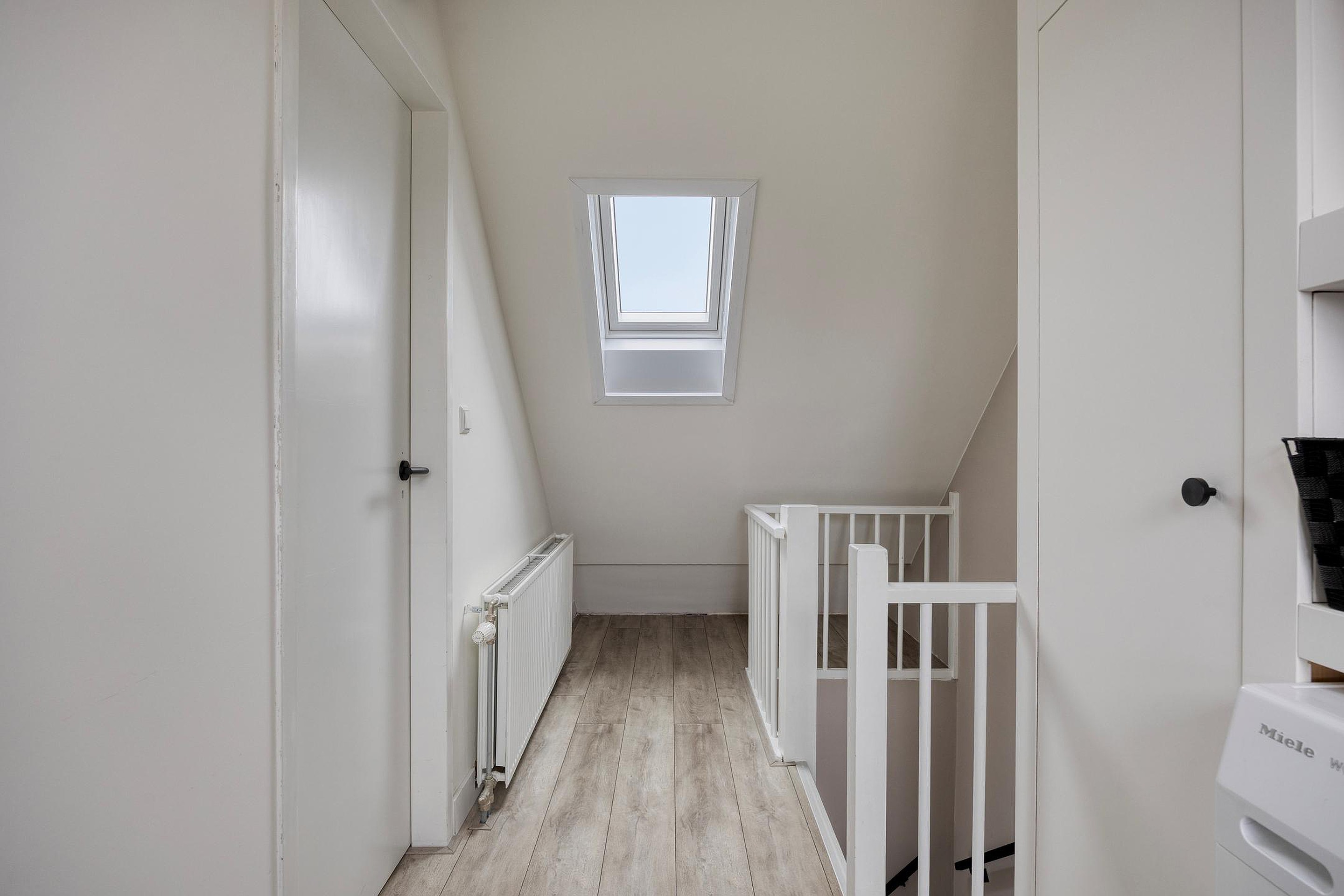 Overloop met dakraam, wasmachineaansluiting en de opstelplaats voor de cv-ketel (2020). Omdat deze verdieping aan voor- en achterzijde is voorzien van een dakkapel (2025) geniet u van een ruime slaapkamer met airconditioninginstallatie. Deze ruimte kan eventueel ook ook in twee kamers worden gesplitst door een muur en deur(en) te plaatsen. De knieschotten bieden u handige opbergruimte.