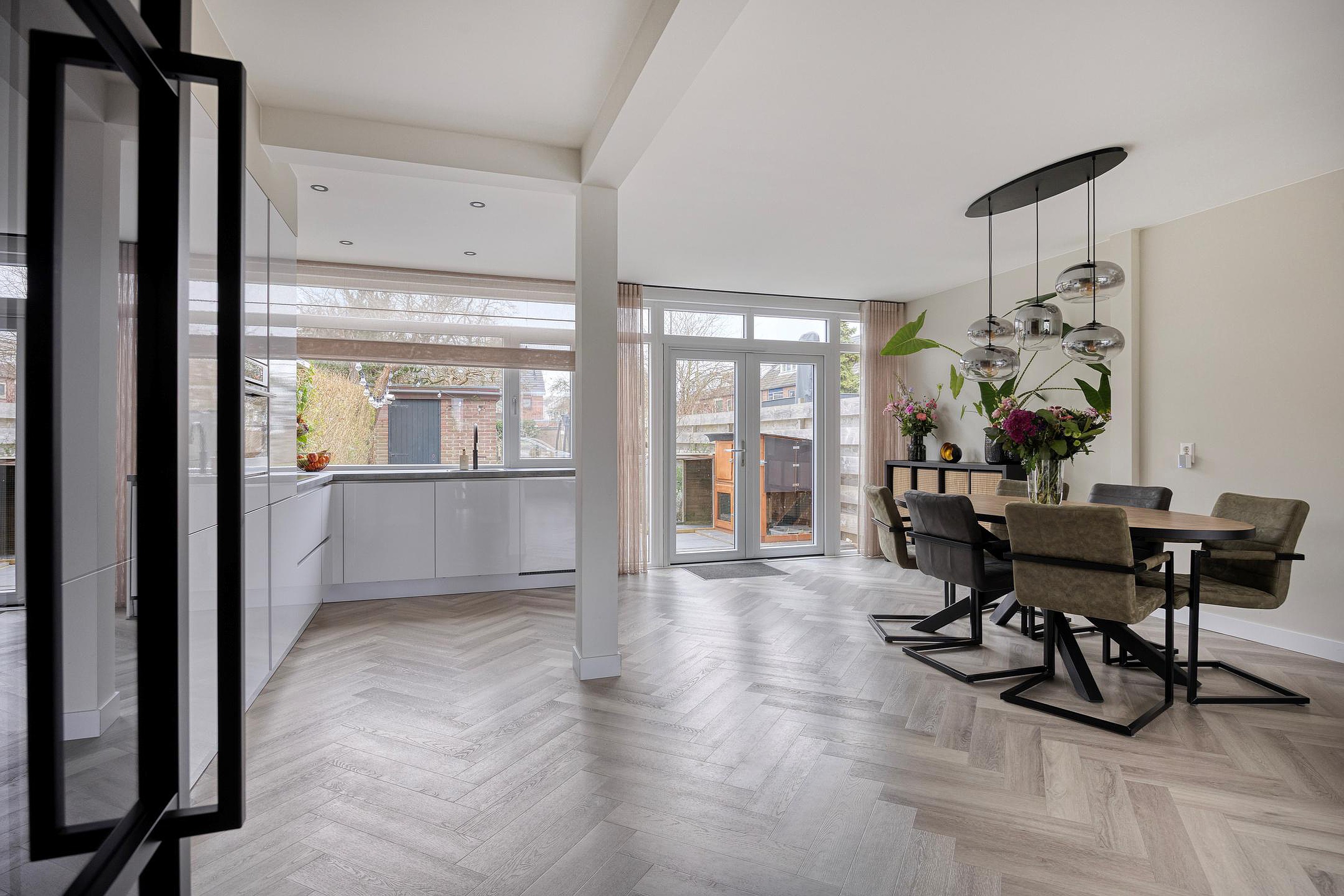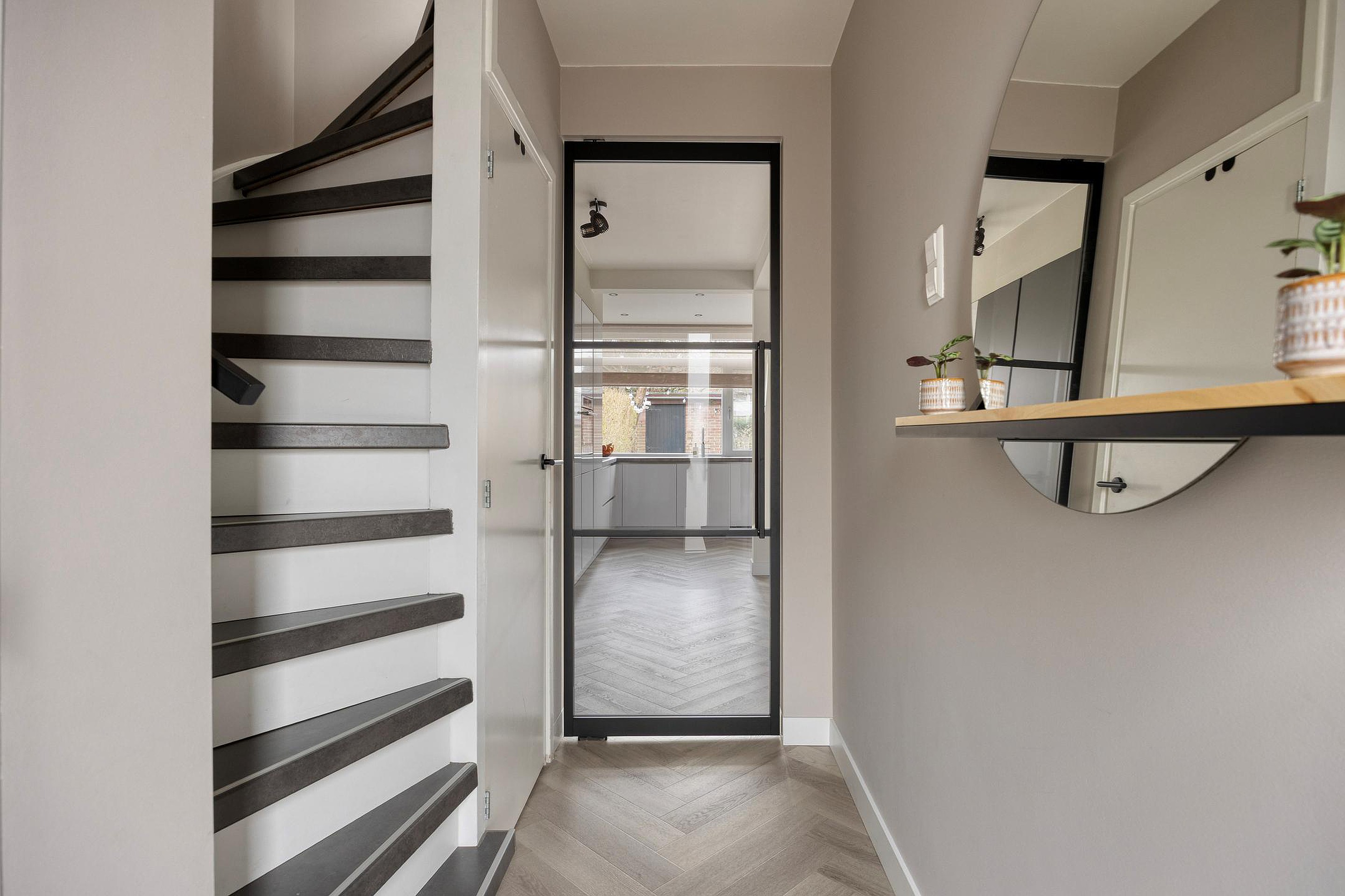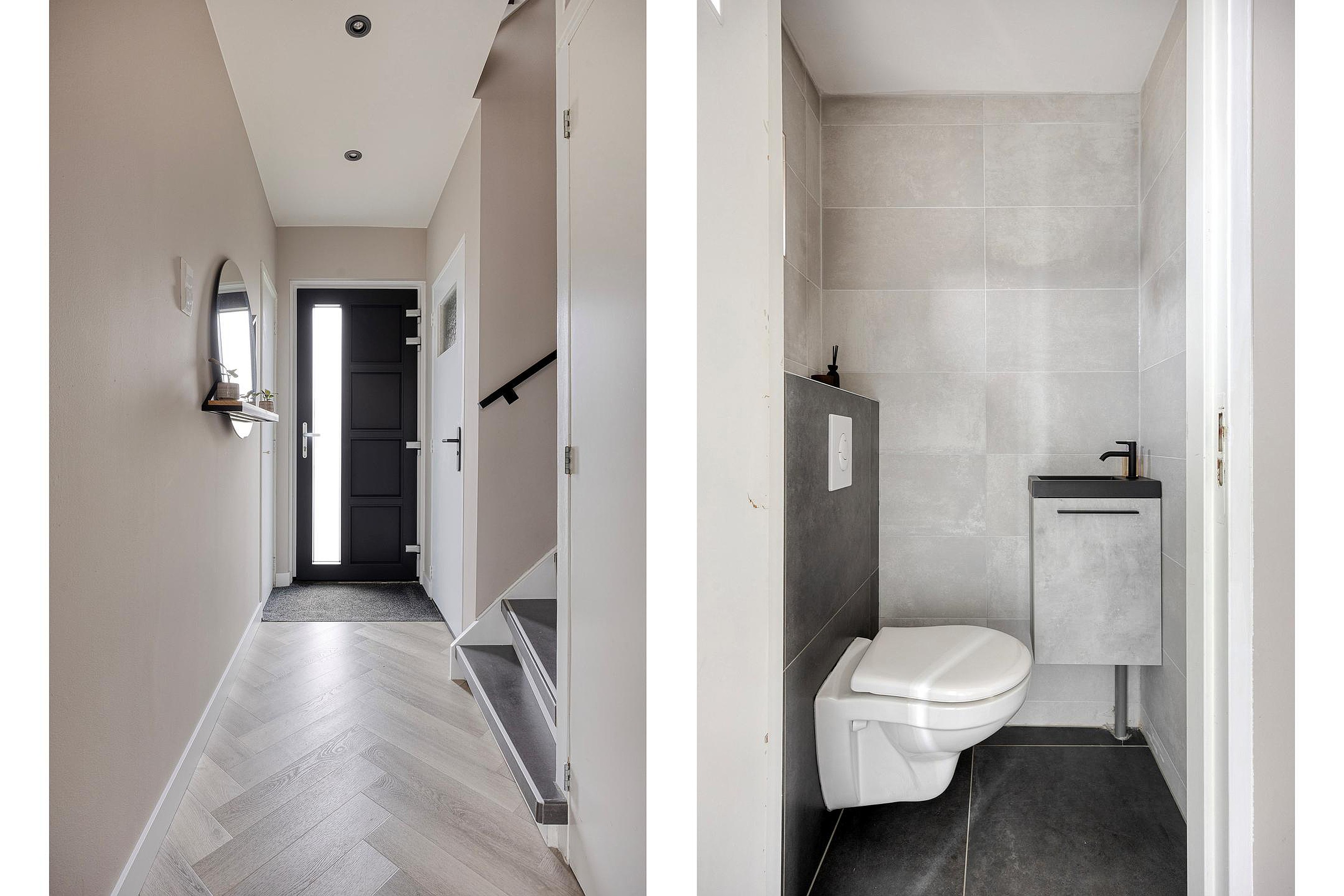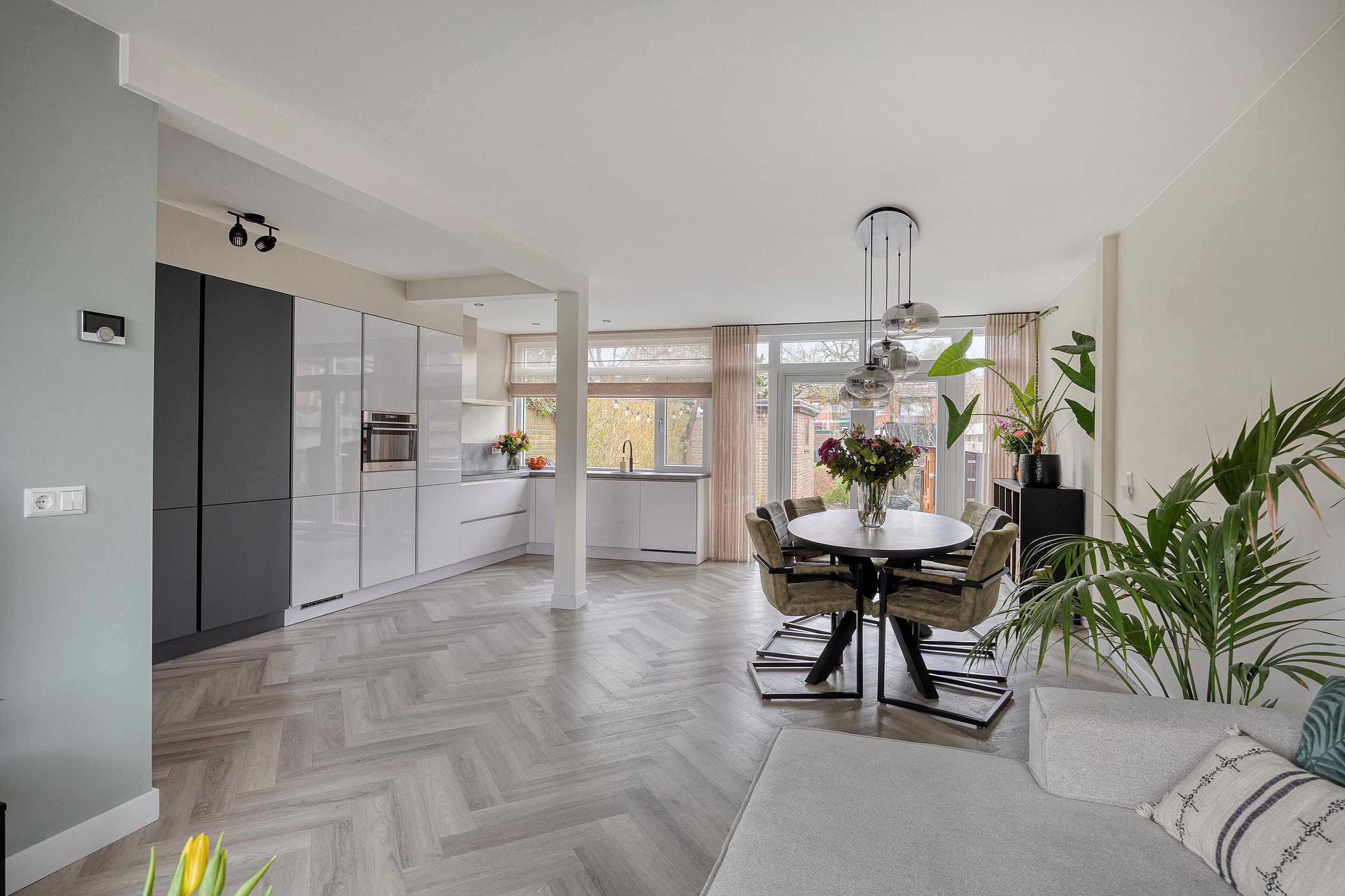 Begane grond Voortuin. Entree woning, hal met meterkast (2020), trapkast en een moderne toiletruimte (2020). De trapbekleding, inbouwverlichting en zwart stalen taatsdeur zorgen voor een luxe uitstraling. Door de grote raampartij geniet u van een lichte straatgerichte woonkamer met aantrekkelijk uitzicht op groen. Het nette stuukwerk maakt het geheel compleet. De gezellige keukenruimte bevindt zich aan de achterzijde van de woning. Er is genoeg ruimte voor een grote eettafel. Heel leuk wanneer u vrienden of familie hebt uitgenodigd voor een diner... De moderne hoekkeuken (2020) beschikt o.a. over een inductiekookplaat (2025), rvs afzuigkap, Quooker (2021), combi oven, koel/vriescombinatie en een vaatwasser (2025). Vanuit de keukenruimte heeft u uitzicht op de achtertuin. De hal, toiletruimte, woonkamer en de (leef)keuken zijn afgewerkt met een onderhoudsvriendelijke pvc vloer inclusief vloerverwarming (2020). Zon- en tuinliefhebbers opgelet, hier gaat uw hart zeker sneller van kloppen! Via de dubbele openslaande deuren bereikt u de zonnige achtertuin op het zuidwesten. Door z’n ruime afmeting en vrije ligging is deze achtertuin heerlijk zonnig. De stenen berging, elektrisch bedienbaar zonnescherm en de achterom zorgen voor extra comfort. Achter de achtertuin bevindt zich een speelveldje voor de jongste kinderen.