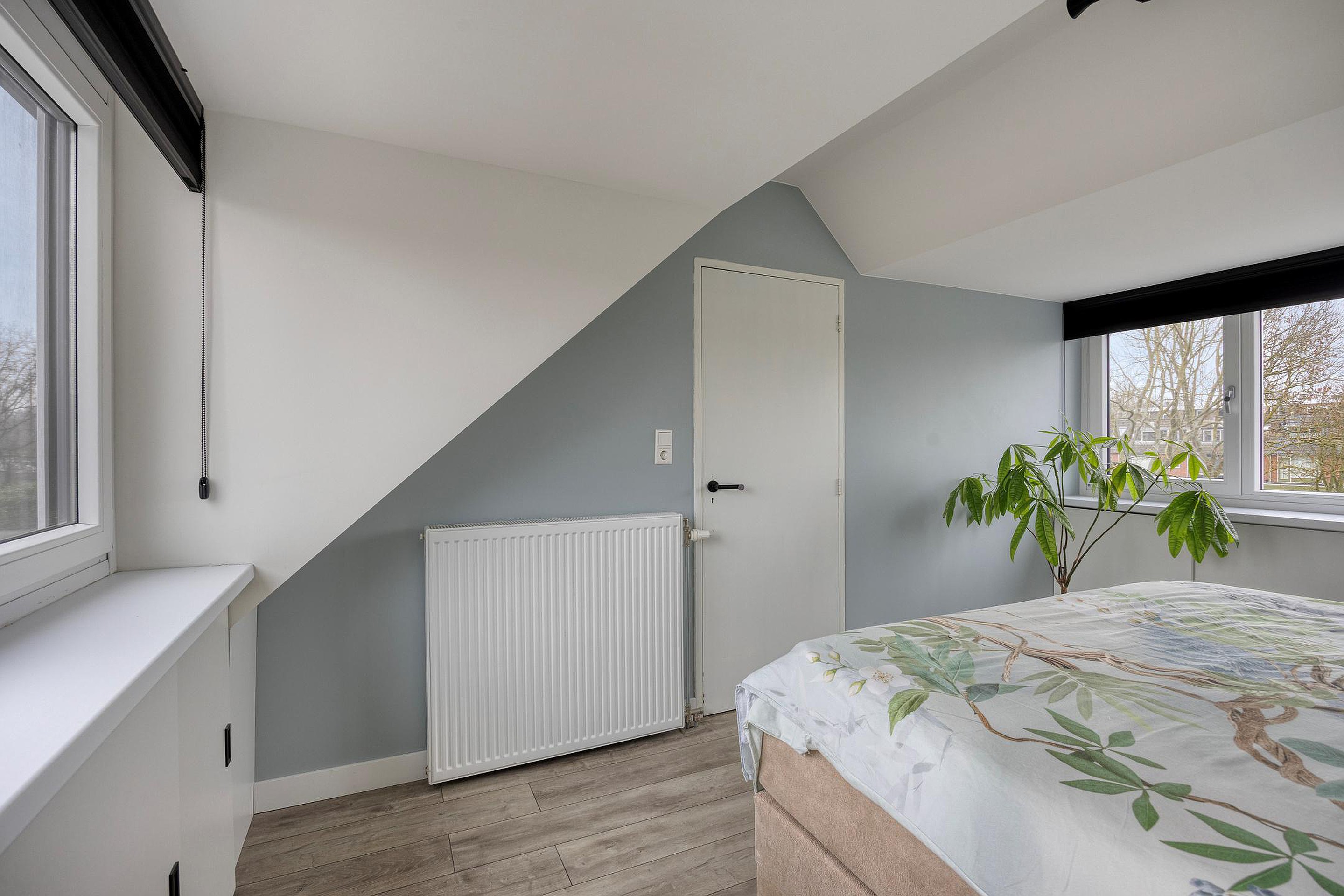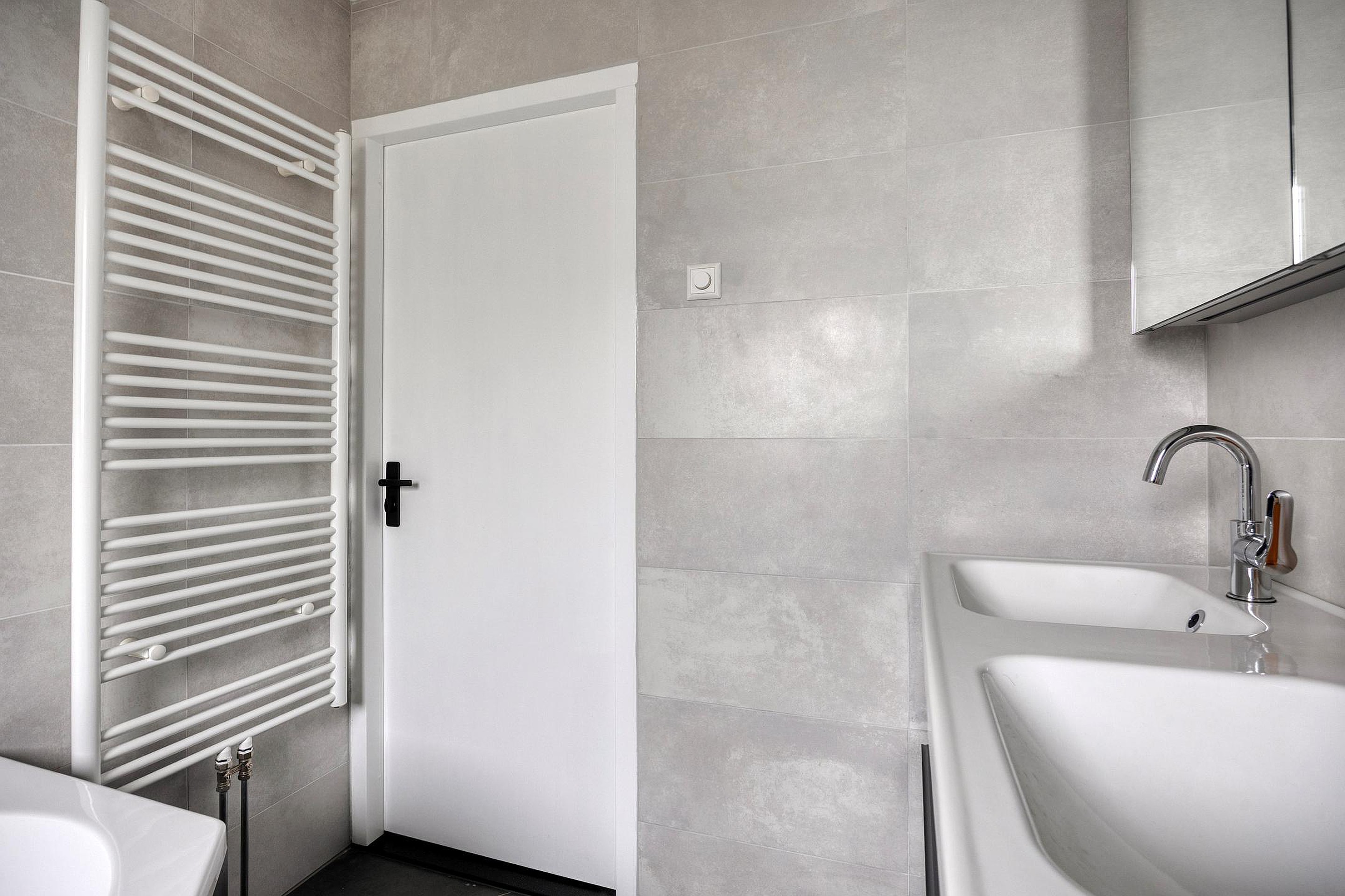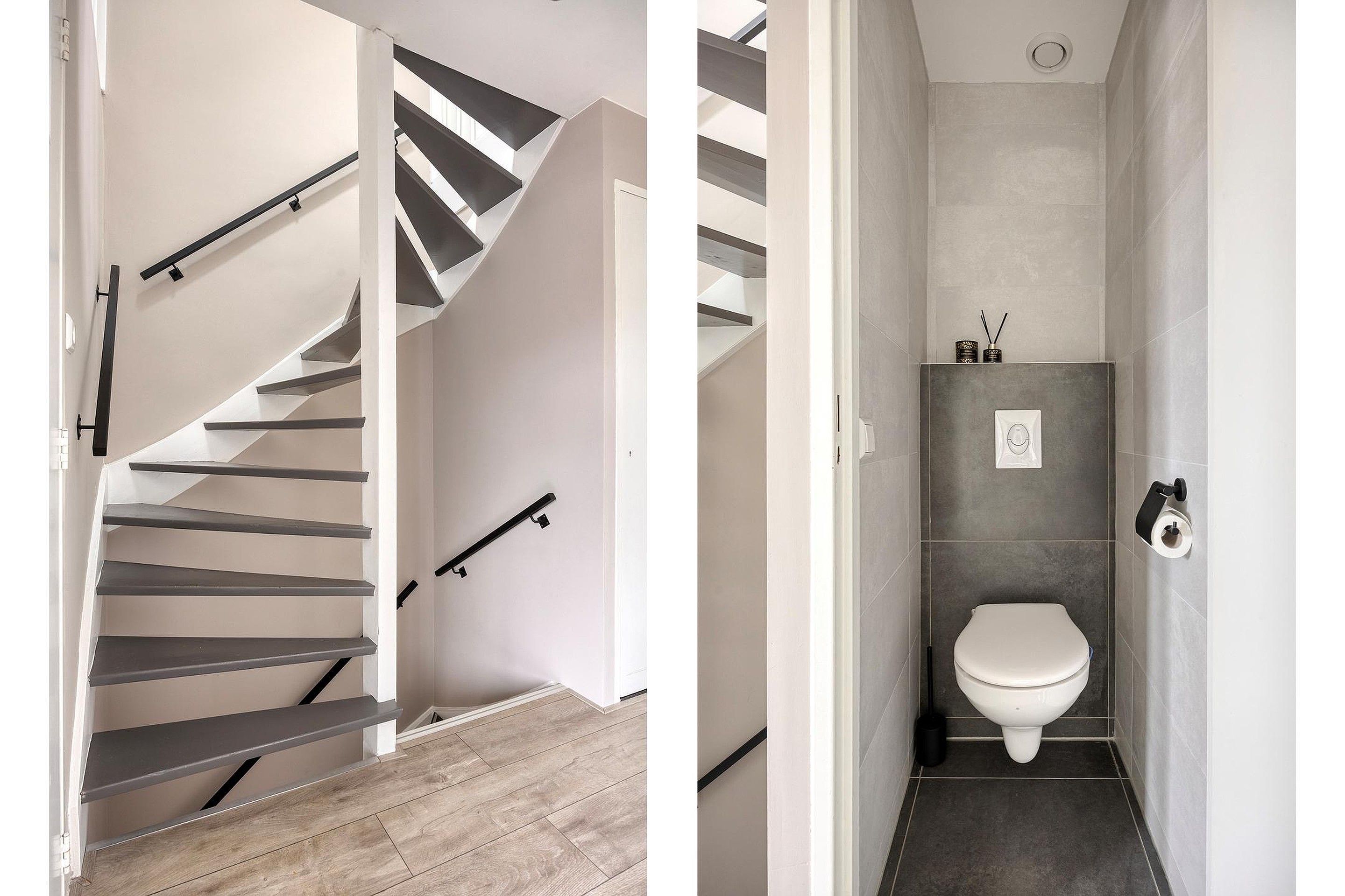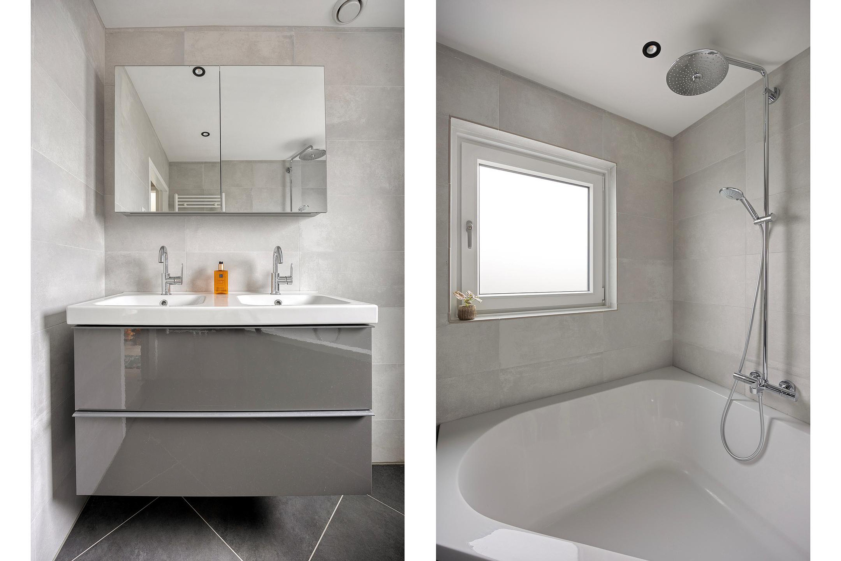 Zwart stalen trapleuningen naar de verdiepingen. Overloop met inbouwverlichting en 2e toiletruimte. De voormalige badkamer is thans in gebruik als walk-in closet. De ruimere badkamer beschikt nu over een ligbad/douchecombinatie, inbouwverlichting, dubbele wastafelmeubel met verwarmde spiegel incl. verlichting. Aan de voor- en achterzijde van deze eengezinswoning bevindt zich een ruime slaapkamer.