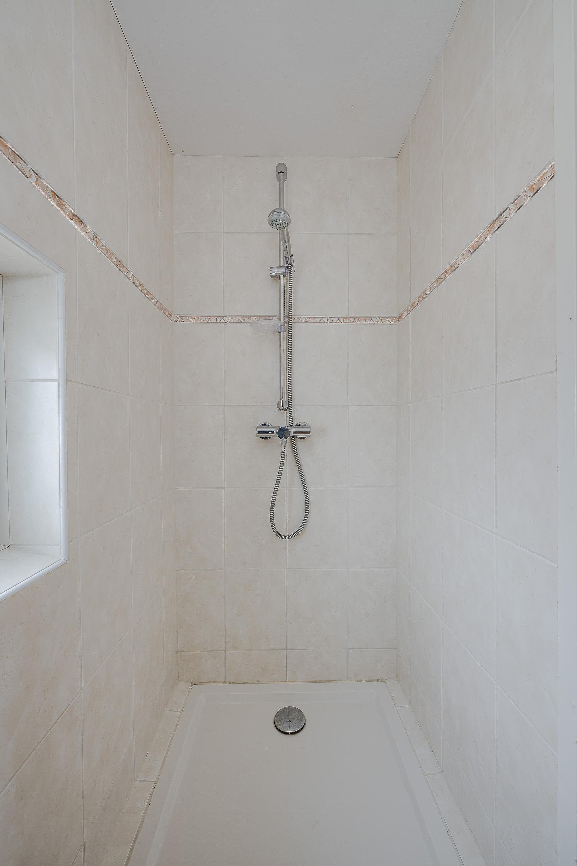 Eerste verdieping overloop met bergkast, nette badkamer (2006) met douche en wastafel, 3 slaapkamers.