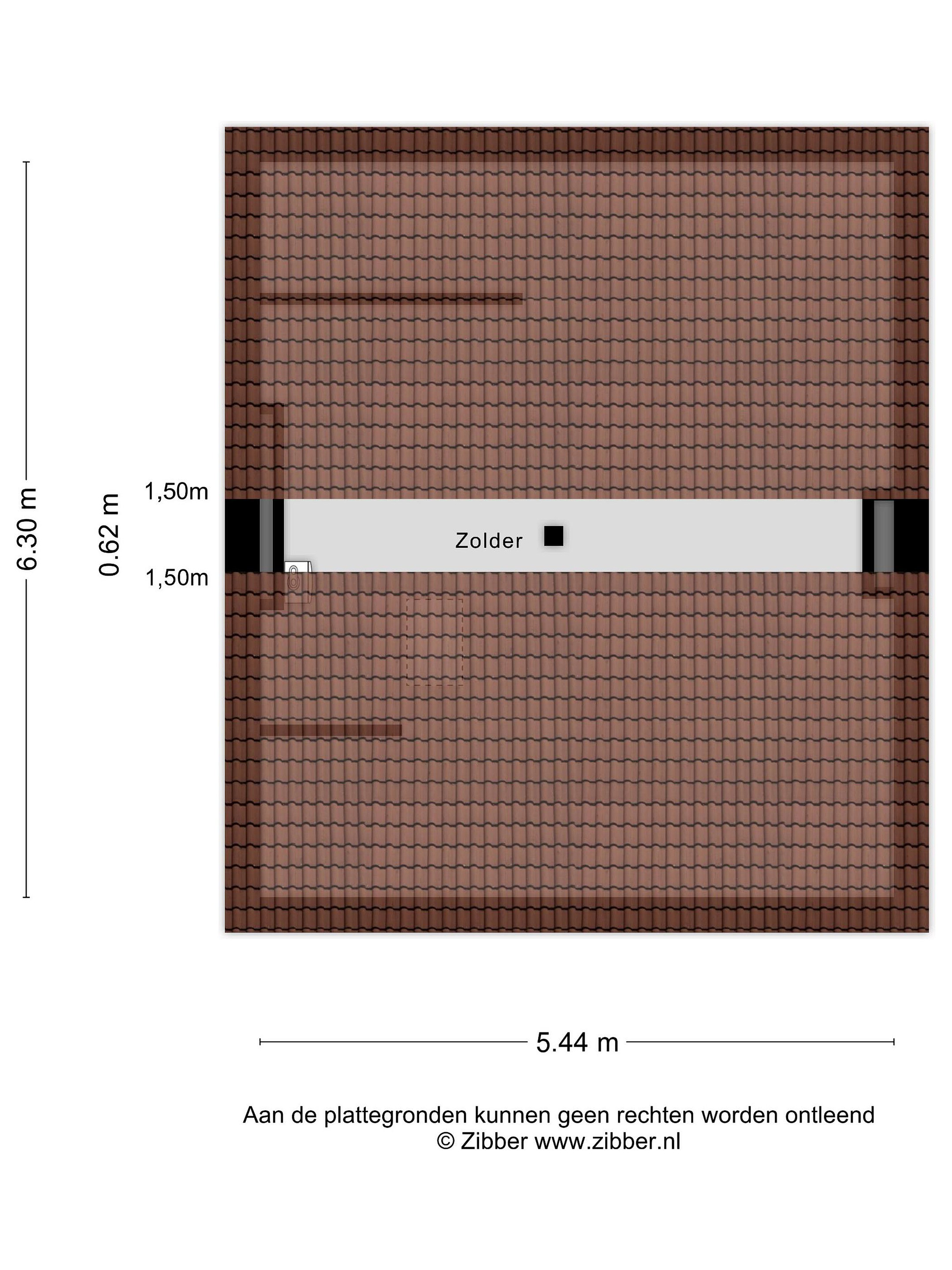 Tweede verdieping De vliering is via de overloop te bereiken met een losse trap.