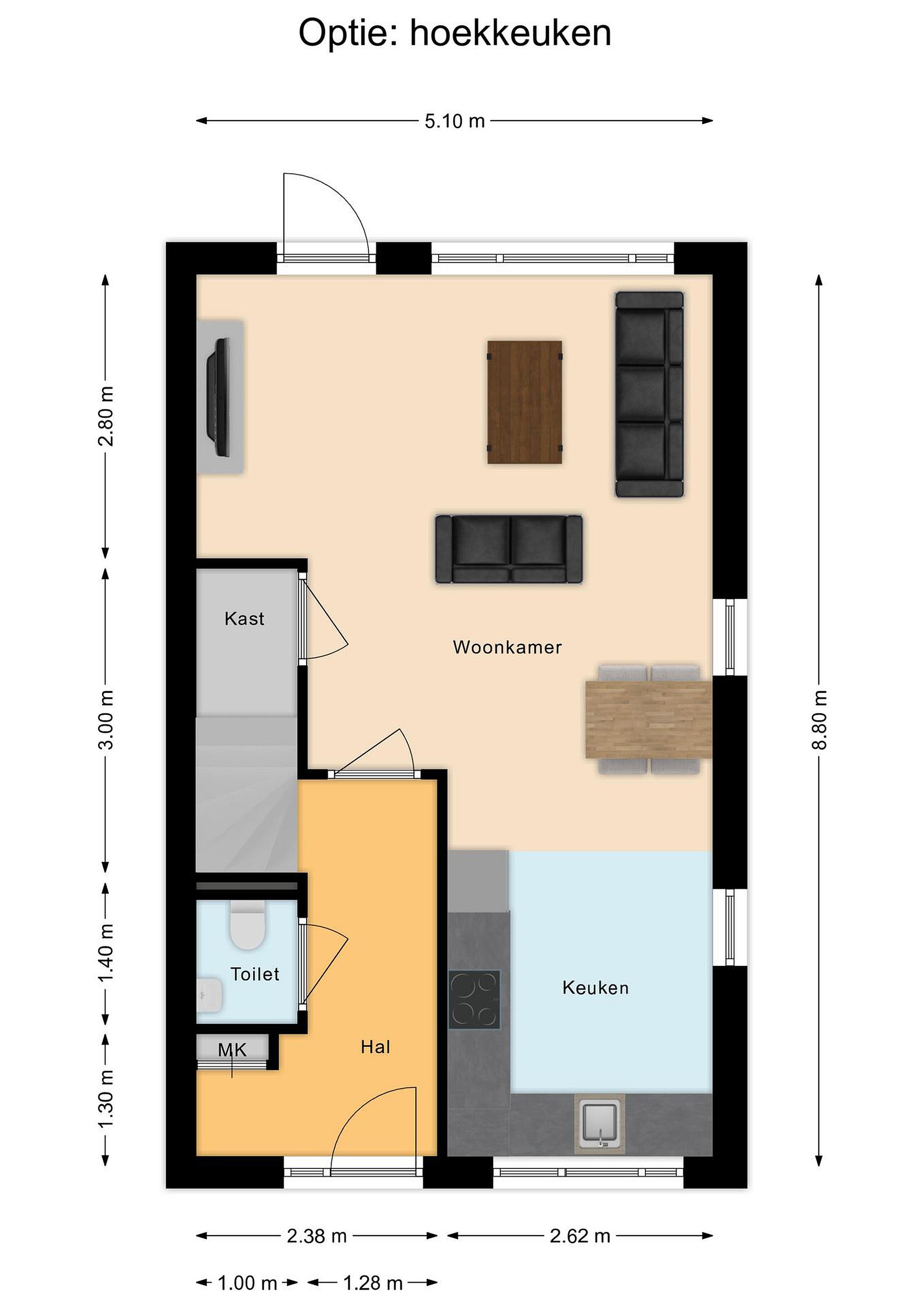 - Keuken en sanitair niet inbegrepen;