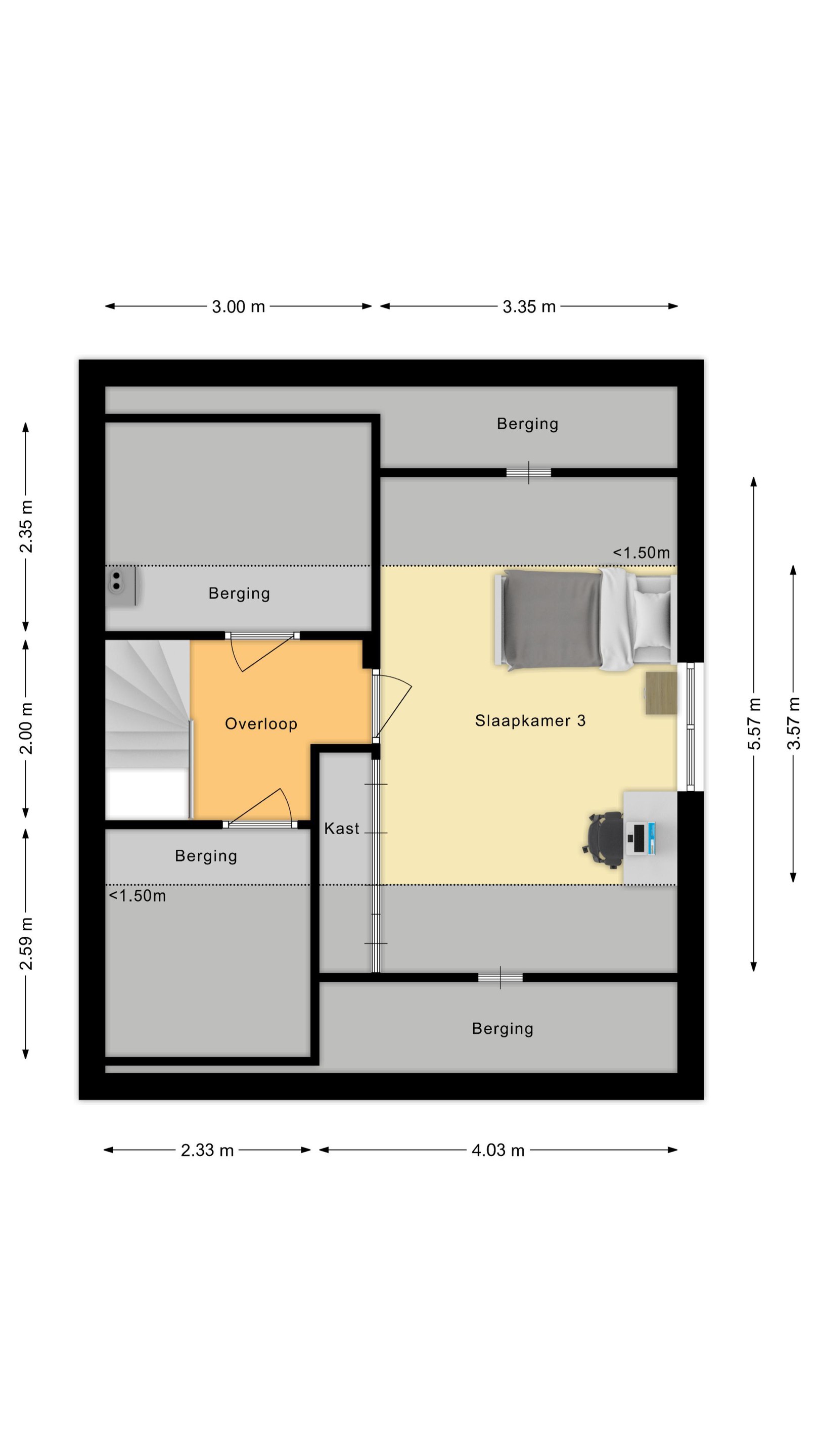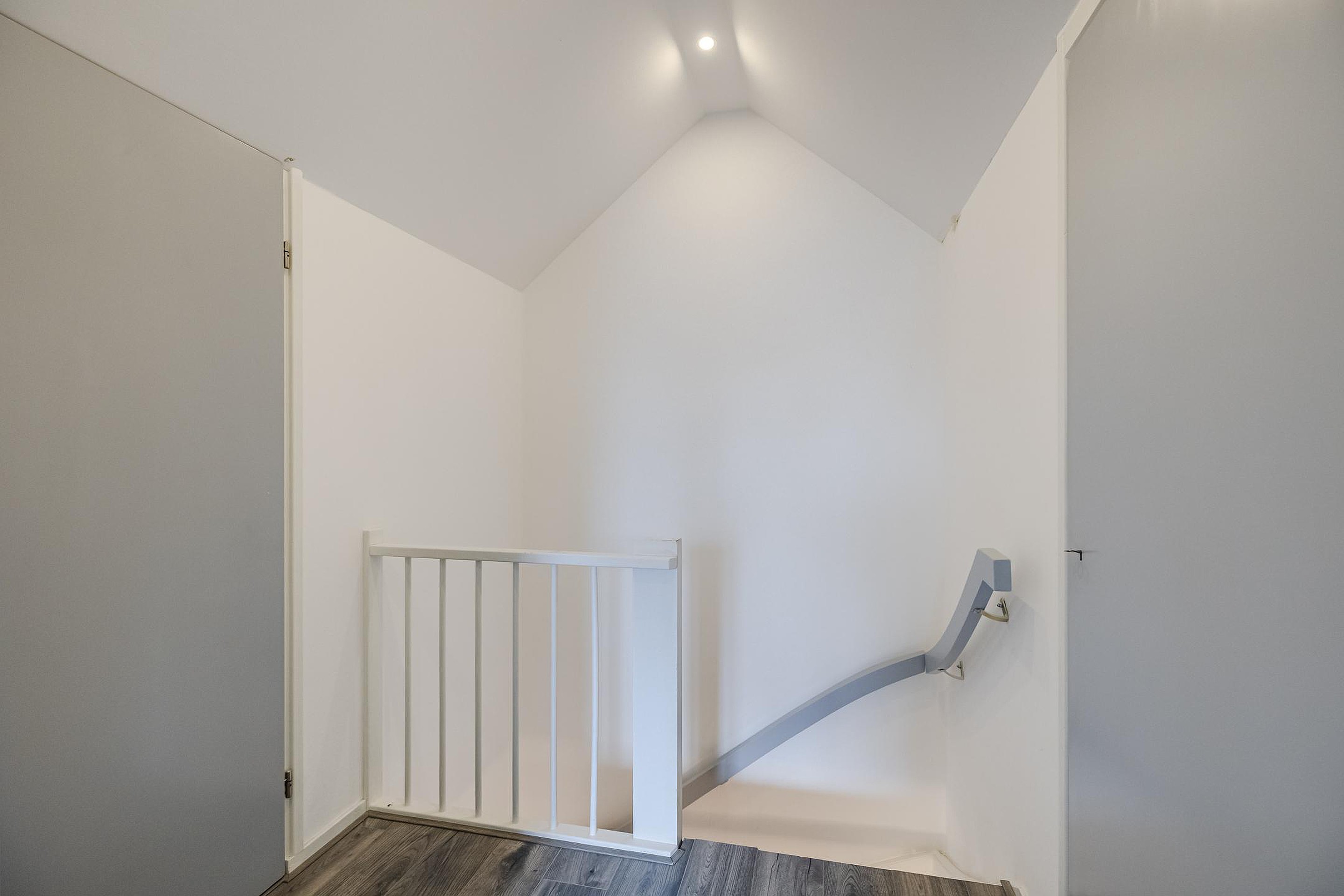 Tweede verdieping Bereikbaar met vaste trap naar overloop met bergruimte en afzonderlijke ruimte voor de cv-ketel (2019) en een afzonderlijke