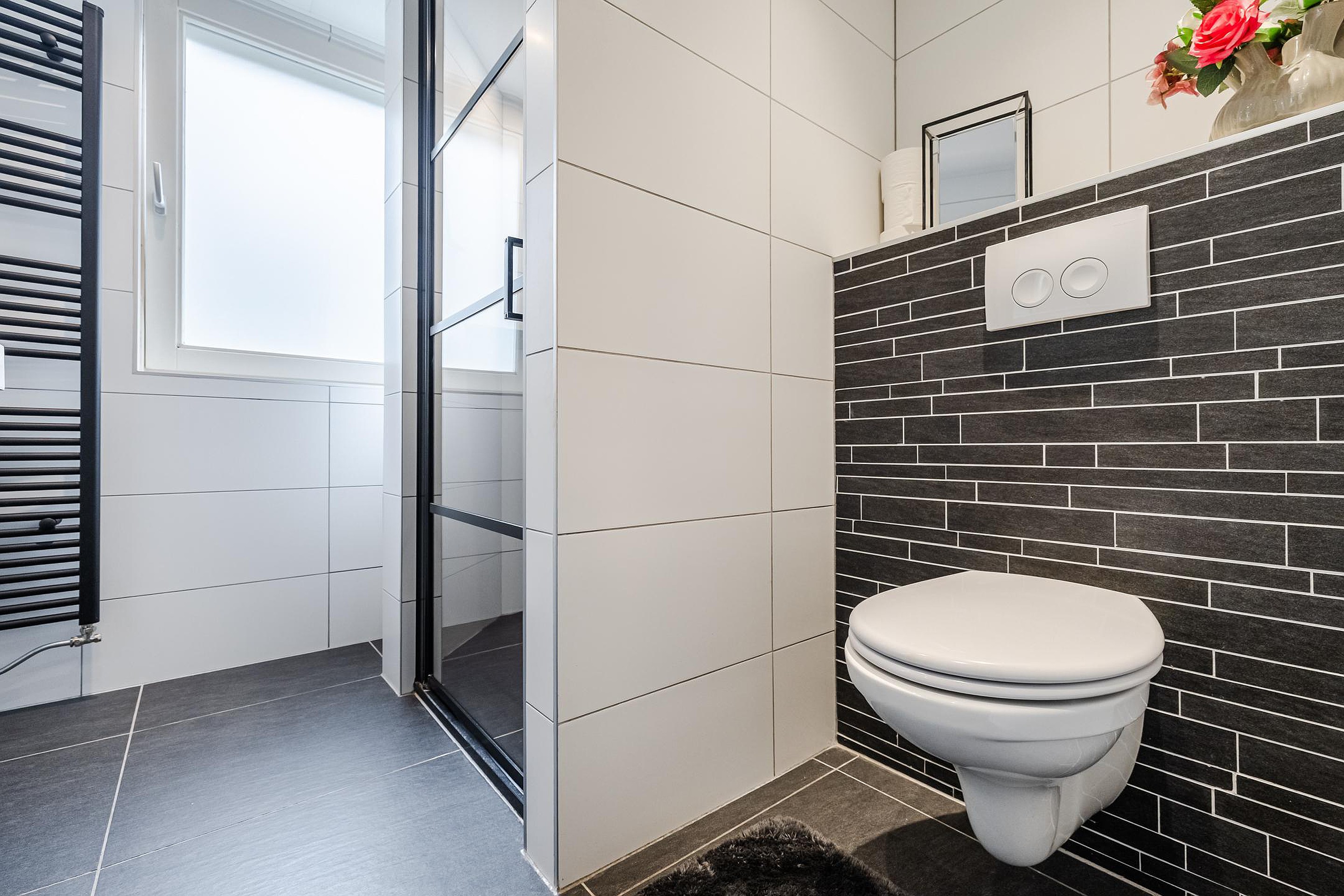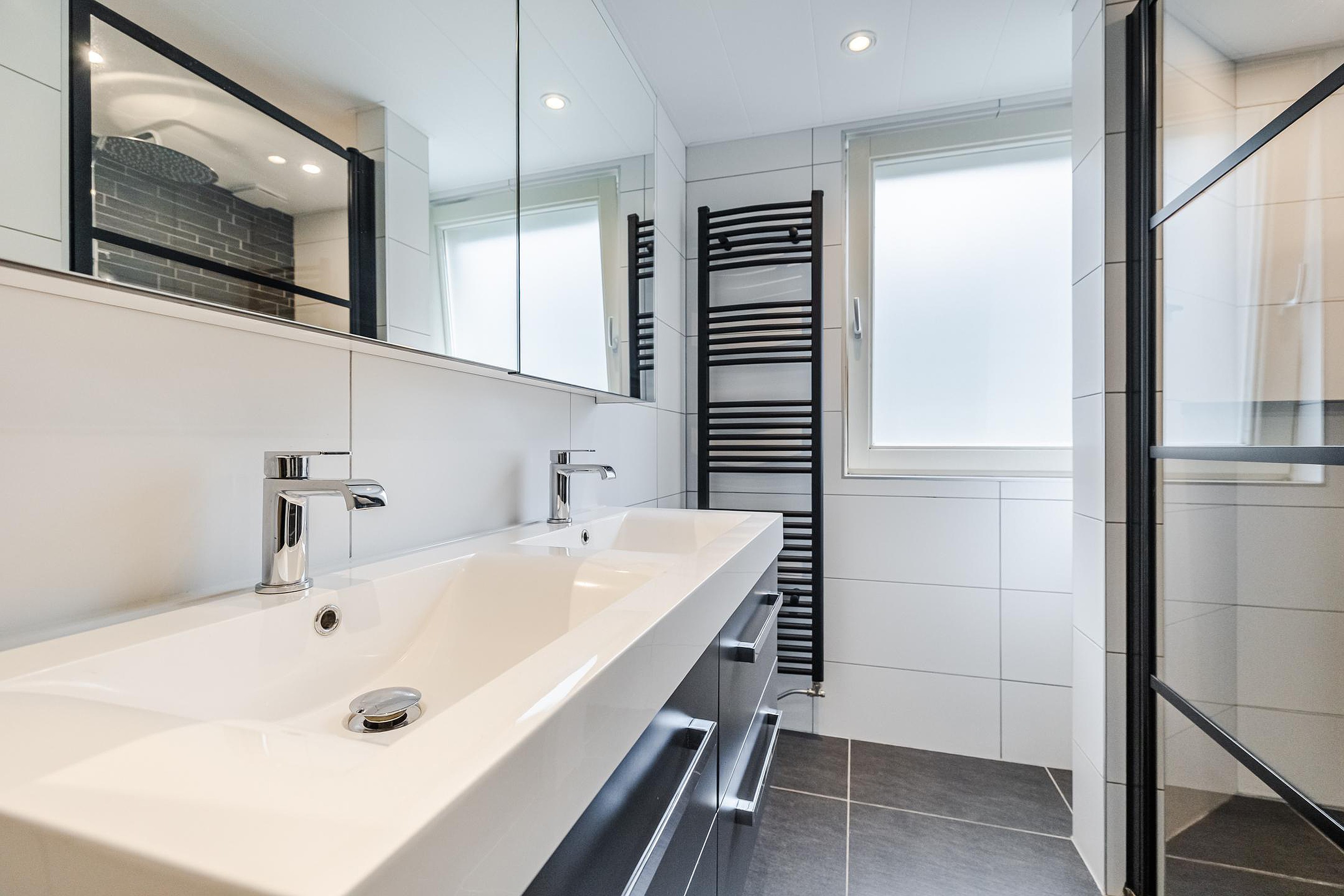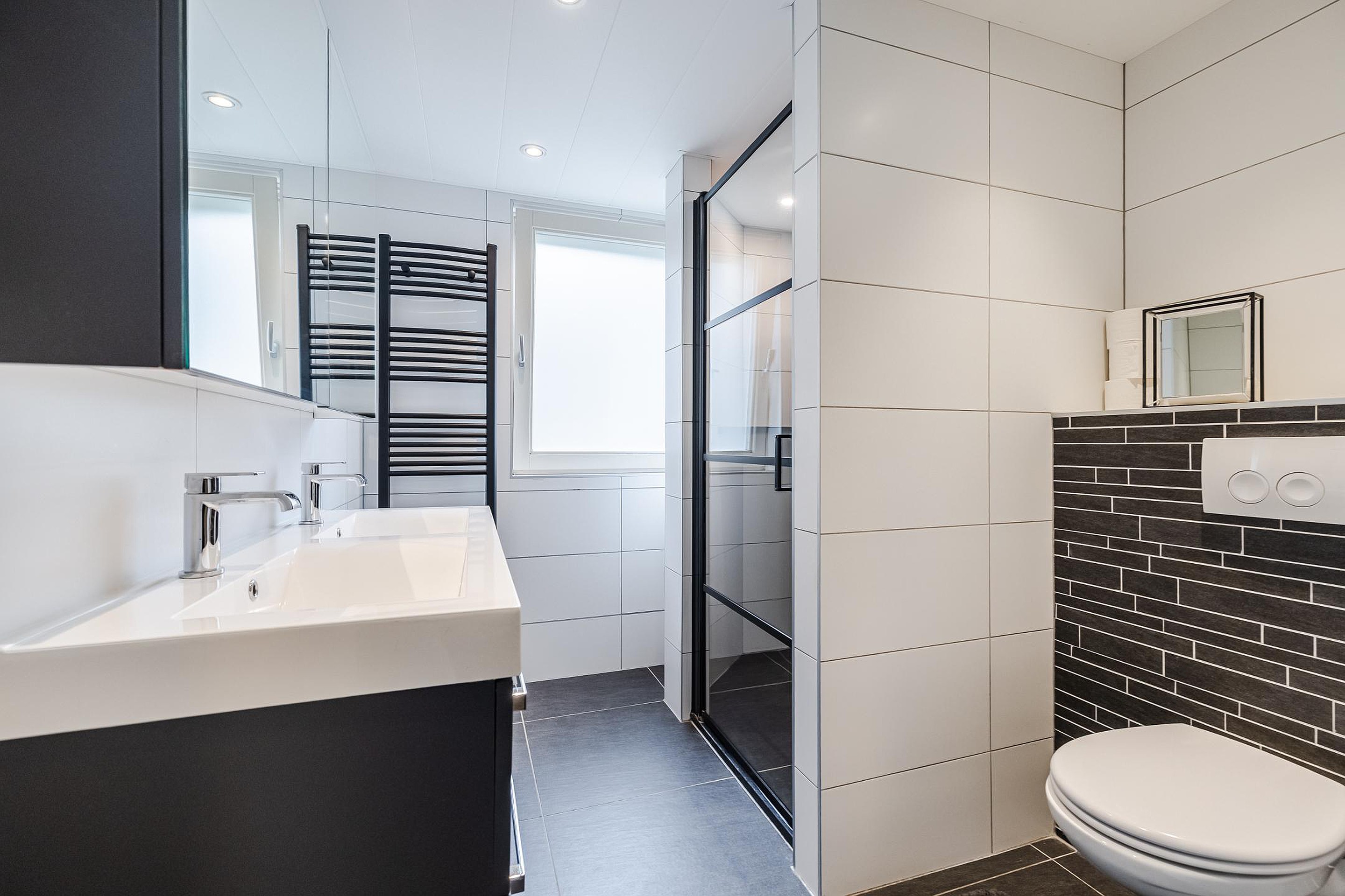 Eerste verdieping Overloop met 2 vaste kasten, 3 slaapkamers (waarvan 2 met vaste kasten), badkamer (2019) met douche inrichting met drain, dubbel wastafelmeubel, wandcloset en designradiator.