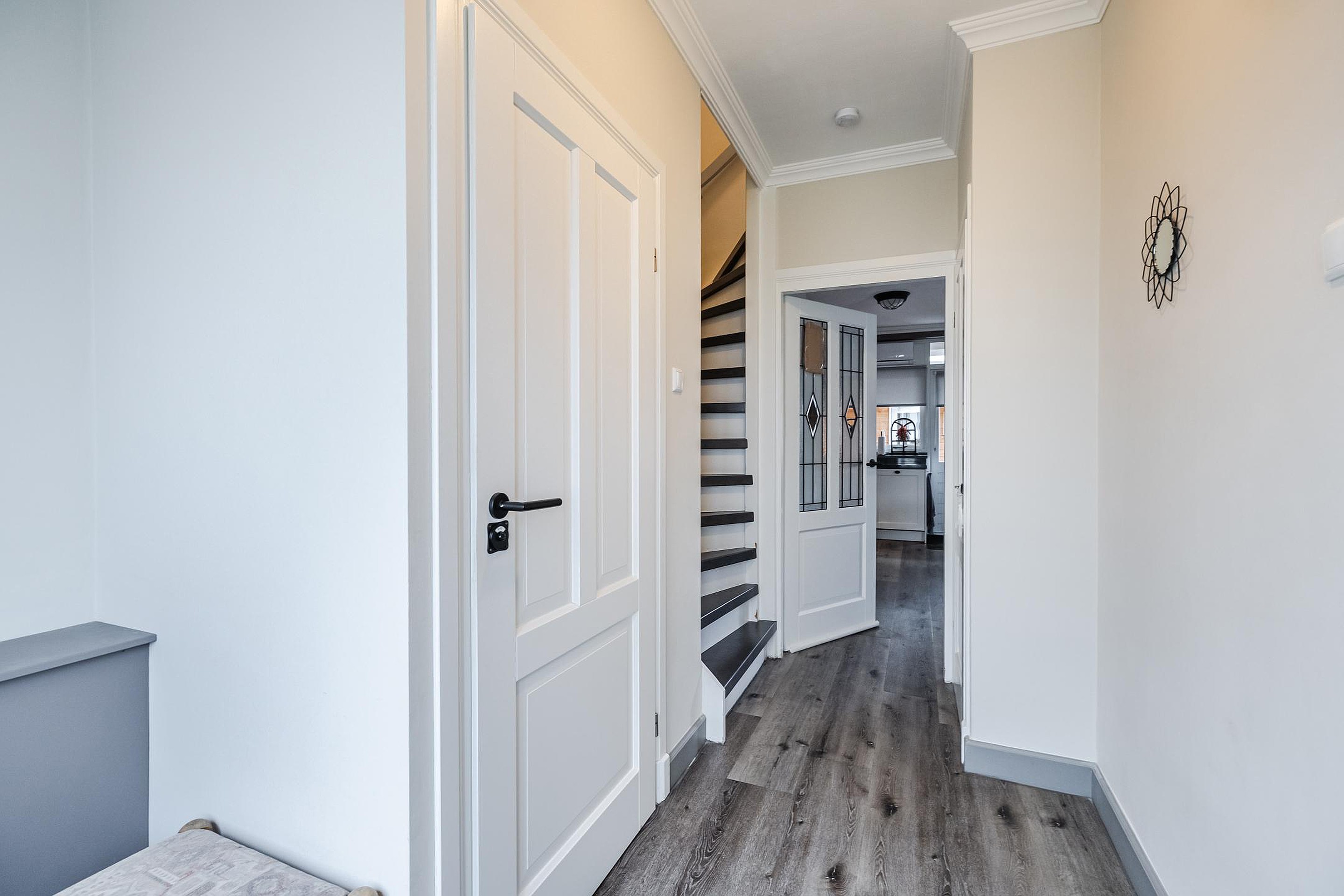 Begane grond Entree, modern wandcloset, vernieuwde meterkast, trapopgang, open keuken met trapkast en L-vormige inbouwkeuken (2019) voorzien van diverse inbouwapparatuur, rechthoekige doorzon woonkamer met zicht op gemeentelijk plantsoen, vanuit keuken heeft u toegang tot de overkapping welke kan worden afgesloten met glazen schuifwanden en toegang biedt tot bijkeuken en hobbyruimte en toegang tot de garage.