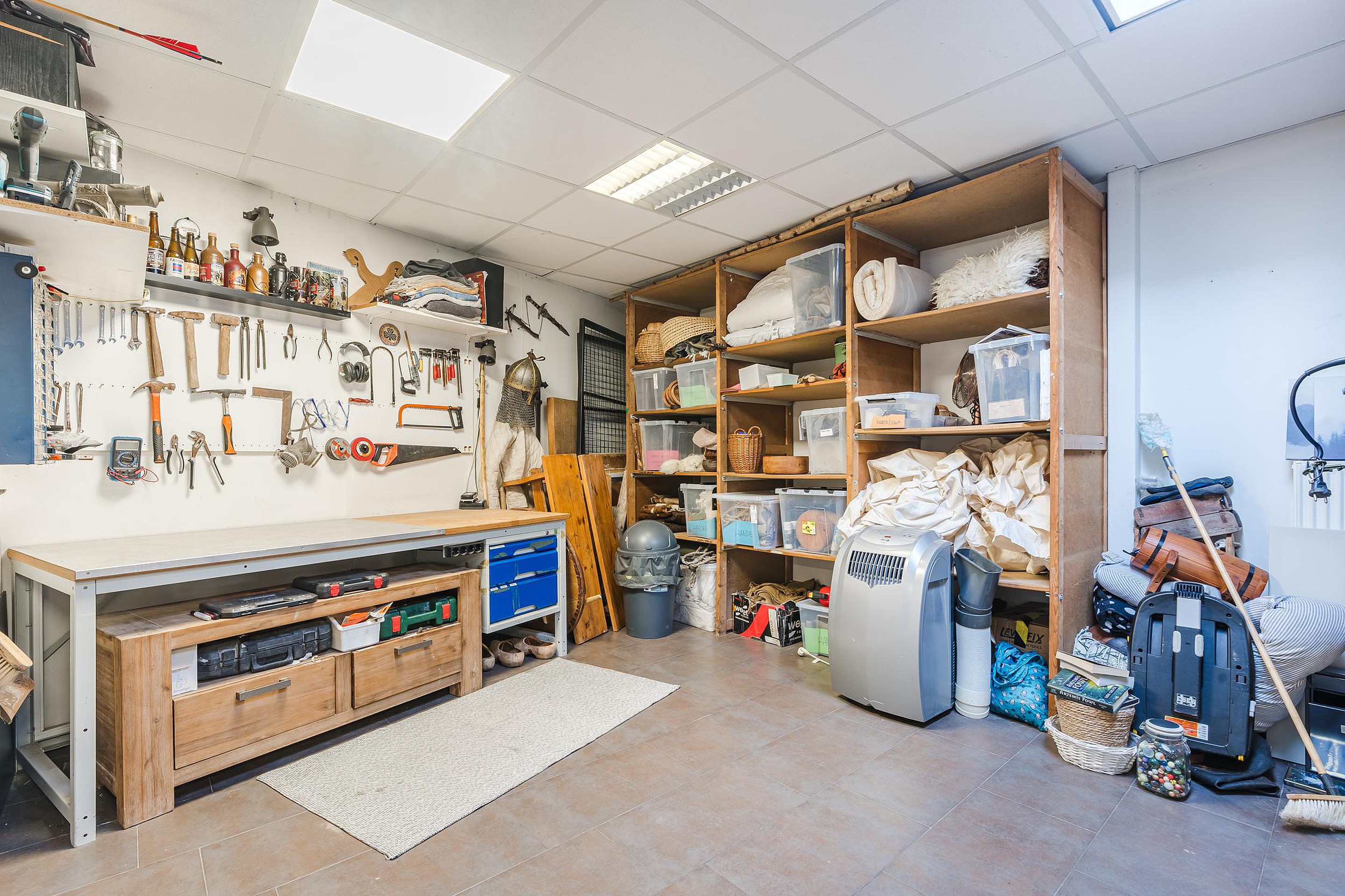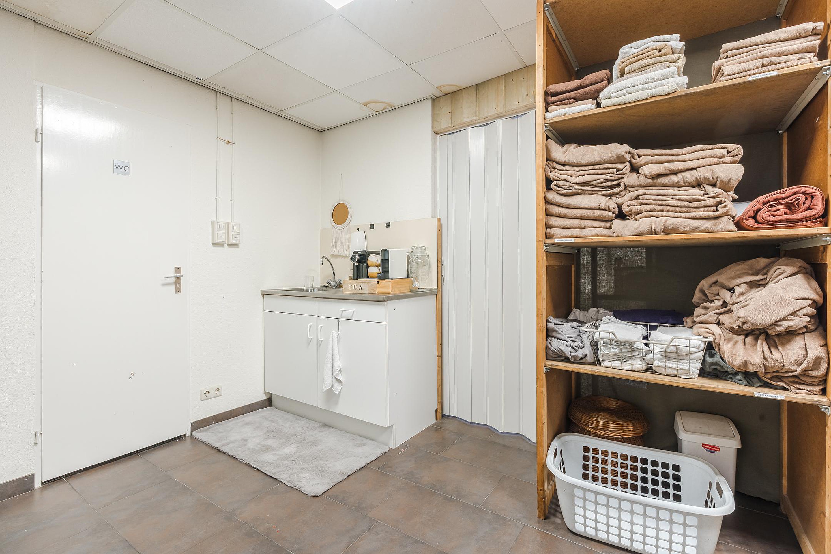 Via de entree met meterkast bereikt u twee werkruimtes, met aansluitend een kantoor-/bergruimte, een toilet en een eigen cv-installatie.