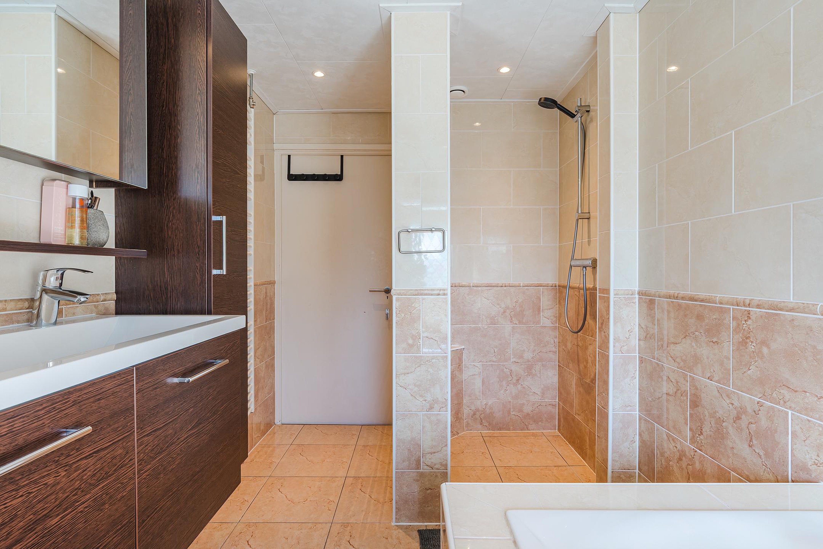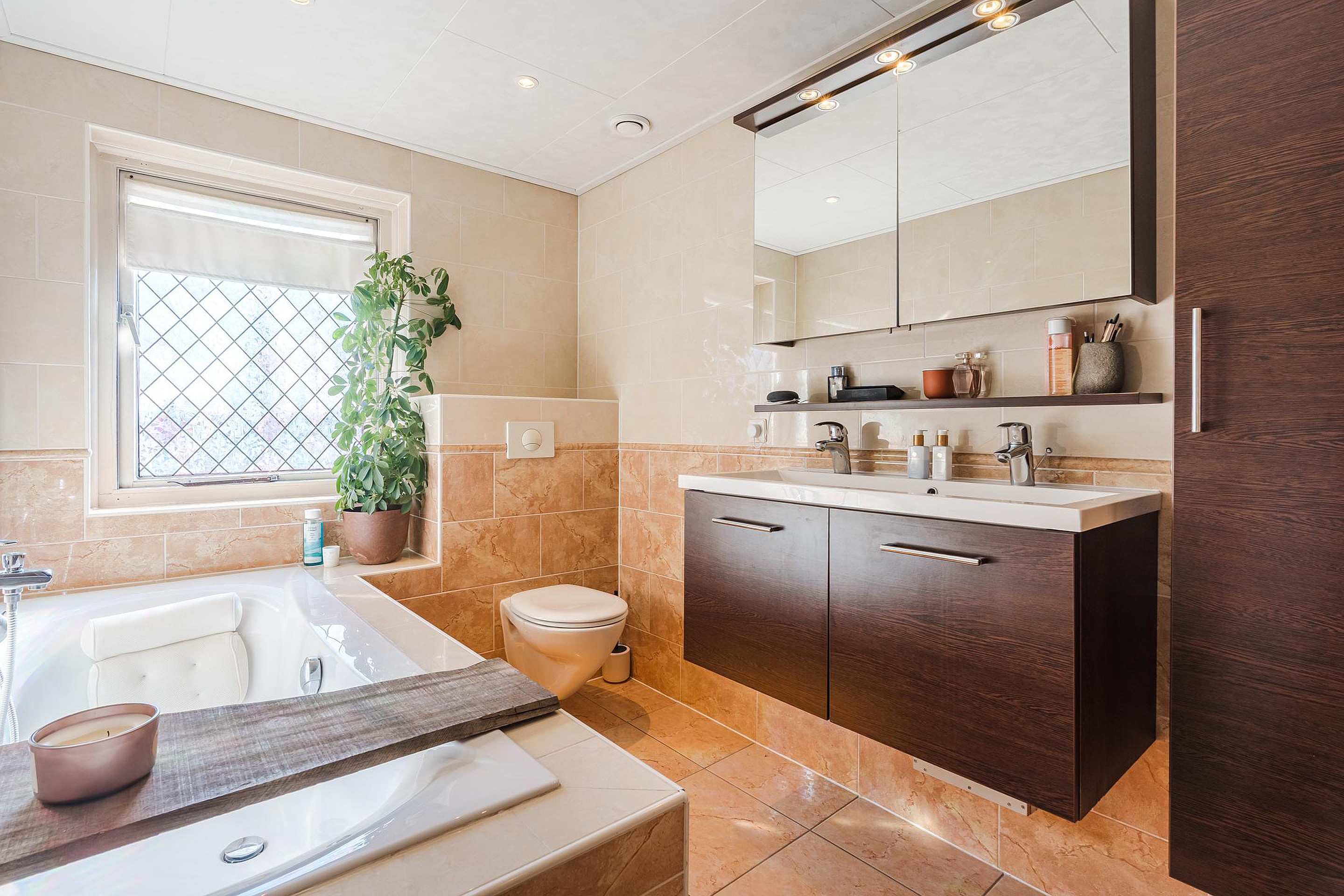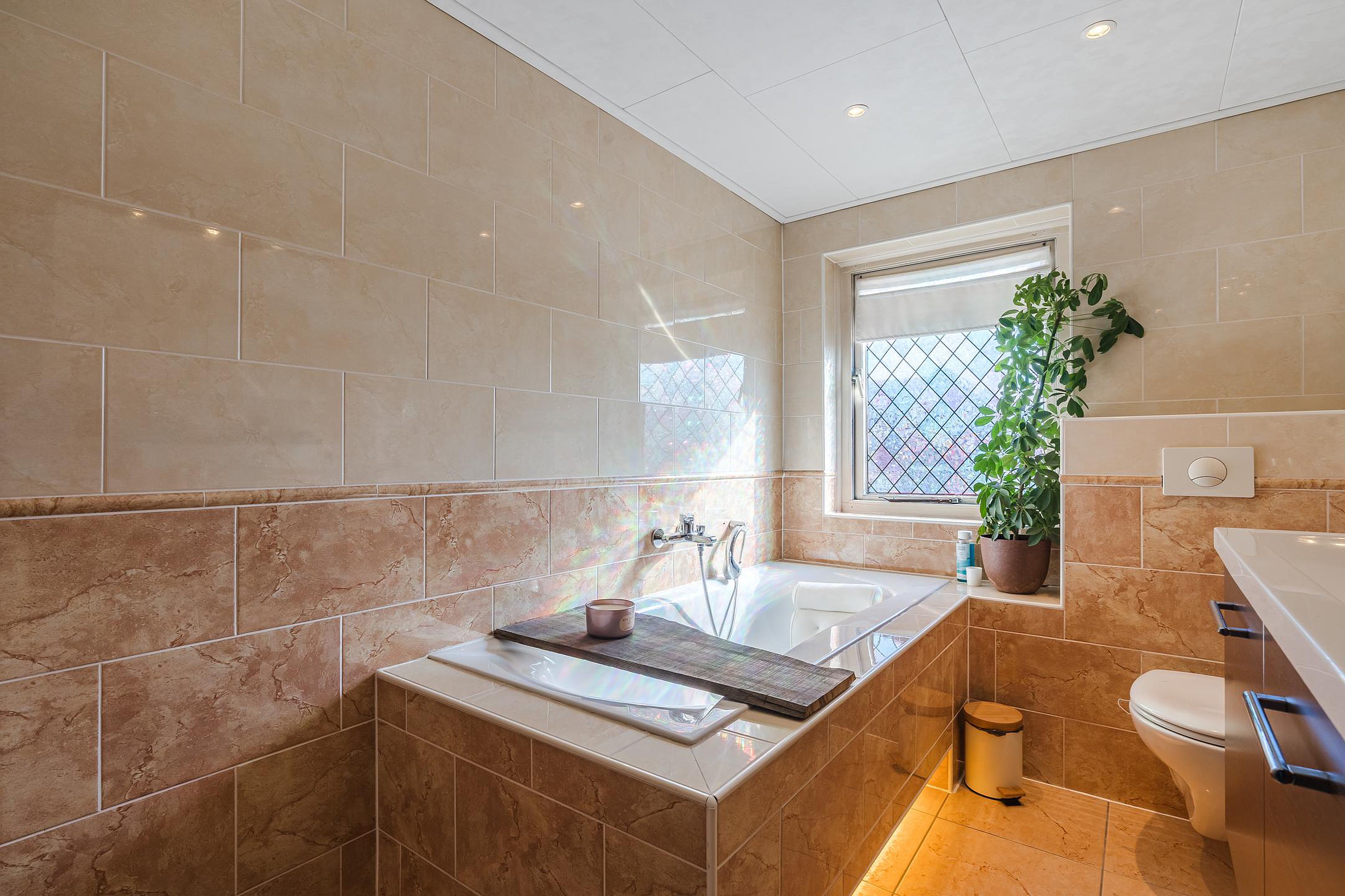 Eerste verdieping Overloop, afzonderlijke wasruimte met witgoedaansluiting, badkamer voorzien van wandcloset, dubbel wastafelmeubel, inloopdouche en ligbad, 4 slaapkamers waarvan alle 4 voorzien van vaste kast(en) en waarvan 1 met toegang tot het platte dak.