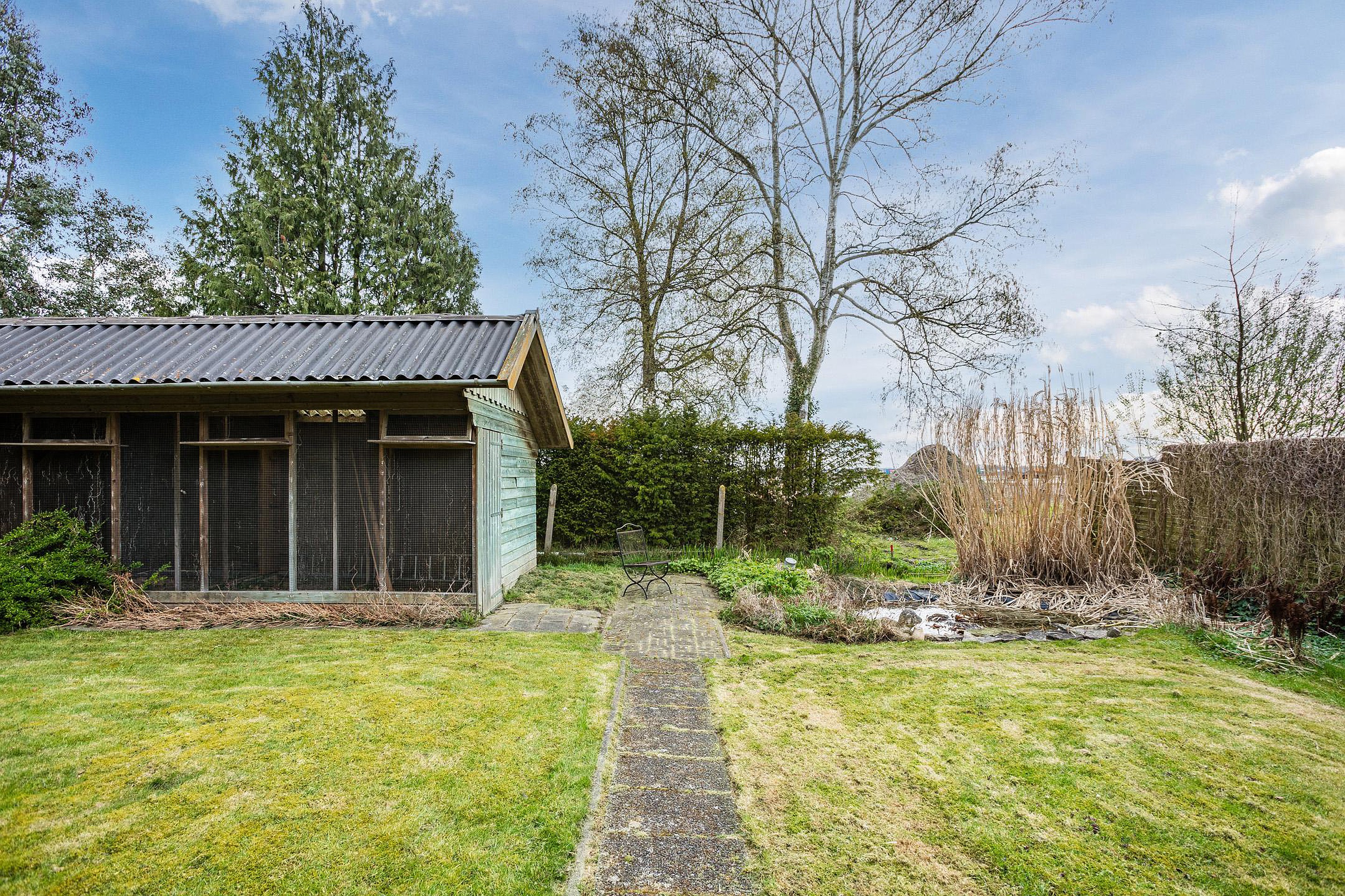 De zonnige tuin op het zuidoosten vormt een fijne buitenruimte en beschikt over een vrijstaande schuur en dierenverblijf, wat extra mogelijkheden biedt voor hobby of opslag.