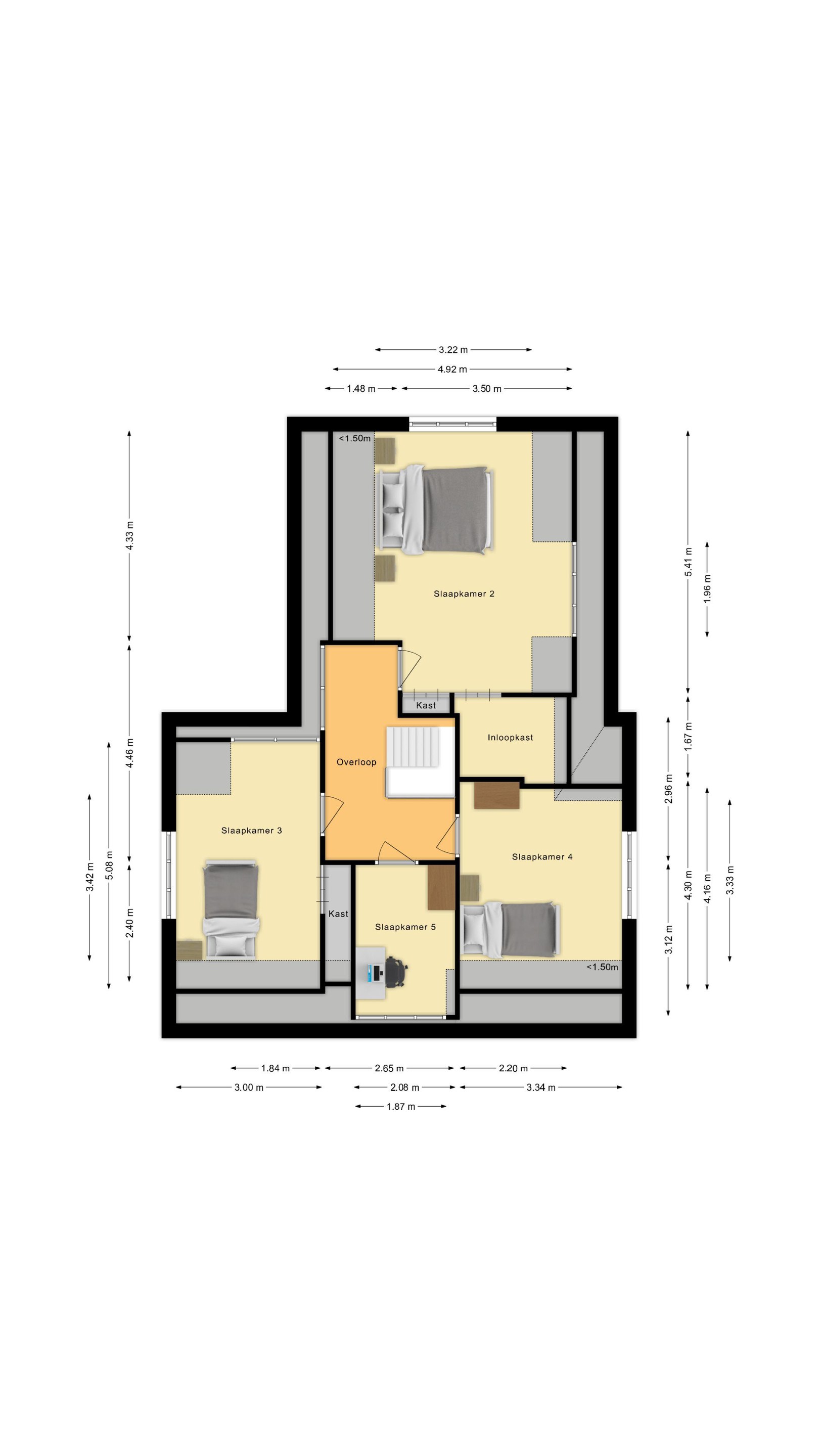 - In totaal 5 slaapkamers aanwezig;