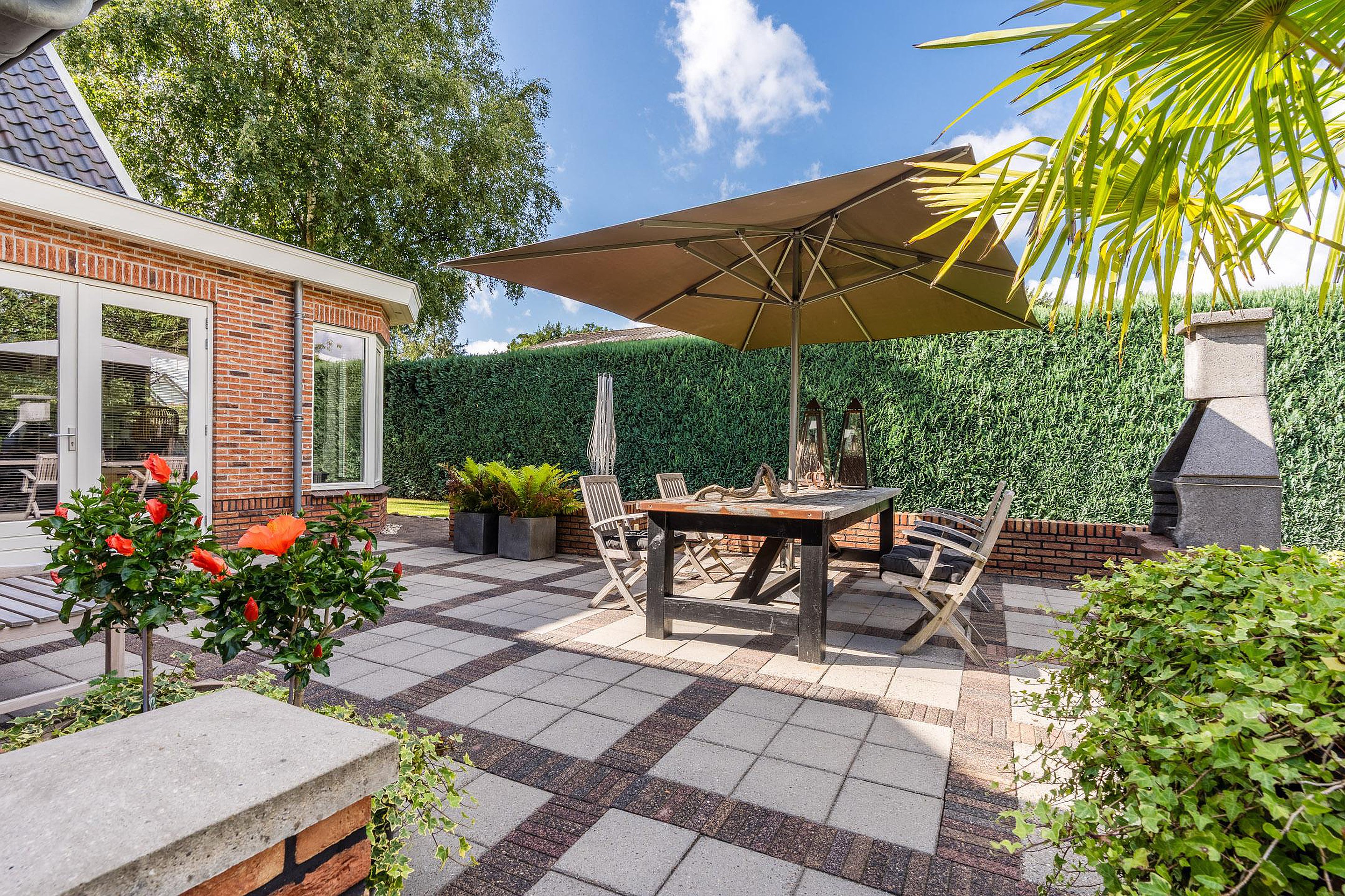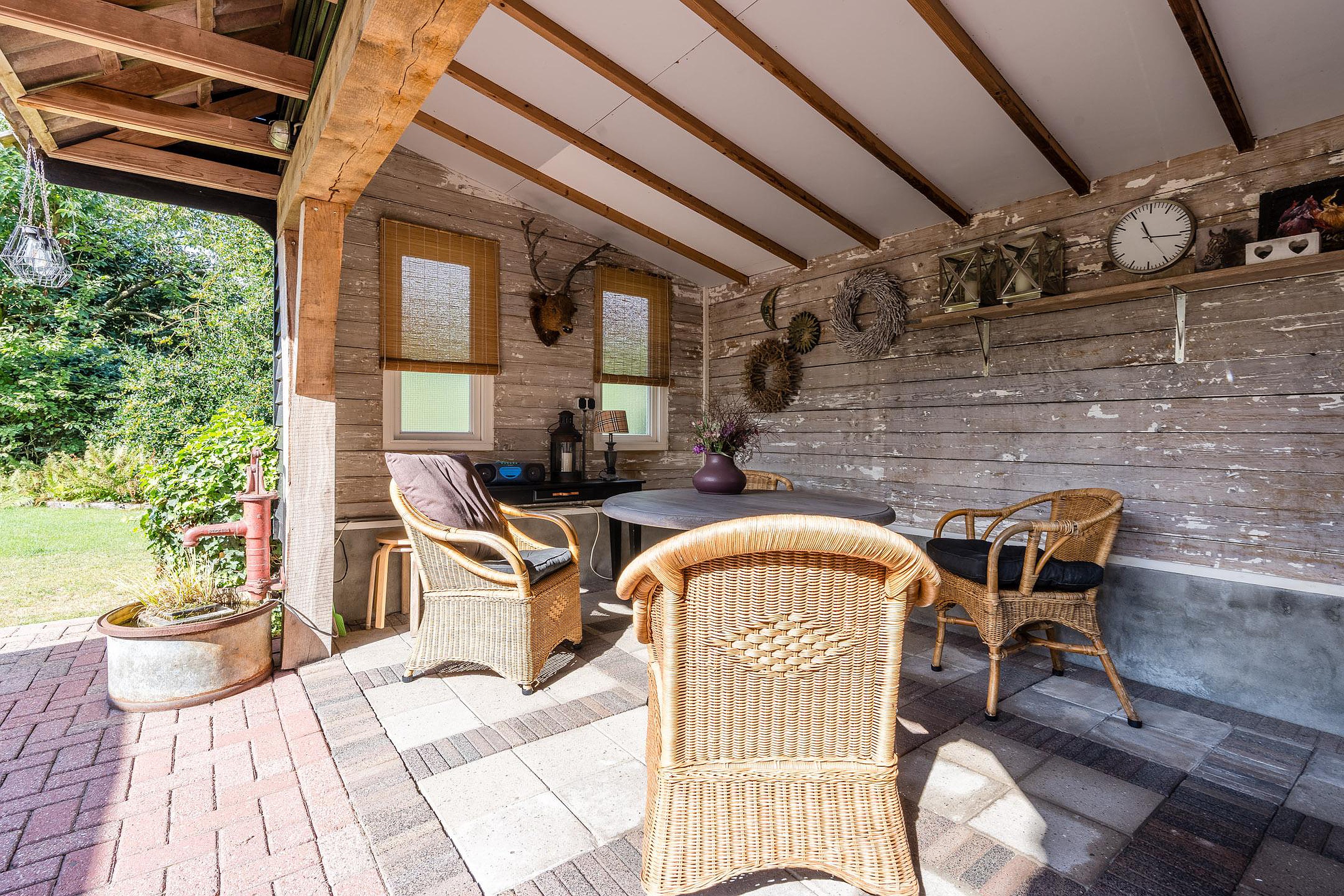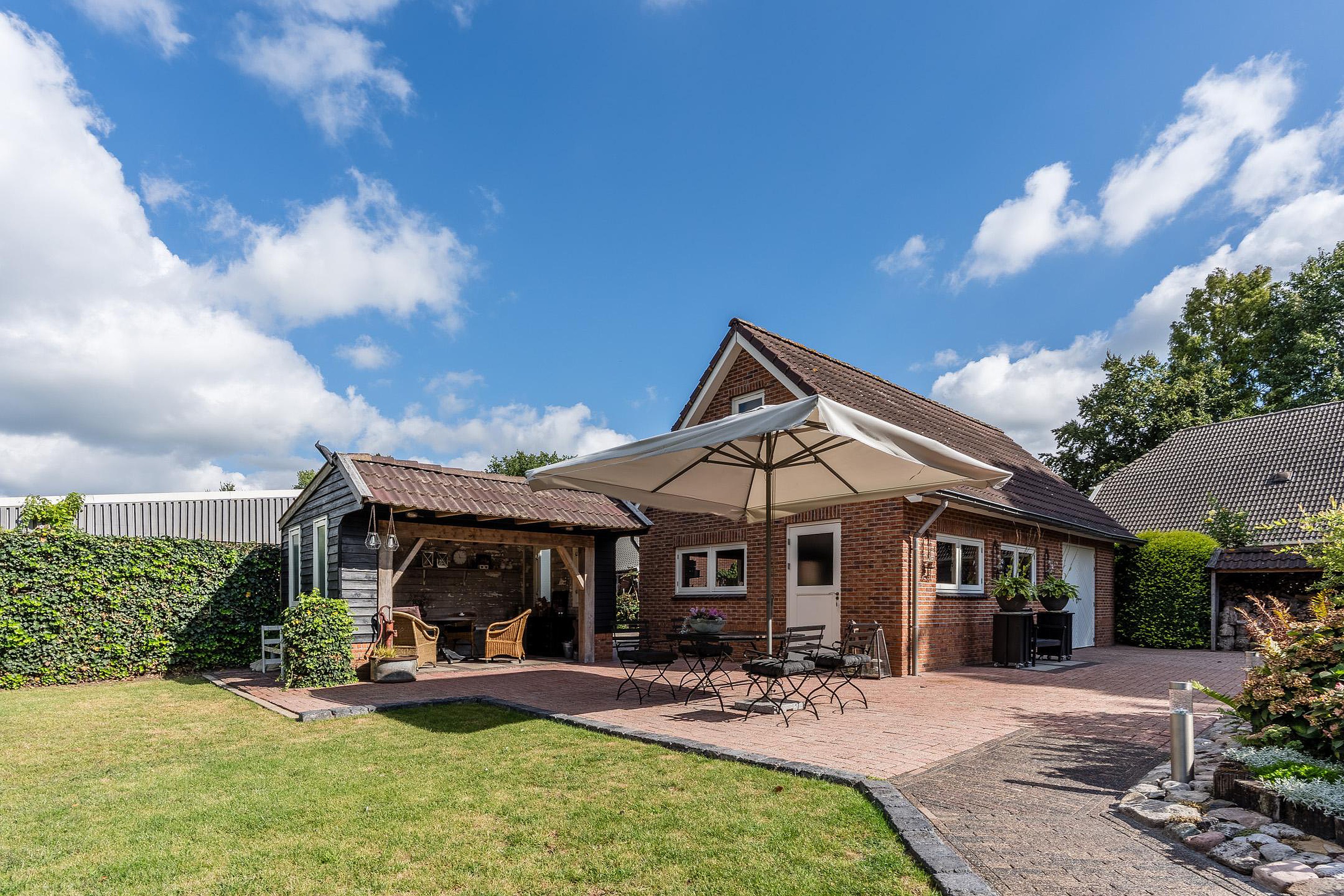 De woning ligt op een rustige plek waar ruimte en privacy samenkomen. De tuin is ruim opgezet en biedt meerdere terrassen, waaronder een overkapping om het hele jaar door van buiten te genieten. De vrijstaande garage is in spouw uitgevoerd, geïsoleerd en voorzien van een zolder, ideaal voor hobby’s, opslag of werk aan huis.