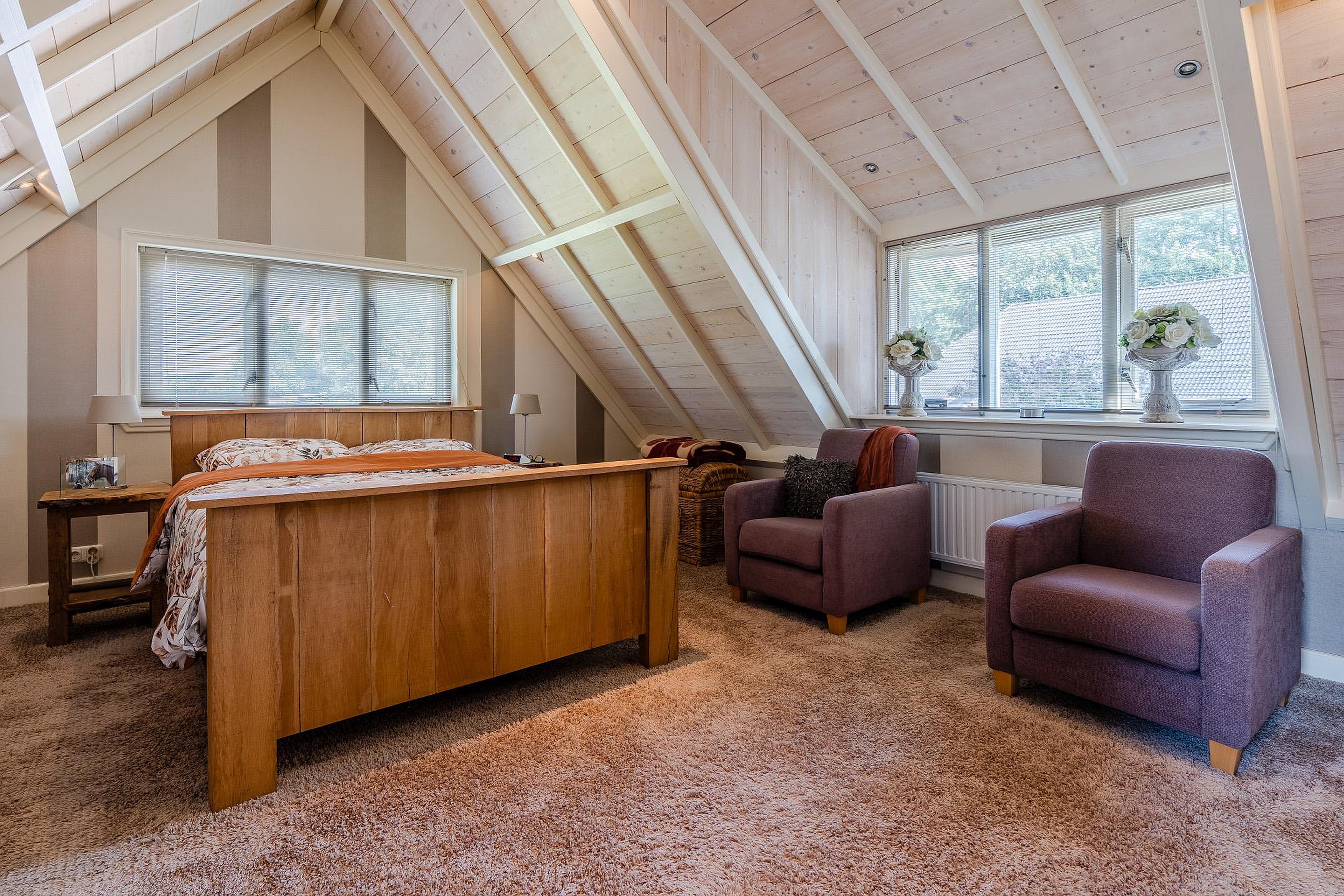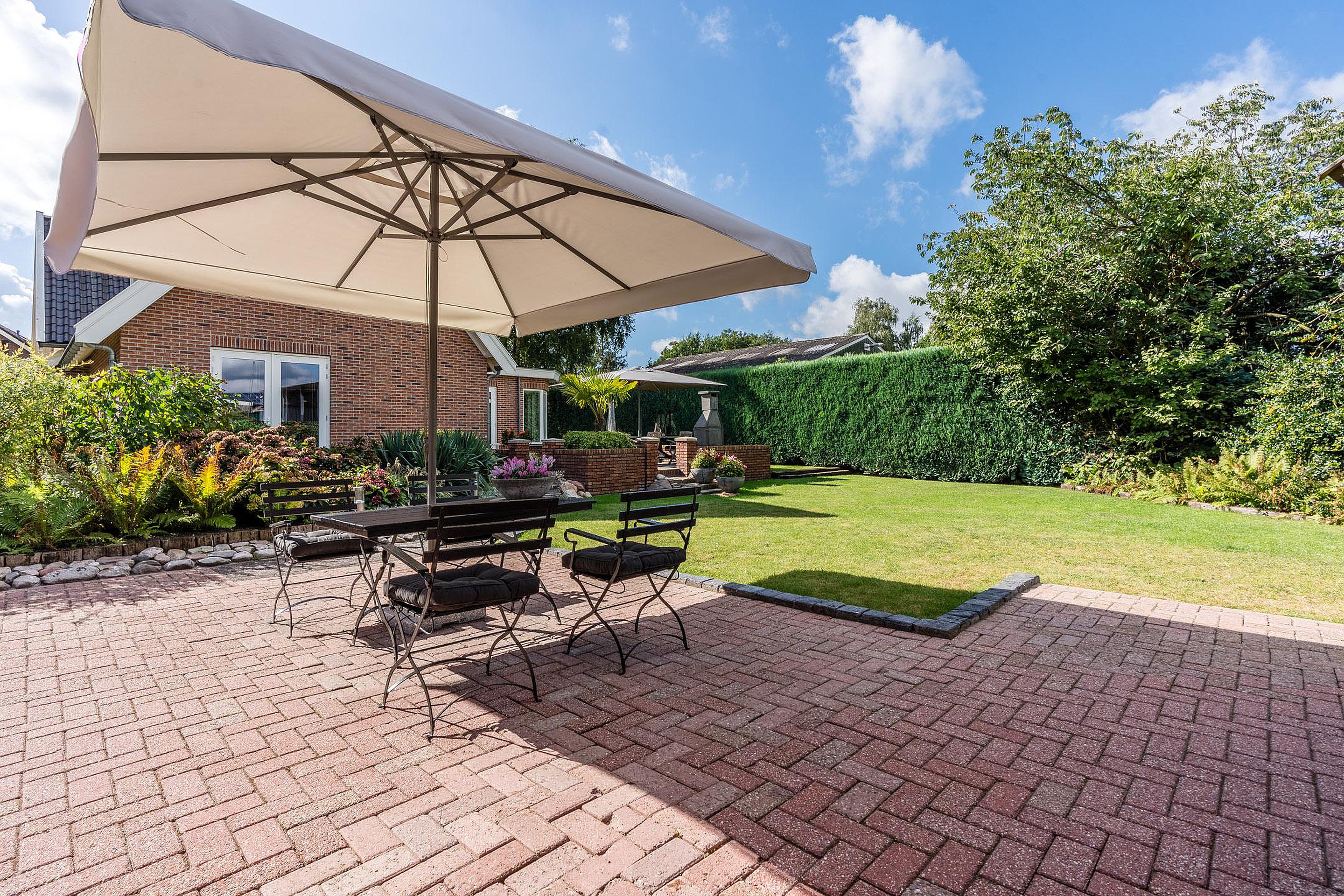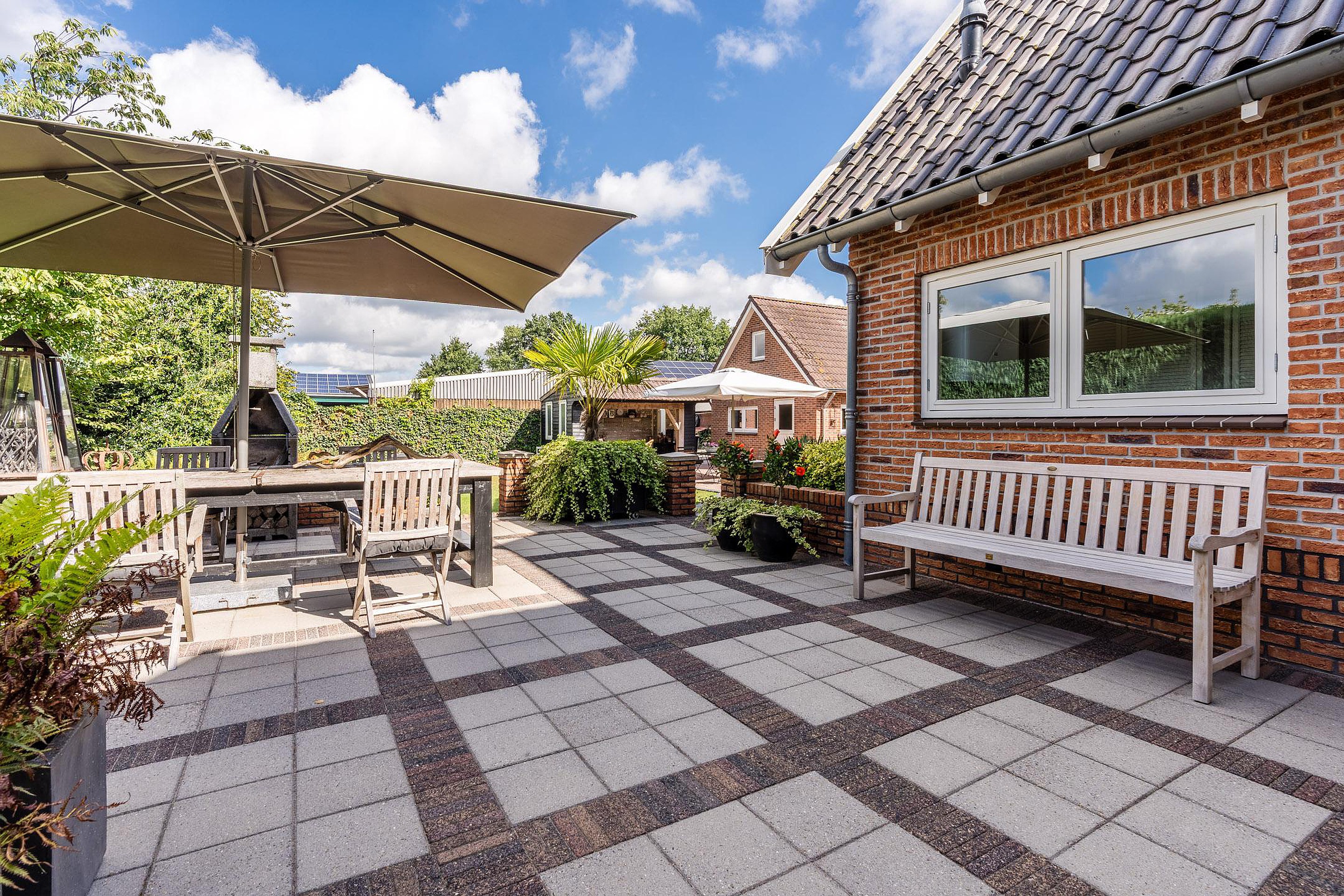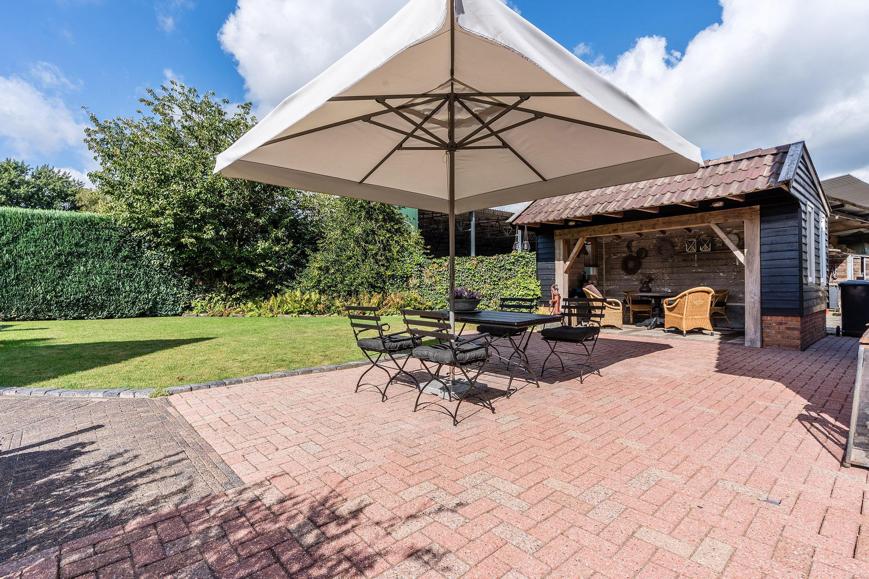 De woning ligt op een rustige plek waar ruimte en privacy samenkomen. De tuin is ruim opgezet en biedt meerdere terrassen, waaronder een overkapping om het hele jaar door van buiten te genieten. De vrijstaande garage is in spouw uitgevoerd, geïsoleerd en voorzien van een zolder, ideaal voor hobby’s, opslag of werk aan huis.