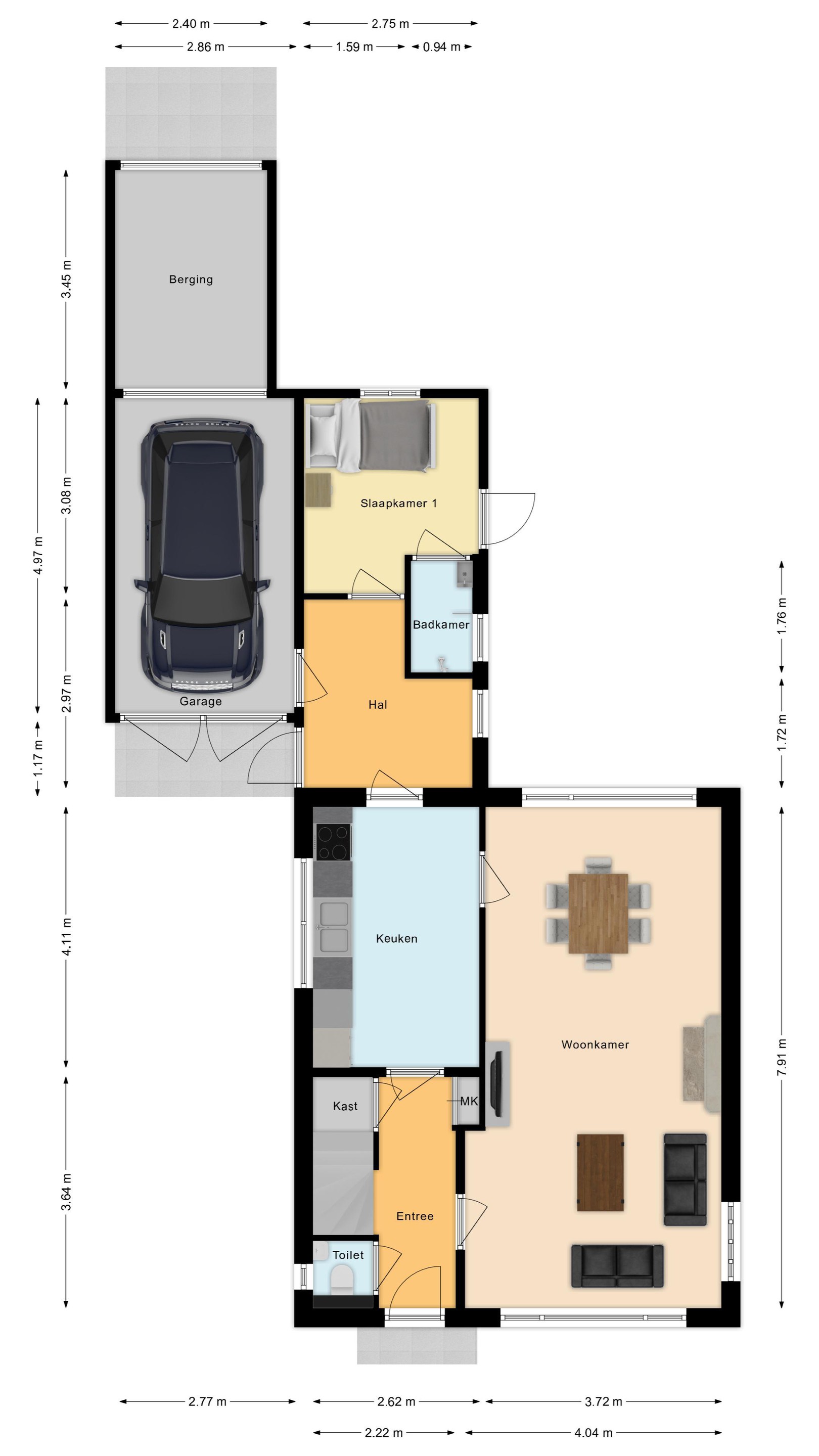 - Aangebouwde garage en vrijstaande schuurruimte aanwezig;