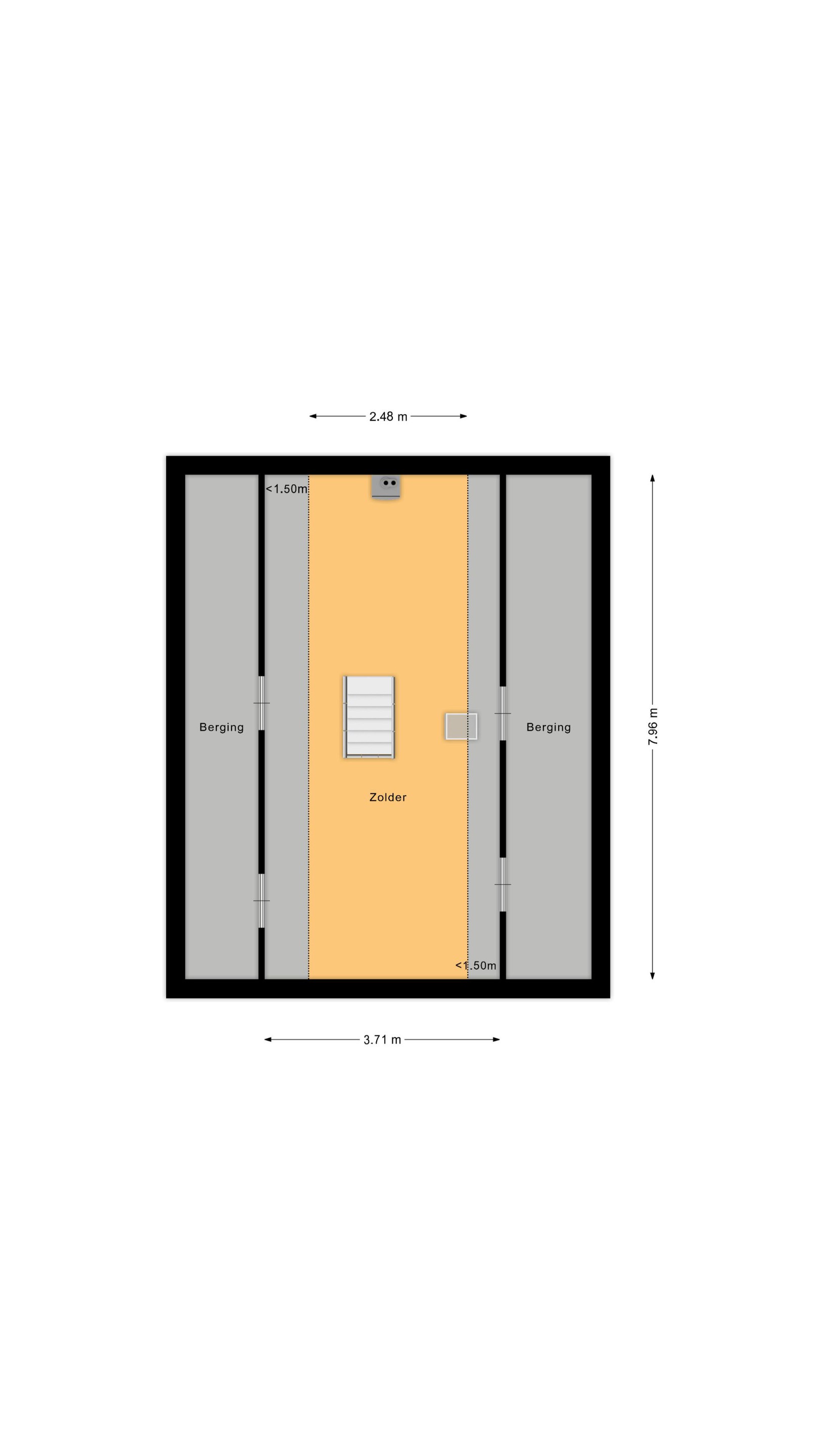 Tweede verdieping Bereikbaar met vaste trap naar afgetimmerde zolderruimte met opstelplaats voor de cv-ketel en bergruimte achter de knieschotten.