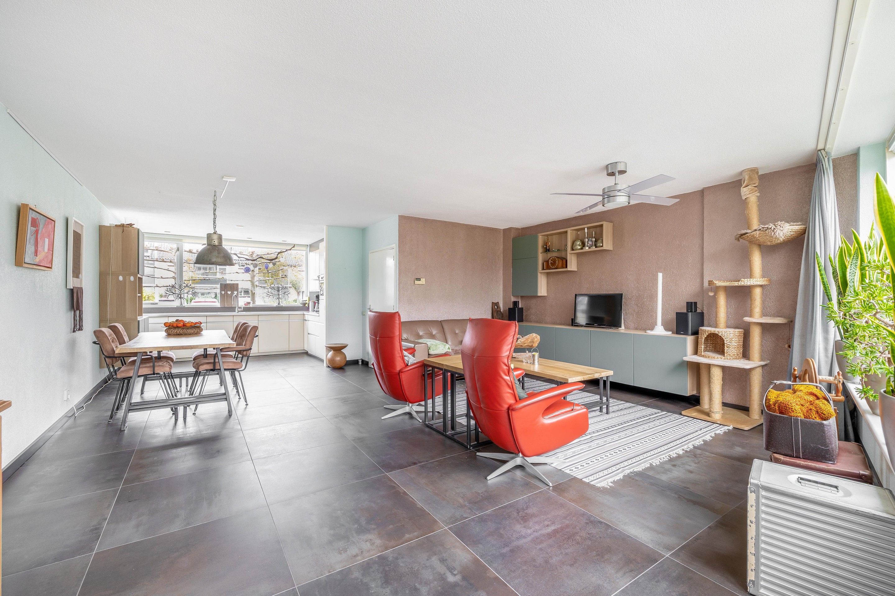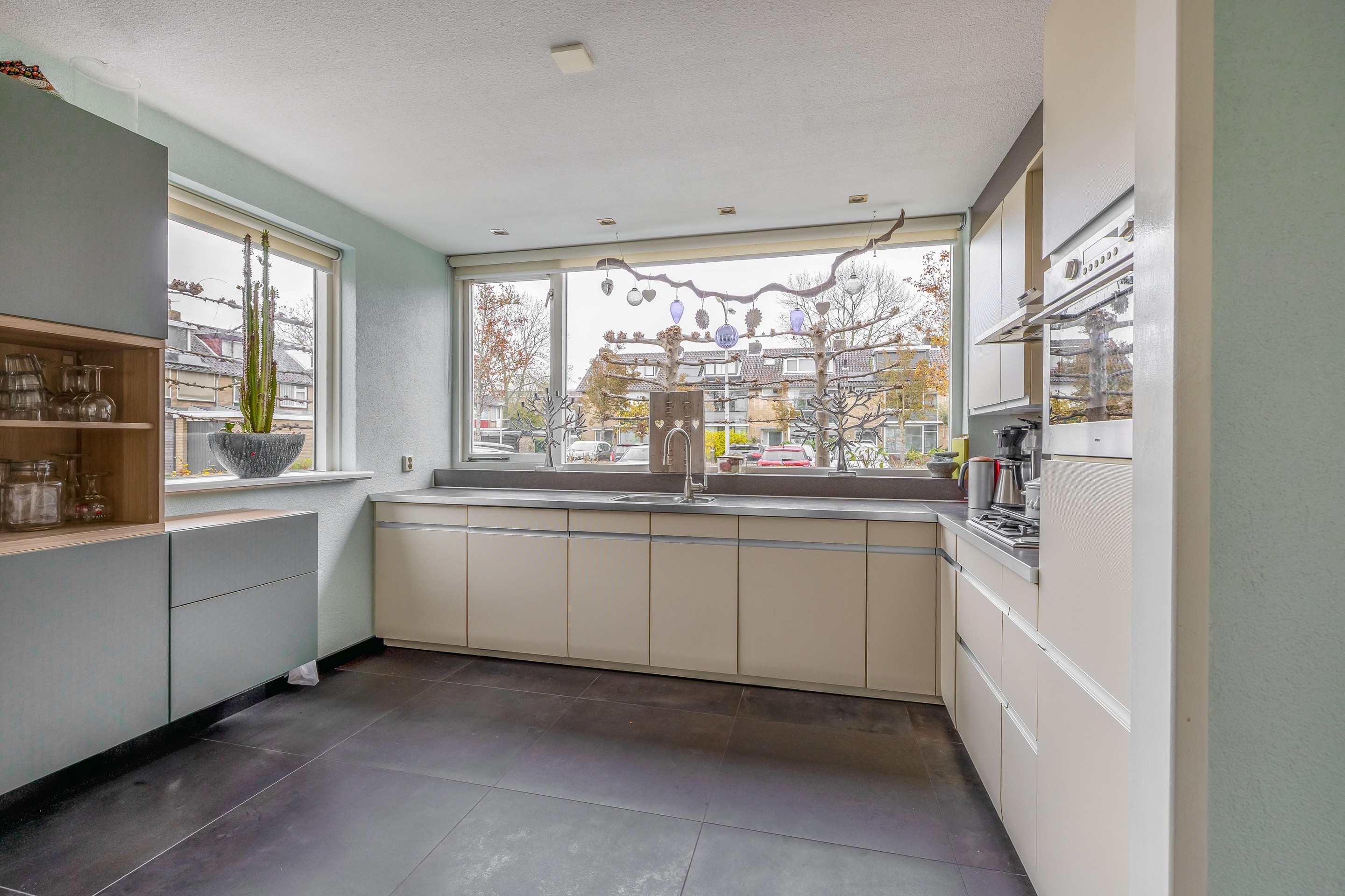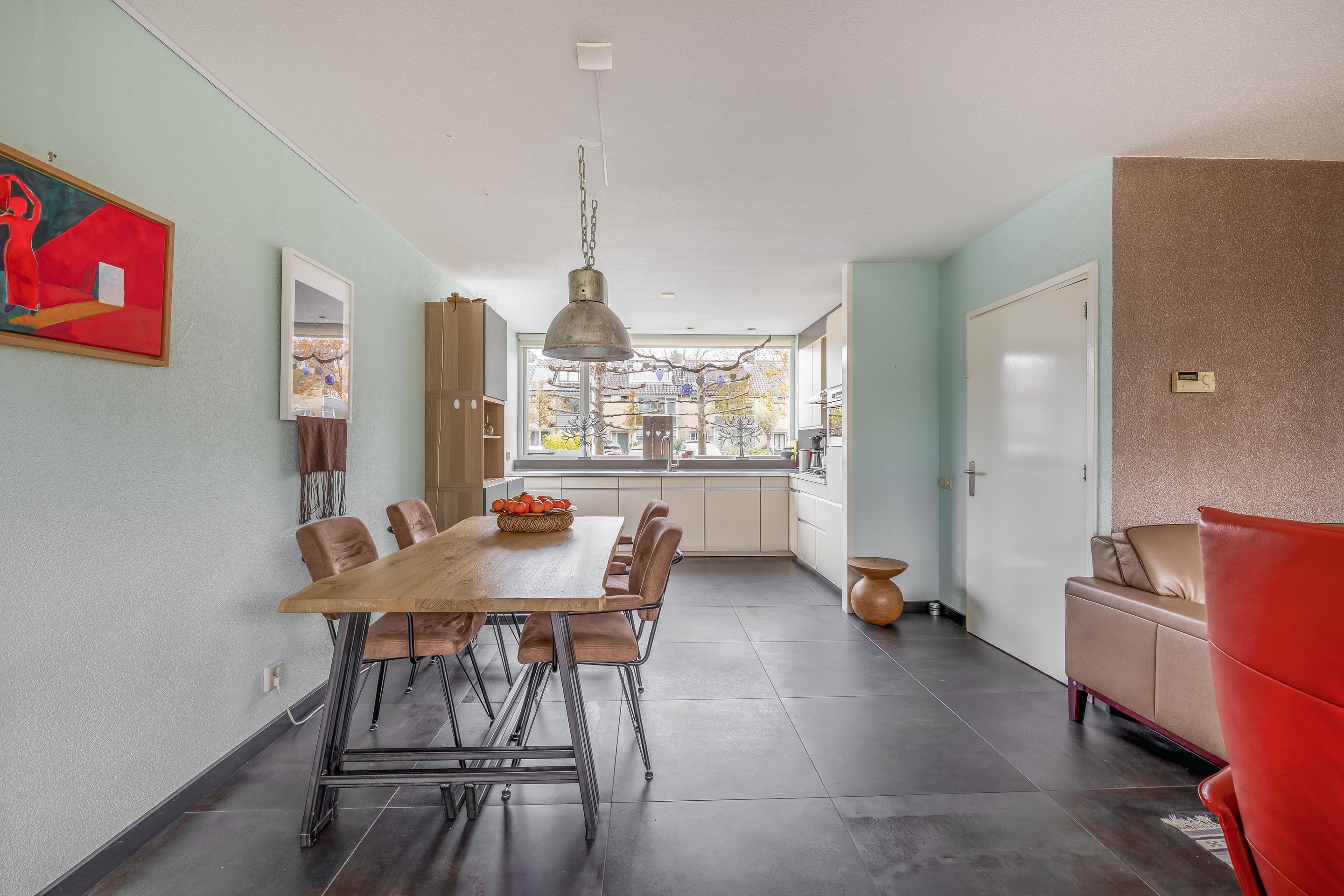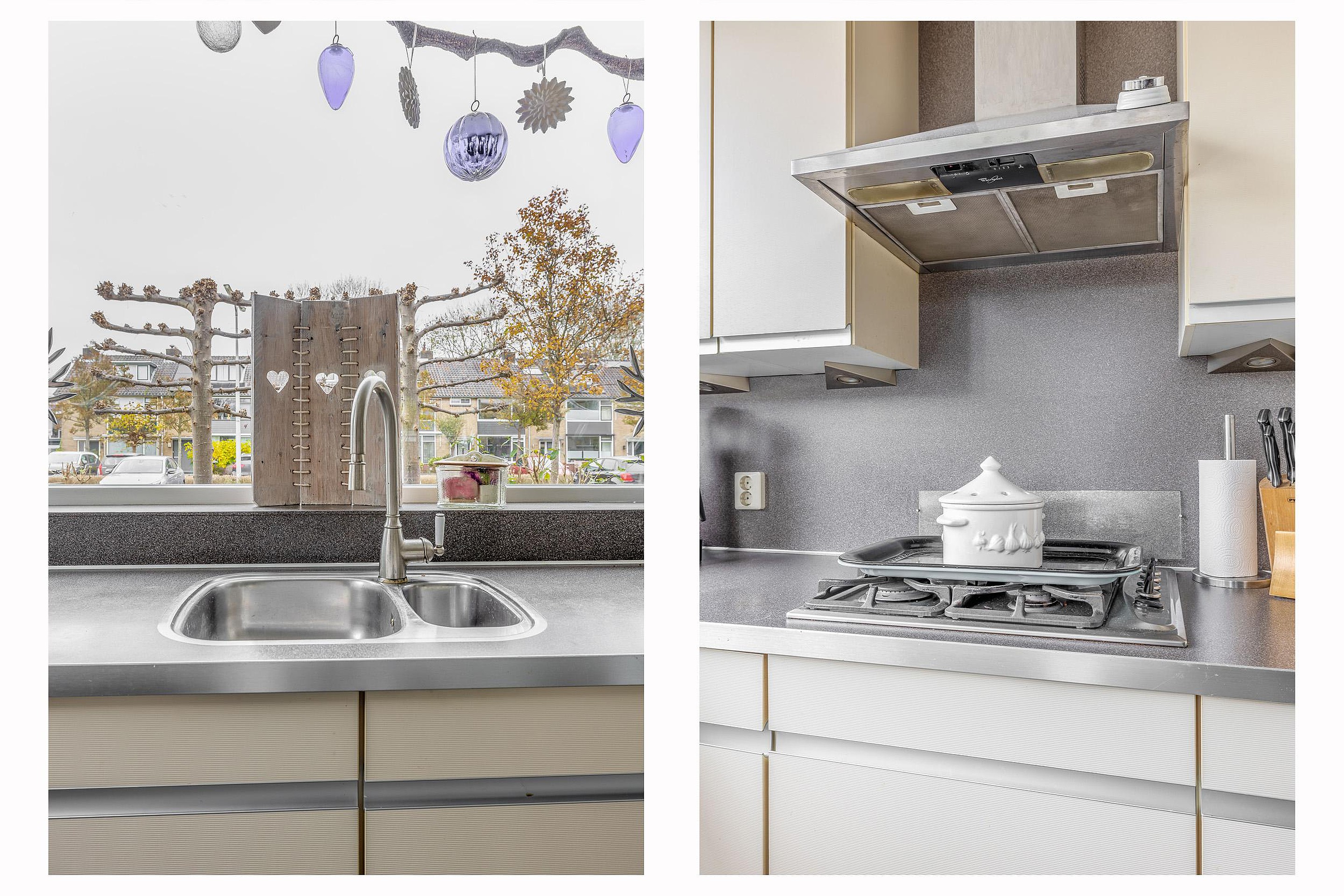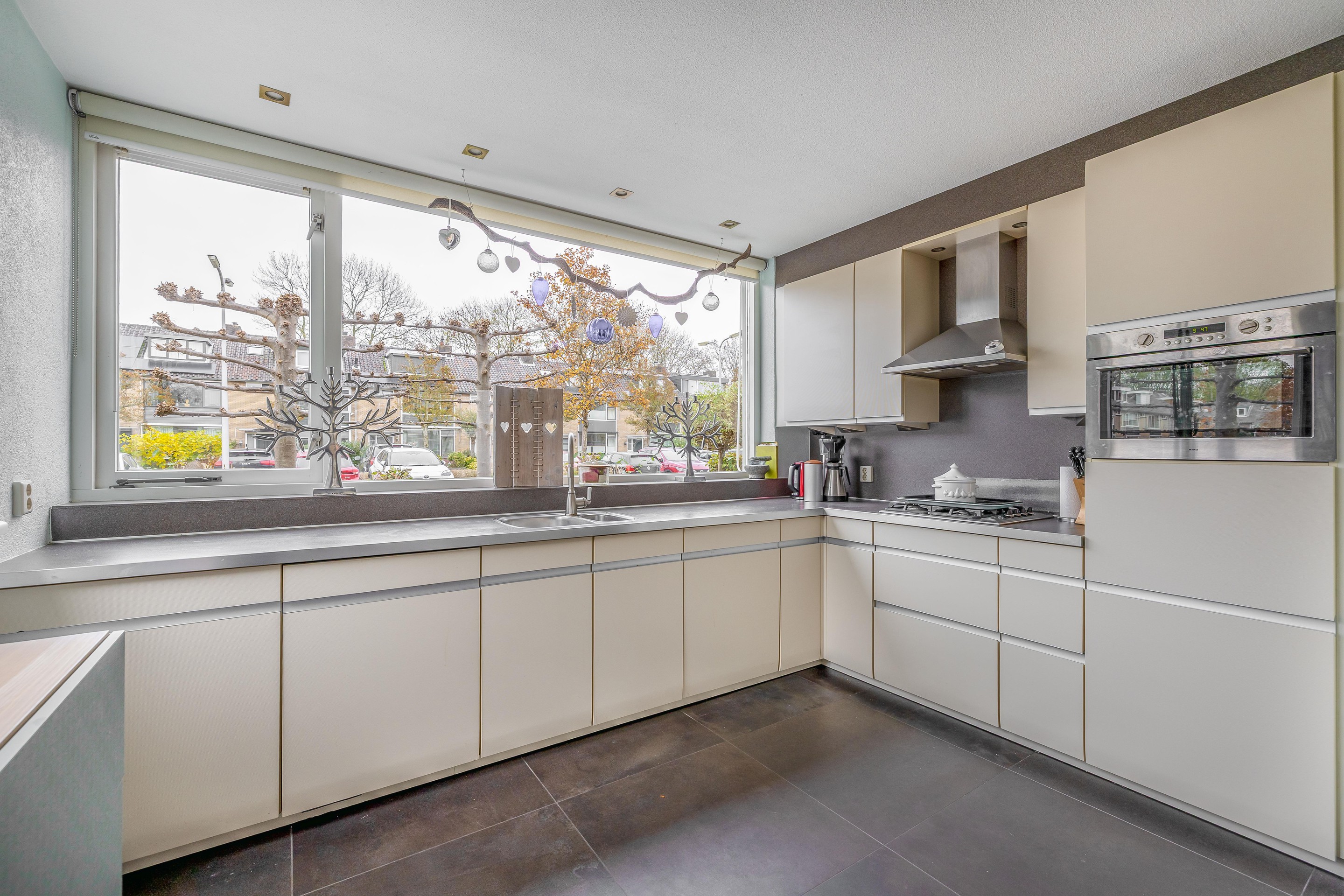 Vanuit de hal stapt u direct de royale, tuingerichte woonkamer binnen. Deze vormt een harmonieus geheel met de open keuken aan de voorzijde. De woonkamer is voorzien van openslaande deuren naar de tuin, wat zorgt voor een prachtige lichtinval. De luxe, L-vormige keukenopstelling aan de voorzijde biedt uitzicht op het voorgelegen plein en is uitgerust met inbouwapparatuur: een vaatwasser, een 4-pits gaskookplaat met afzuigschouw, een combi-magnetron, een koelkast, een vriezer en een close-in boiler. Bijna de gehele begane grond is afgewerkt met comfortabele vloerverwarming, waarbij tevens bodemisolatie in de kruipruimte is aangebracht voor een optimaal leefklimaat.