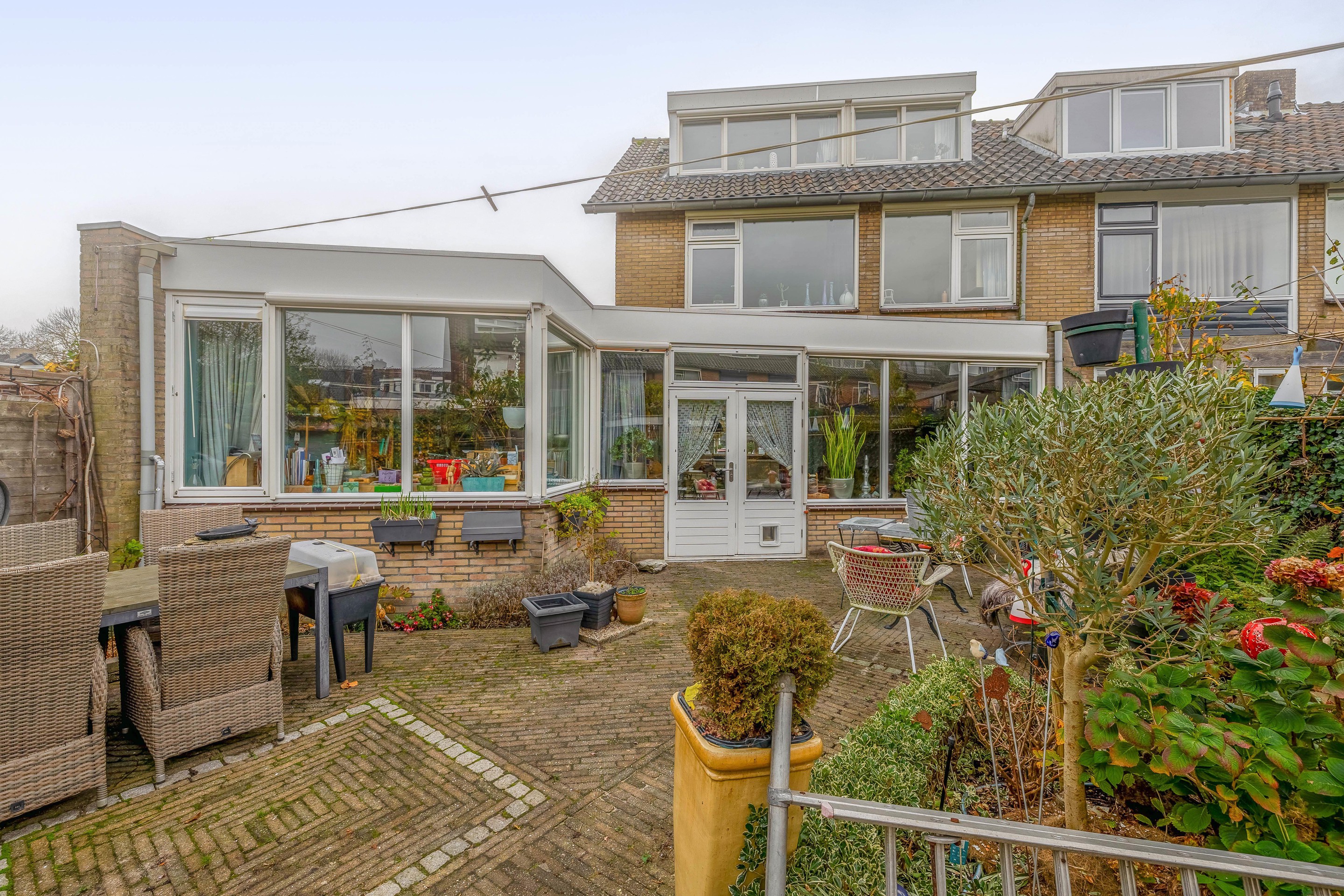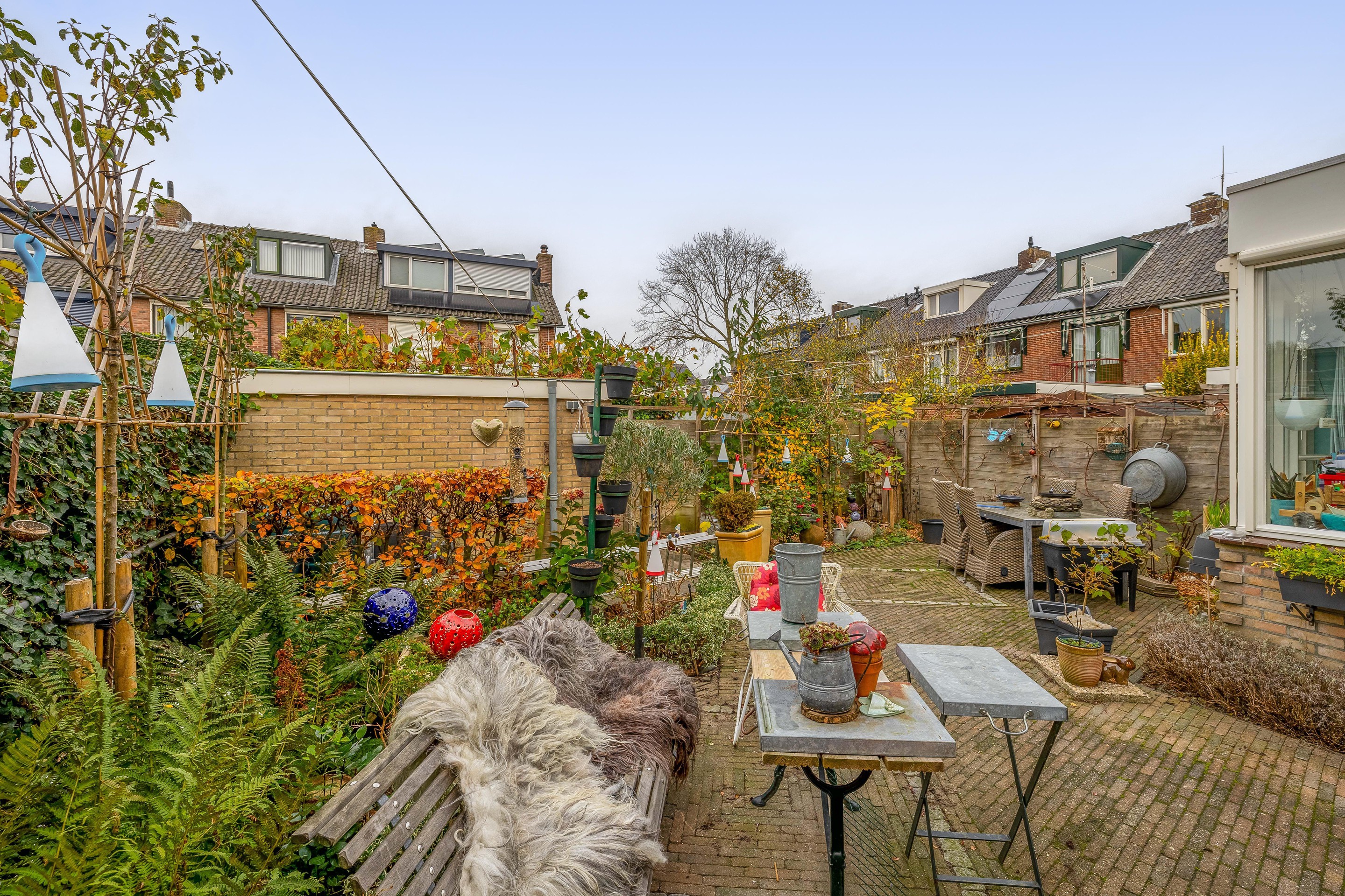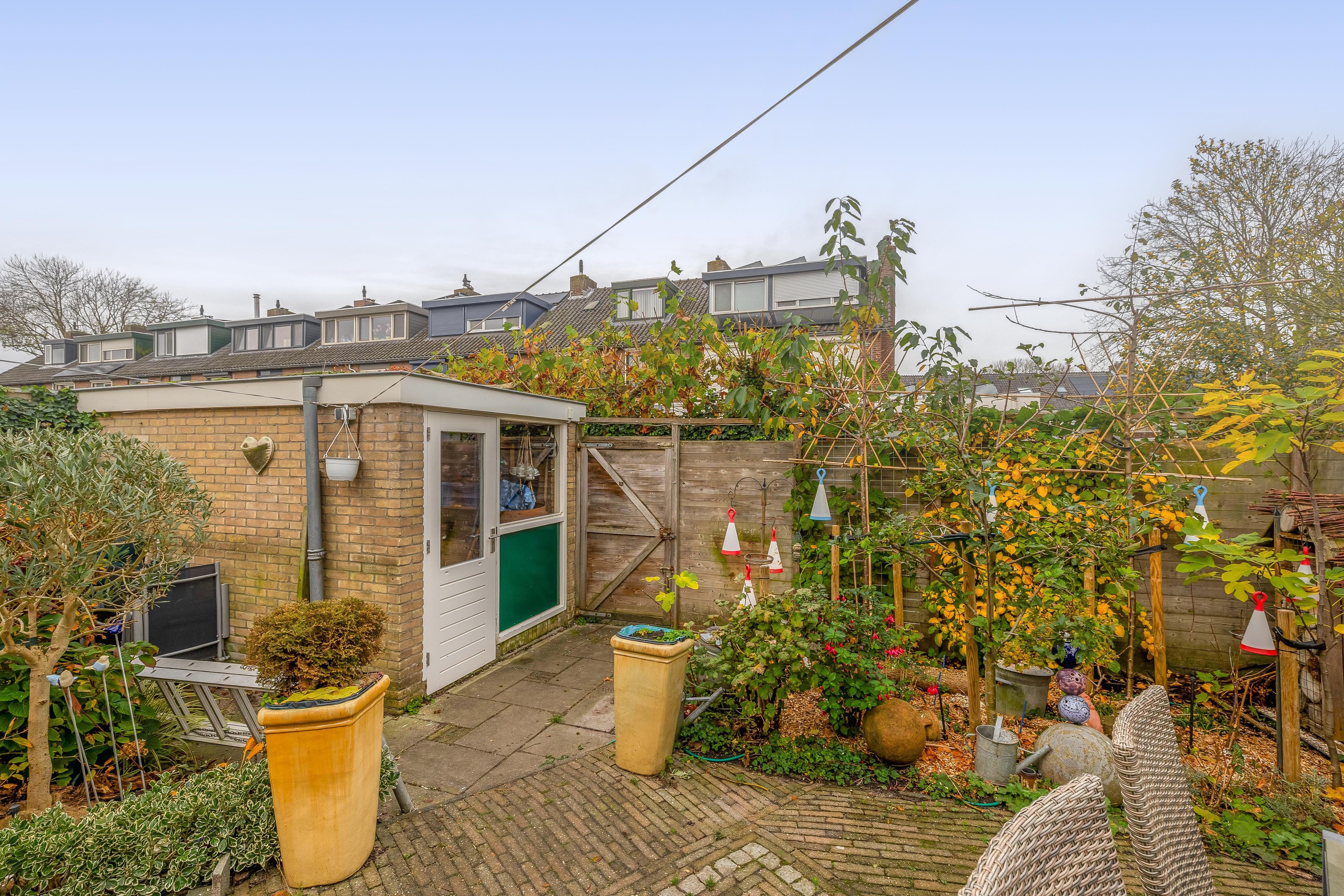 De achtertuin is keurig en sfeervol aangelegd met klinkerbestrating en veel groen. Door de ligging op een hoek is de tuin extra breed en biedt deze dankzij de oriëntatie op het Westen volop middag- en avondzon. Achterin de tuin staat een praktische stenen berging en de tuin beschikt over een buitenkraan, elektrapunten en een achterom.