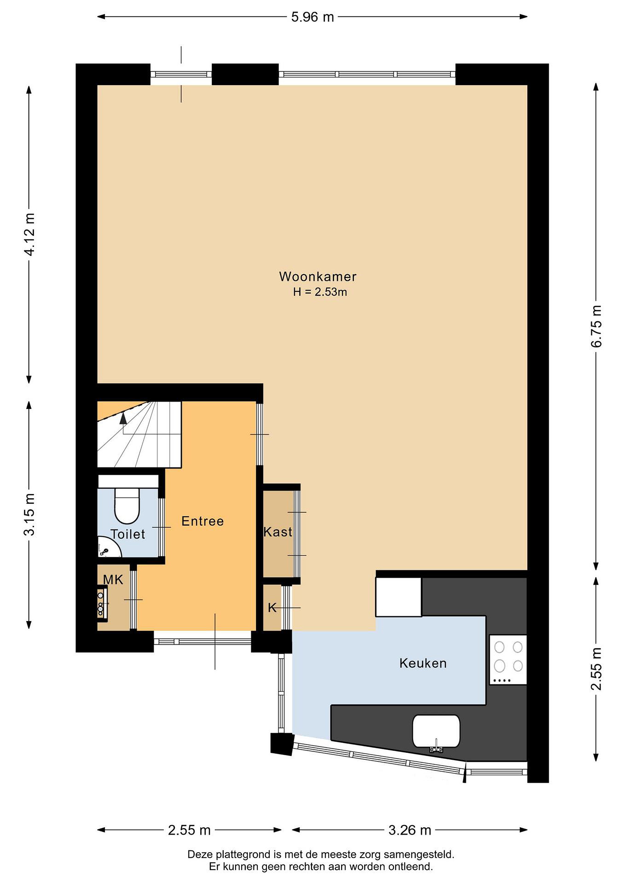 Deze vrijblijvende objectinformatie is met de grootste zorg samengesteld, maar voor de juistheid ervan kunnen wij geen aansprakelijkheid aanvaarden. Aan de vermelde gegevens kunnen geen rechten worden ontleend. Alle informatie is enkel bedoeld voor de presentatie van het object en geldt uitsluitend als uitnodiging tot het doen van een bod. Eventueel bijgevoegde plattegronden zijn slechts indicatief.
