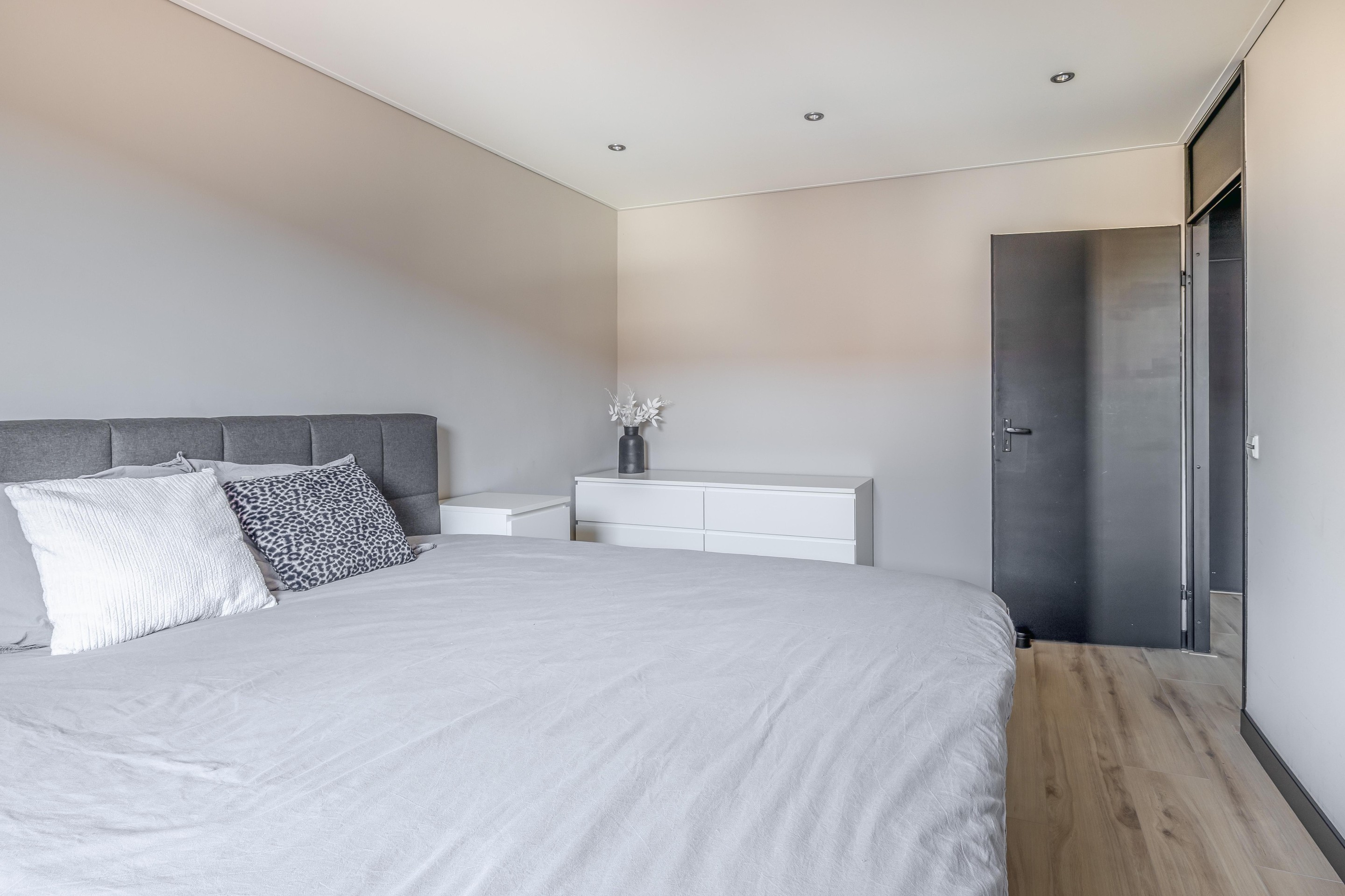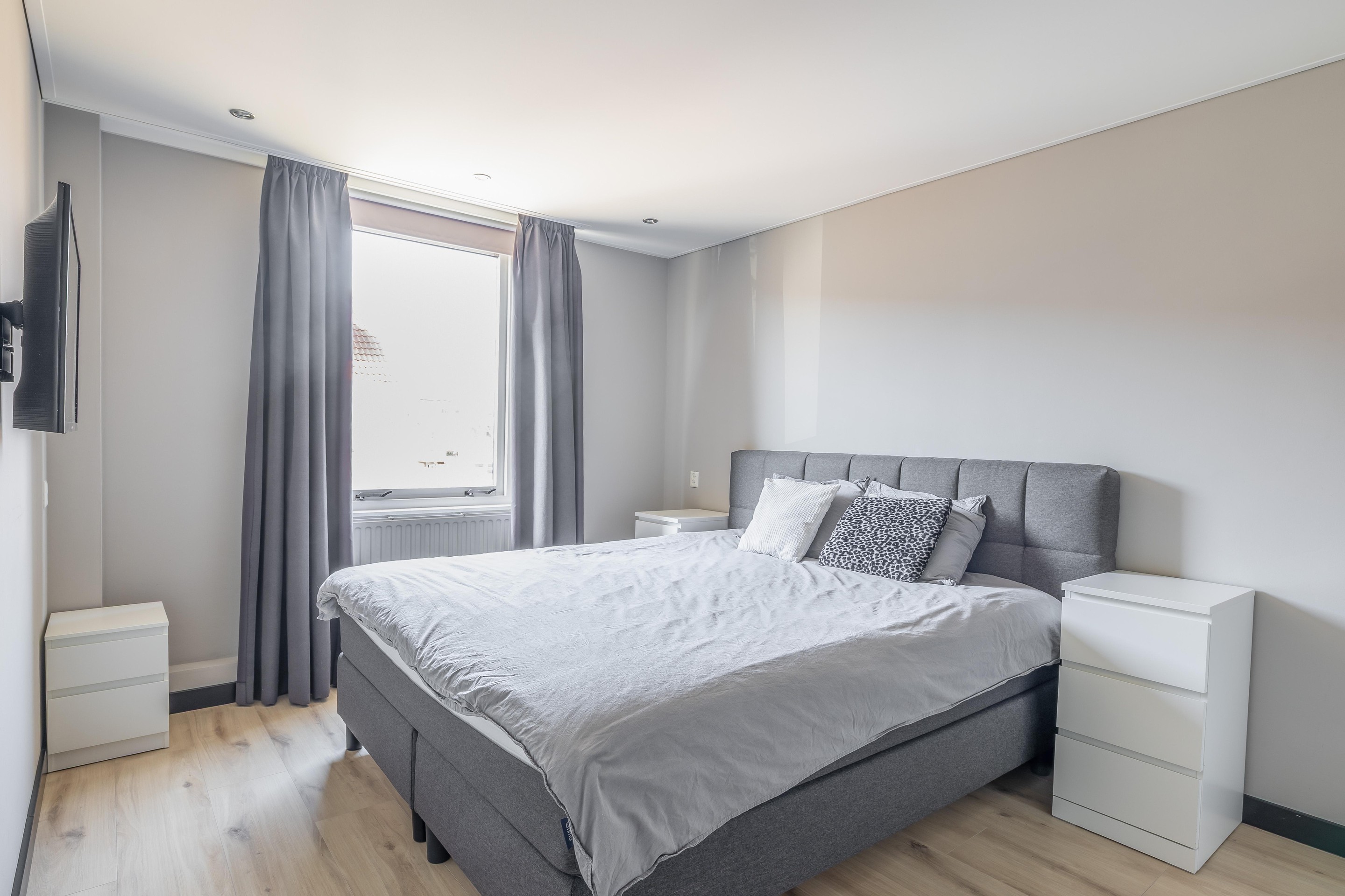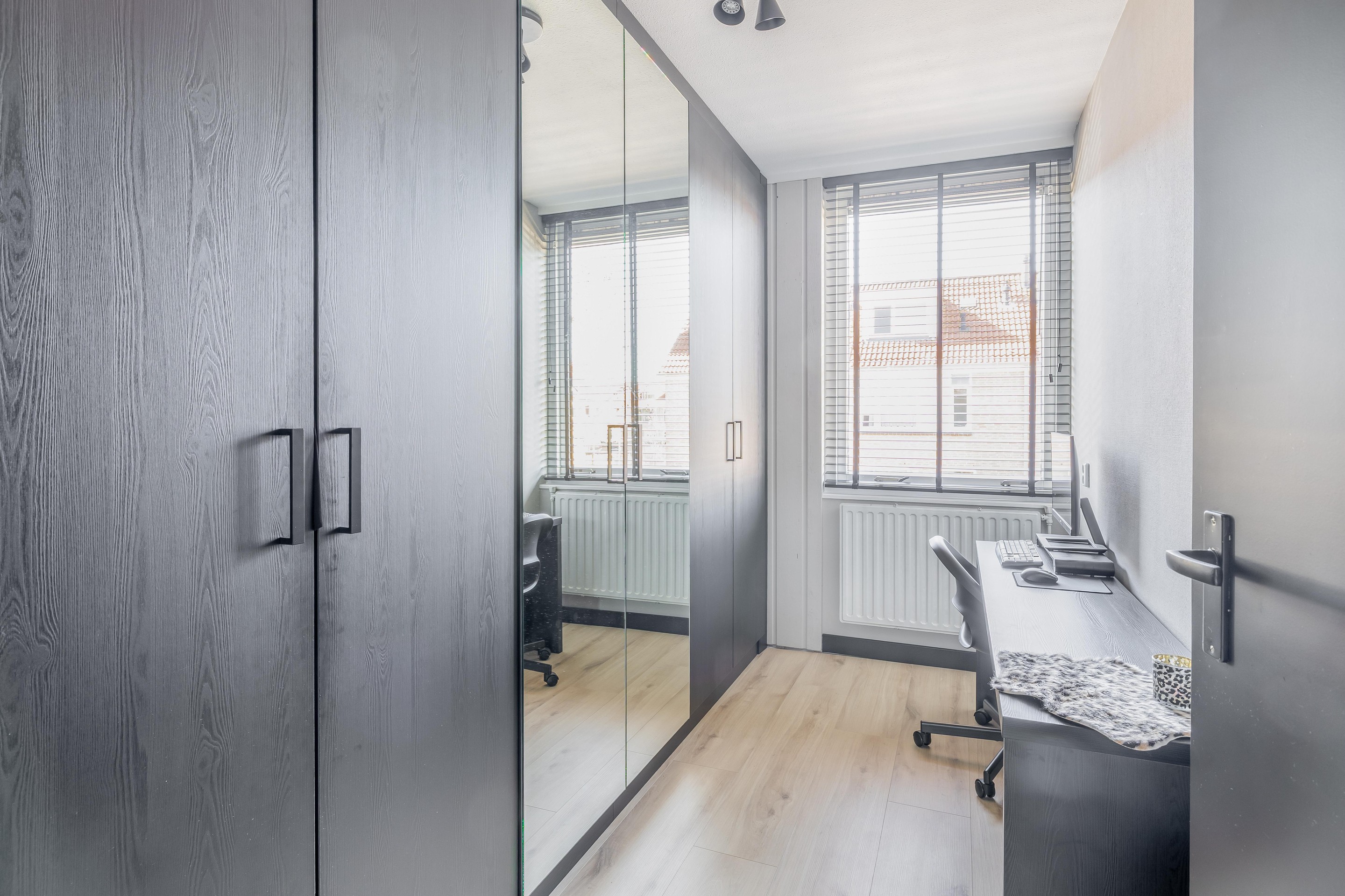 Aan de voorzijde vind je twee slaapkamers, waaronder de royale hoofdslaapkamer. Deze kamer voelt extra luxe aan door het verlaagde plafond met sfeervolle inbouwspots. De tweede kamer aan de voorzijde is slim ingedeeld en voorzien van een praktische kastenwand. De derde slaapkamer bevindt zich aan de achterzijde en profiteert, net als de badkamer, van de extra ruimte en het licht dankzij de aanwezige dakkapel.