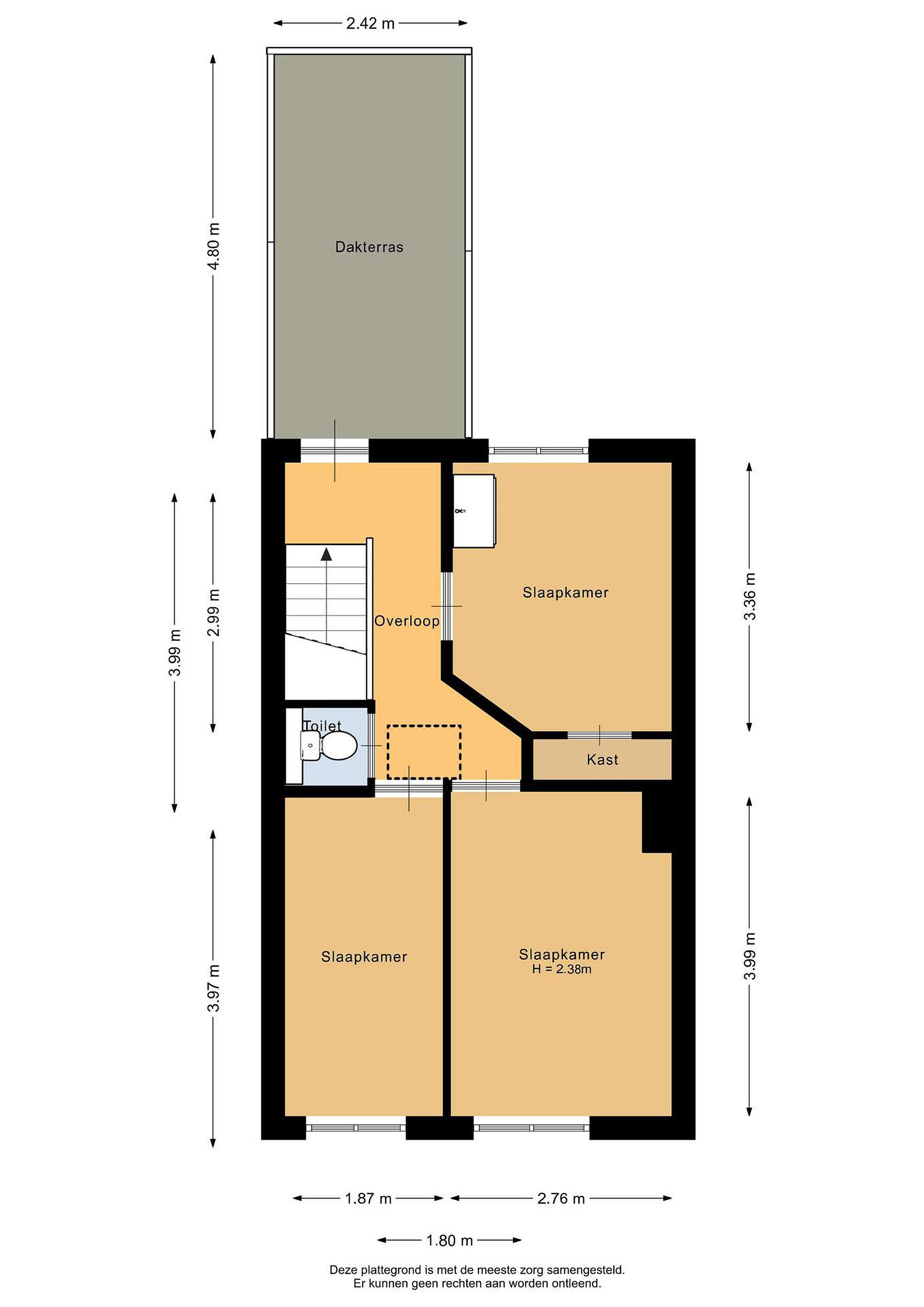 Deze vrijblijvende objectinformatie is met de meeste zorg samengesteld, maar voor de juistheid daarvan kunnen wij geen aansprakelijkheid aanvaarden. Ook kan aan de vermelde gegevens geen enkel recht worden ontleend. Alle informatie is enkel en alleen bedoeld voor de presentatie van het object en niet meer dan een uitnodiging tot het doen van een bod. Eventueel bijgevoegde plattegronden zijn slechts indicatief.