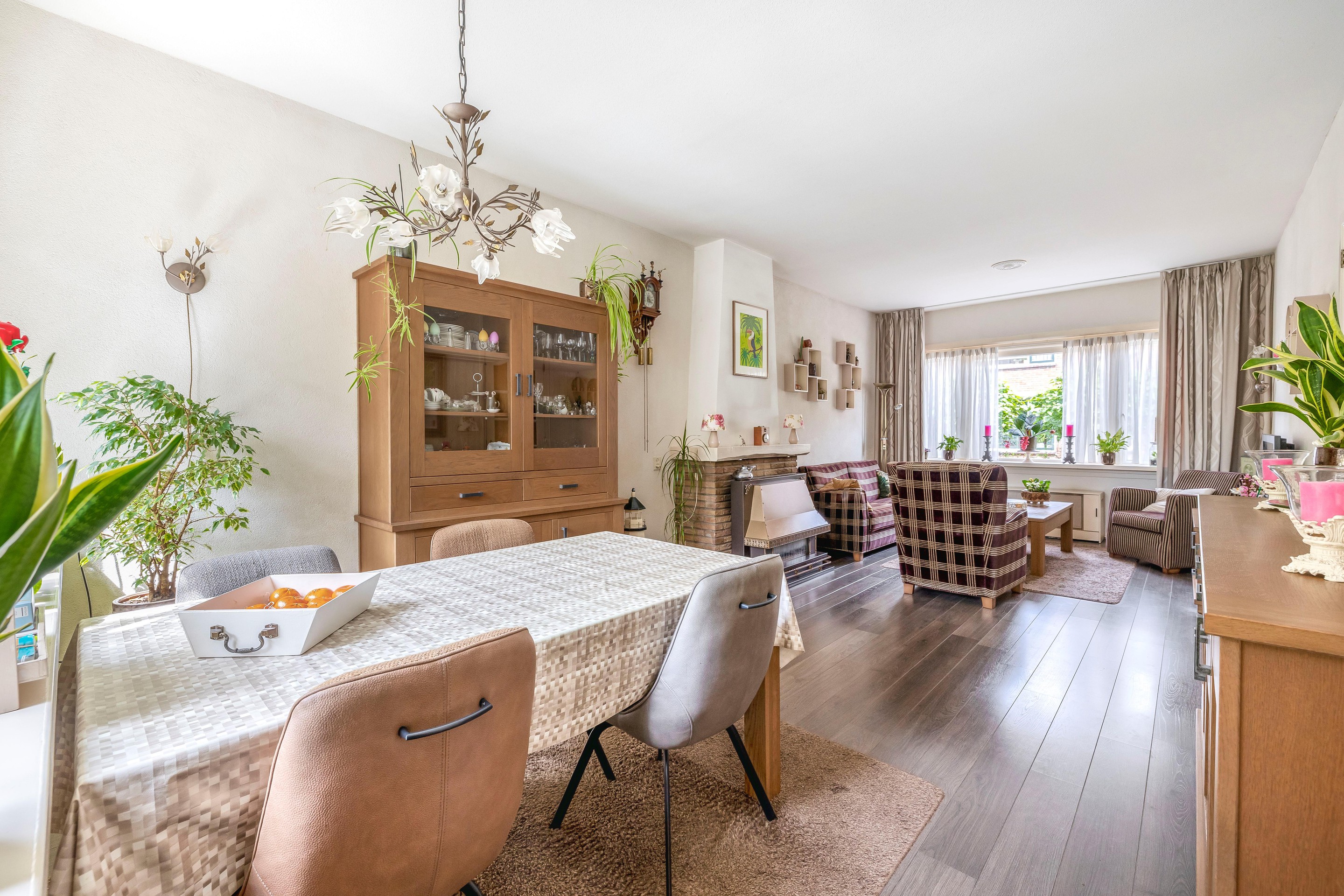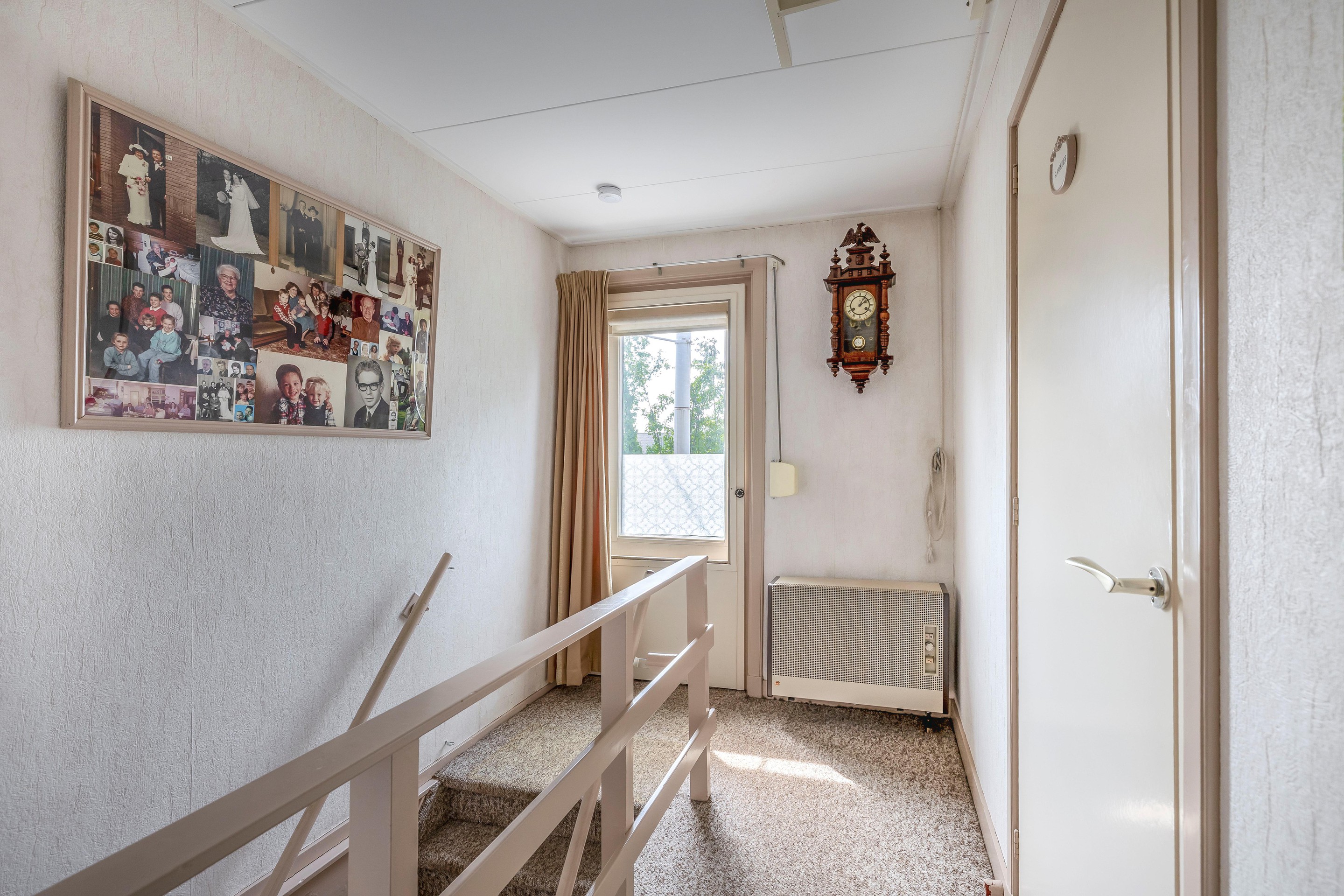 Begane grond: Bij binnenkomst via de teruggelegen entree, betreed je de hal met de meterkast en de trap naar de eerste verdieping. Vanuit hier loop je direct door naar de doorzonwoonkamer, die de gehele lengte van het huis beslaat. De woonkamer is voorzien van een gashaarden en heeft een handige kelderkast onder de trap voor extra opbergruimte.