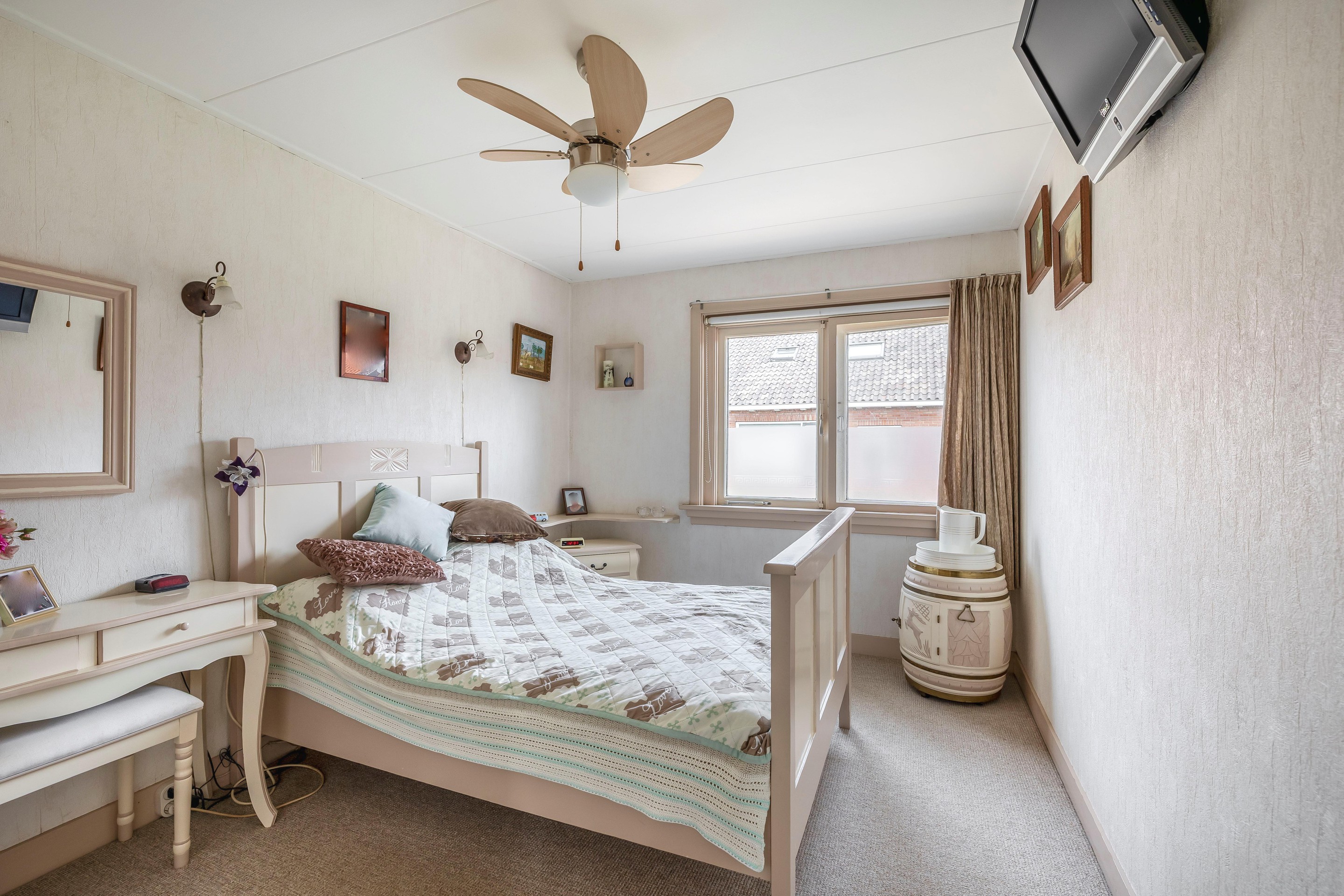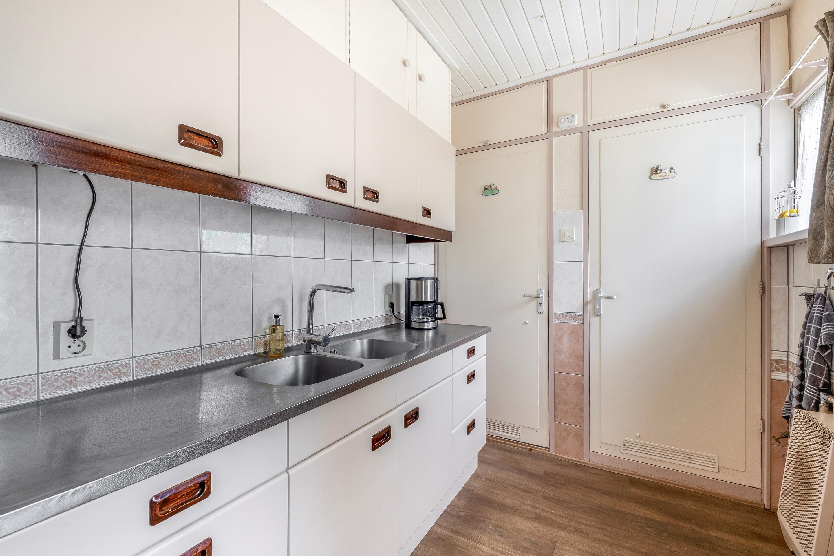 Aan de achterzijde van de woning vindt u een ruime aangebouwde houten berging. Deze berging biedt volop ruimte voor opslag en hier bevindt zich ook de aansluiting voor de wasmachine en droger die beide achterblijven bij de verkoop.