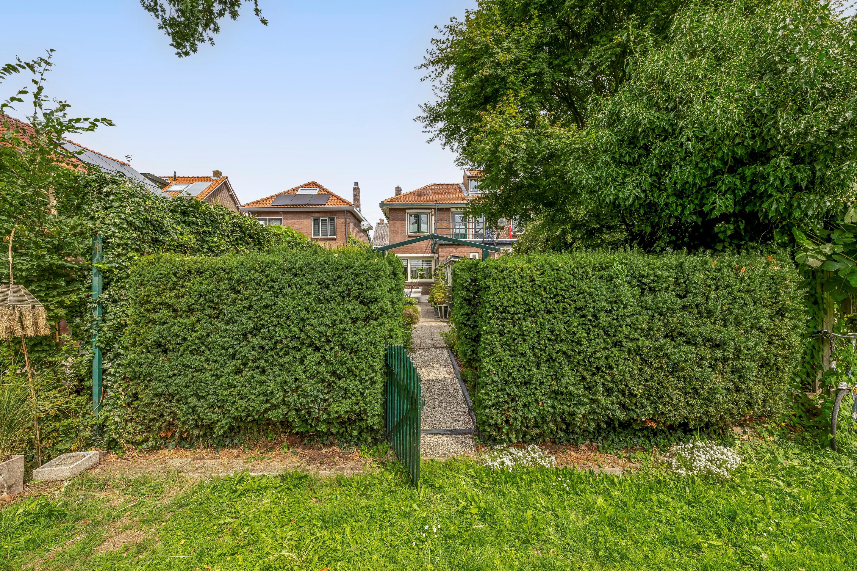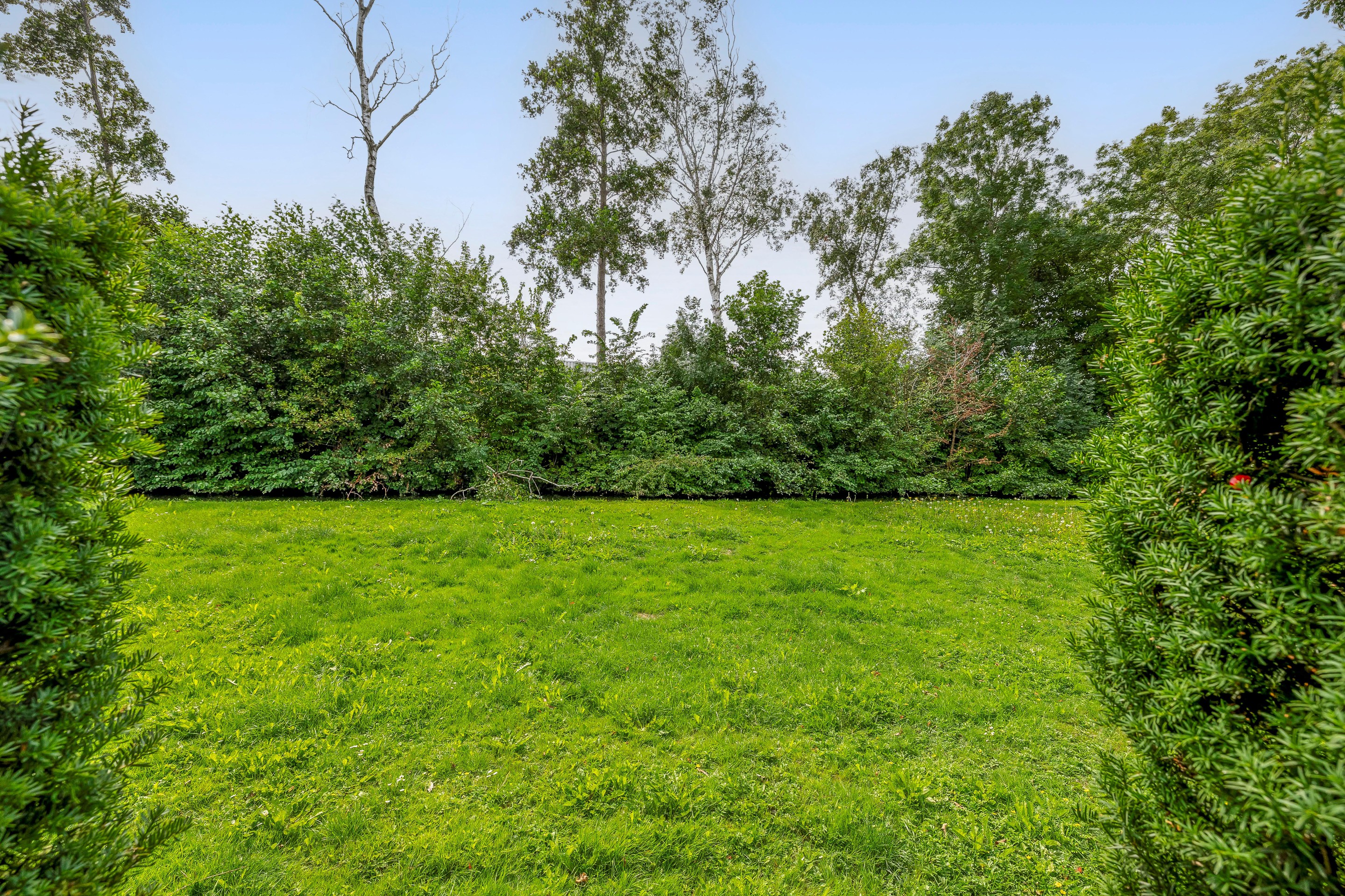 De diepe achtertuin is gelegen op het zuiden, waardoor u de hele dag van de zon kunt genieten. Het is een heerlijke plek om te ontspannen en grenst direct aan een groot grasveld en een speelterrein. Via het zijpad is er een poort die toegang biedt tot de straat aan de voorzijde.