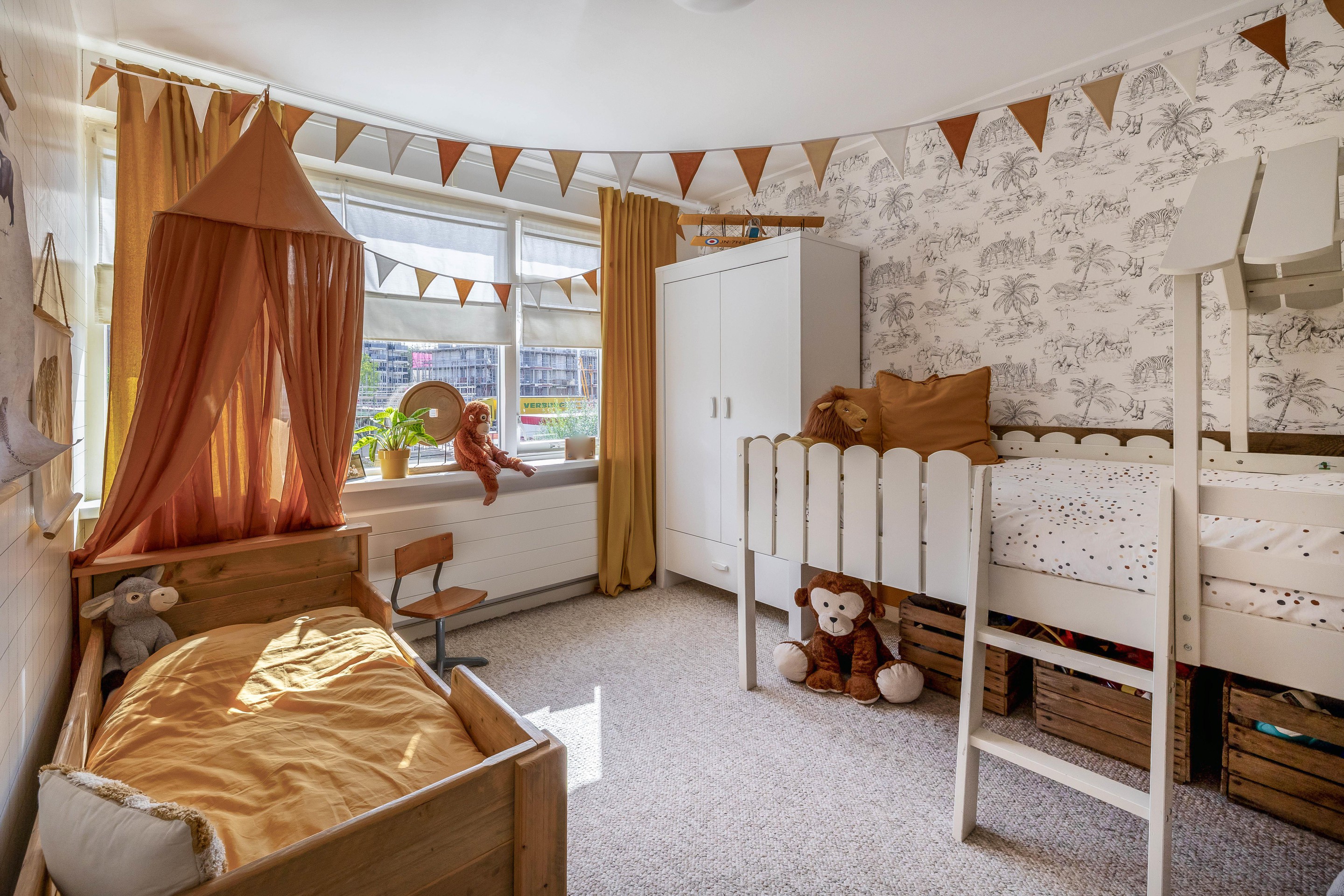 Ook de zolder is niet overgeslagen en tegenwoordig voorzien van een dakkapel, twee slaapkamers en een ruime voorzolder met de aansluitingen voor de zonnepanelen, wasmachine en droger.