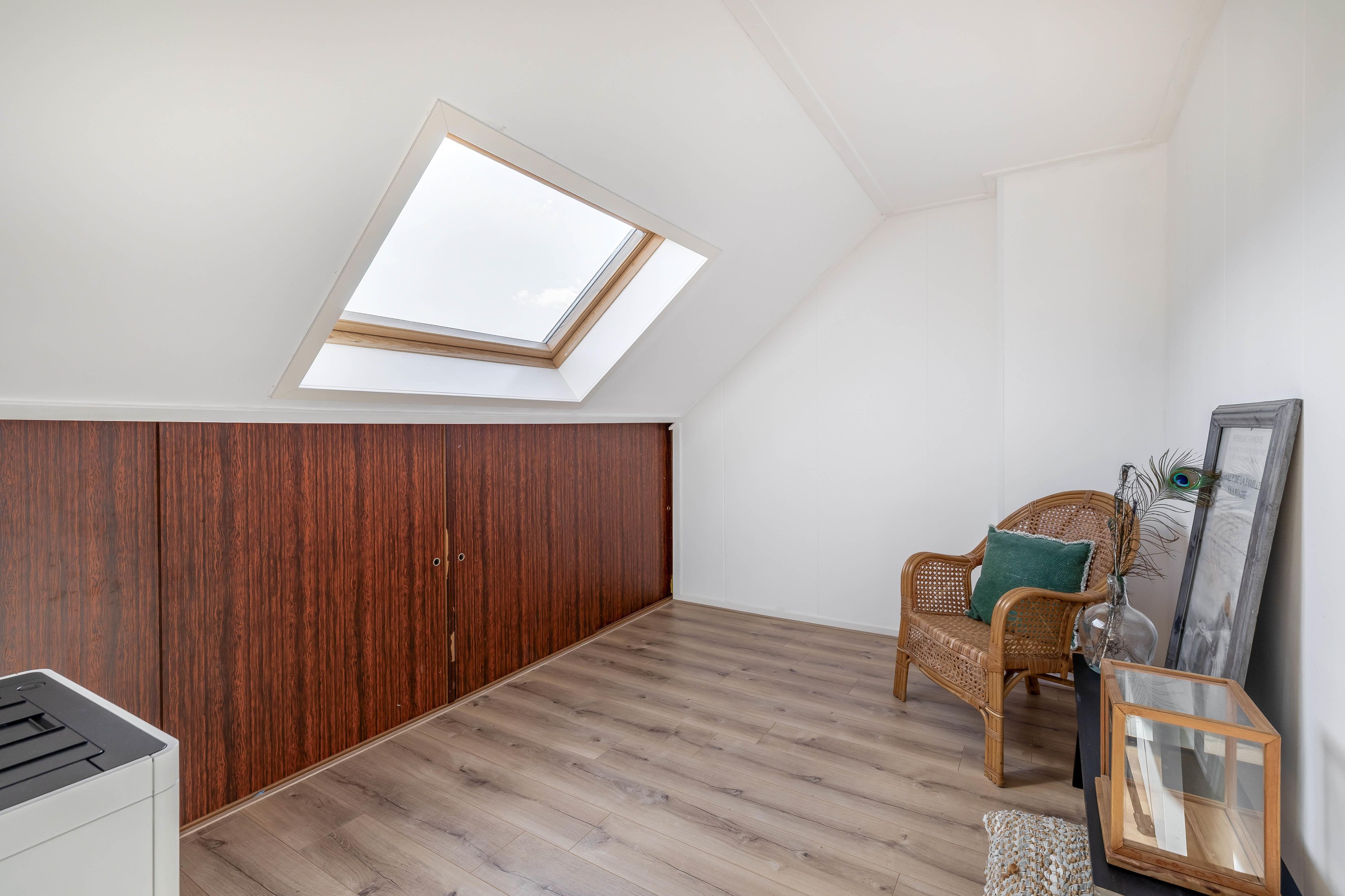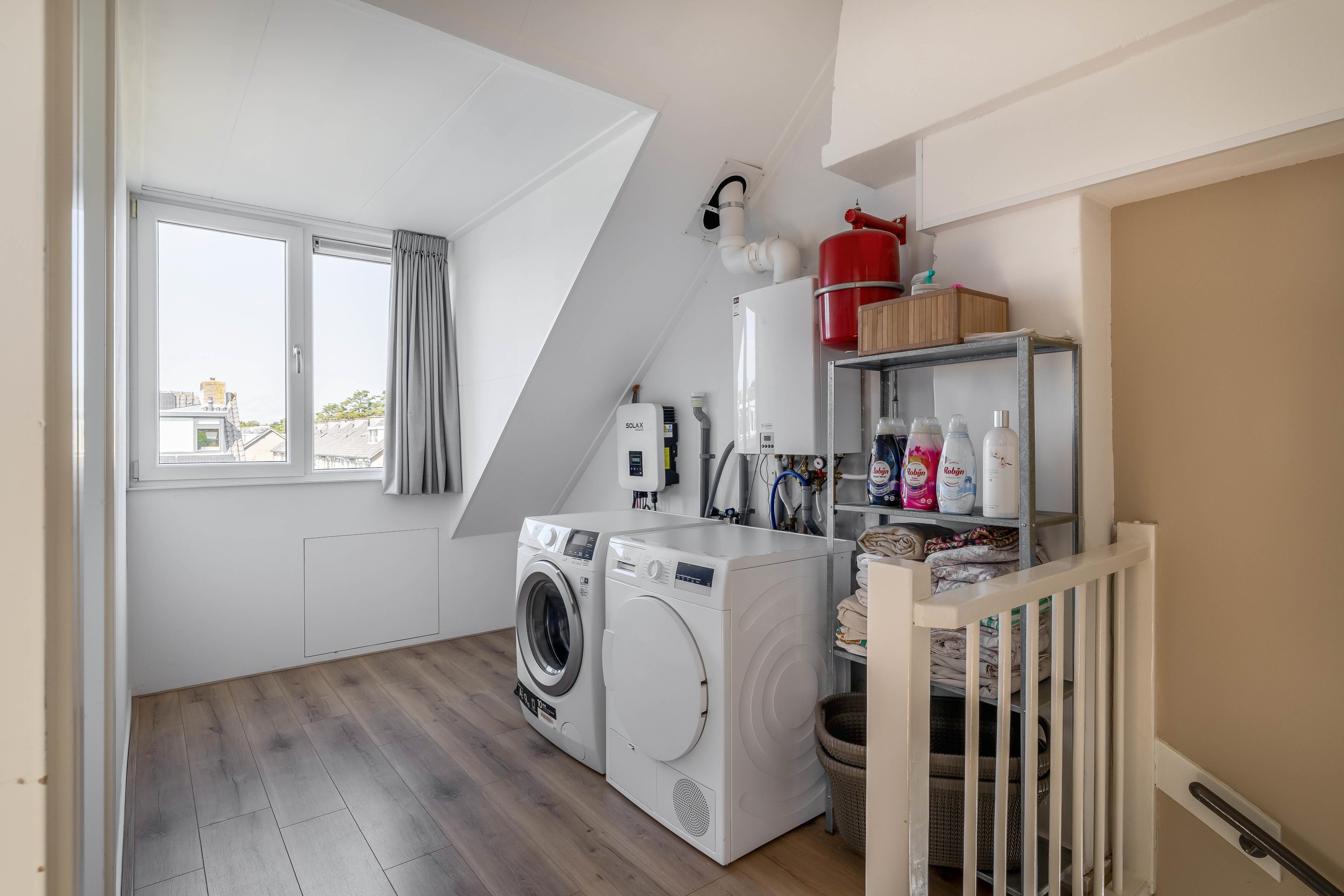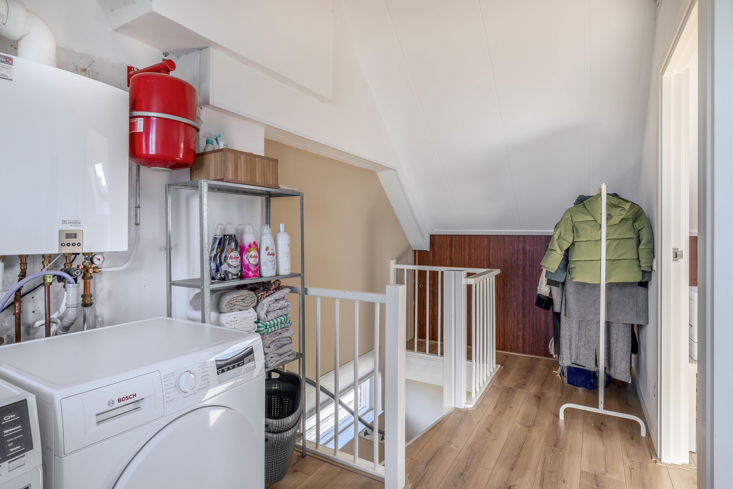 Overloop met wasruimte (aansluitingen voor wasmachine/droger) en cv-opstelling (Remeha HR, bouwjaar 2020). Verder zijn er op deze verdieping twee ruime zolderkamers. De kamer aan de achterzijde heeft een kunststof dakkapel en de kamer aan de voorzijde beschikt over bergschotten onder de kap en een Velux-dakvenster. Ook deze verdieping is keurig afgewerkt.