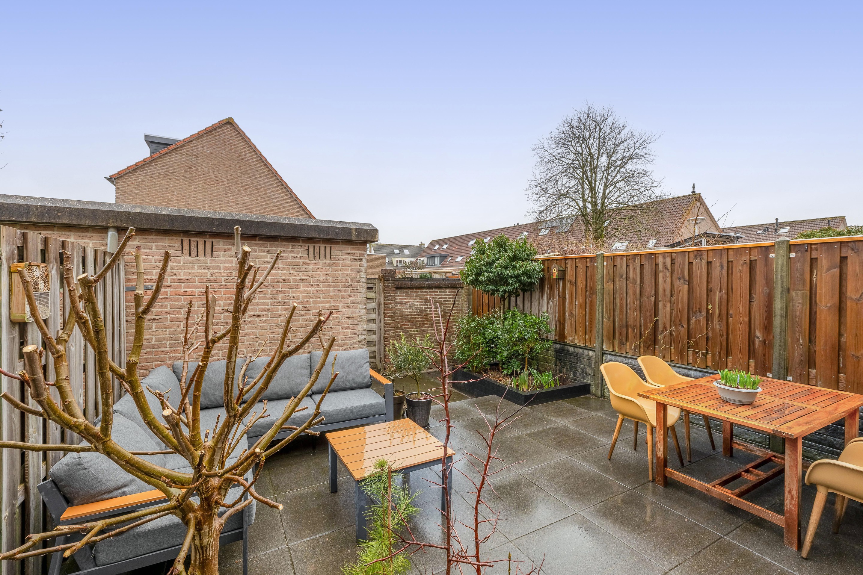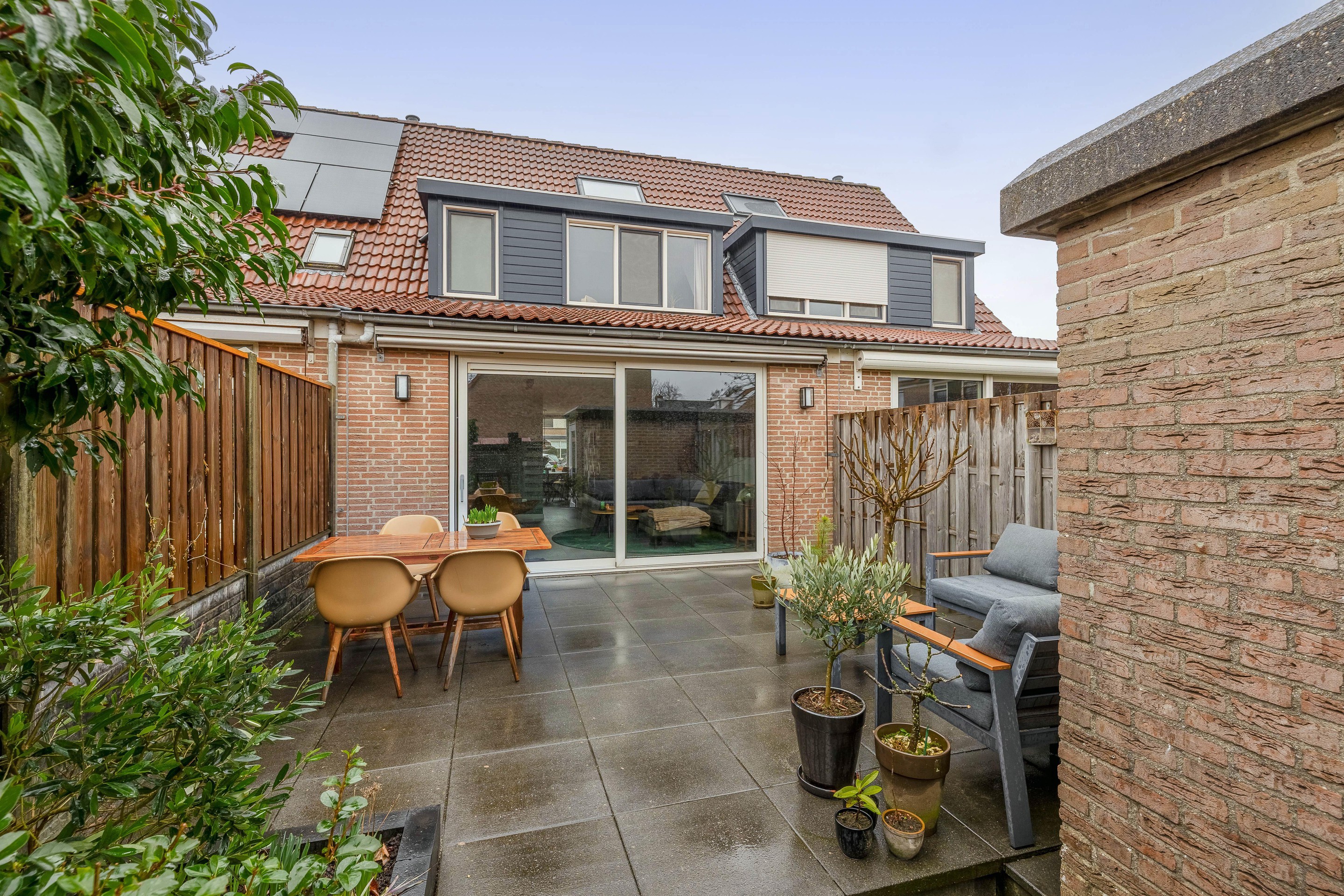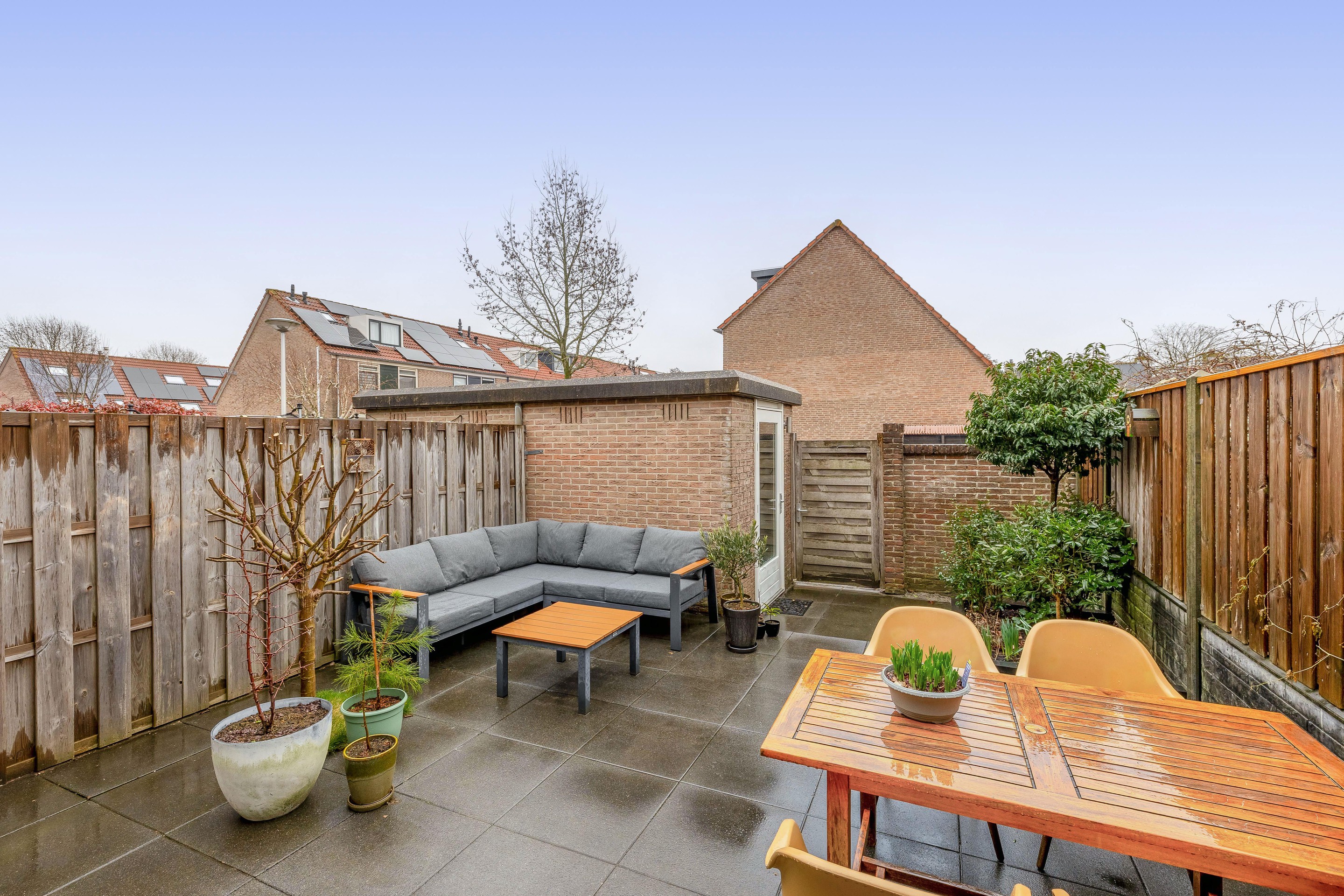 De achtertuin is een heerlijke plek om van het buitenleven te genieten. Ondanks de royale uitbouw van de woning is er een diepe tuin van ruim 7 meter overgebleven, die door de ligging op het zuidoosten baadt in het zonlicht. Vanaf de vroege ochtend kunt u hier een plekje in de zon vinden.