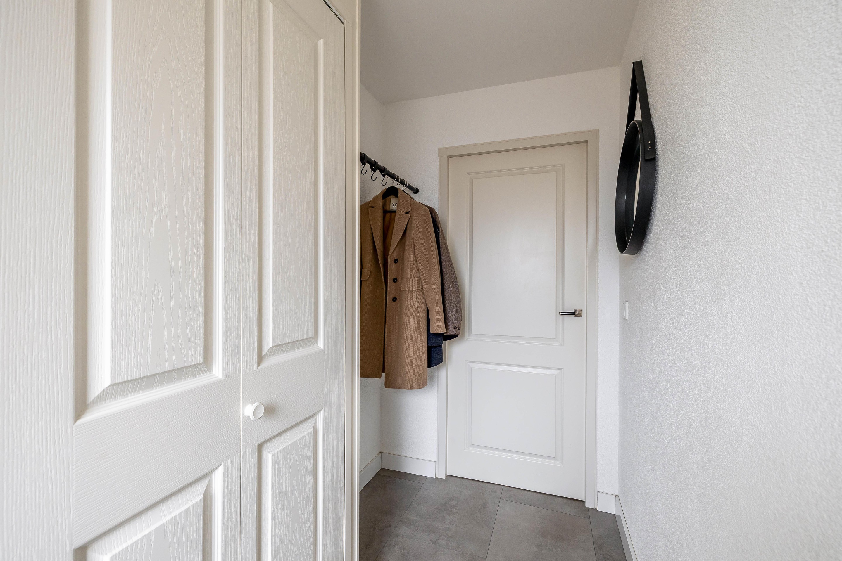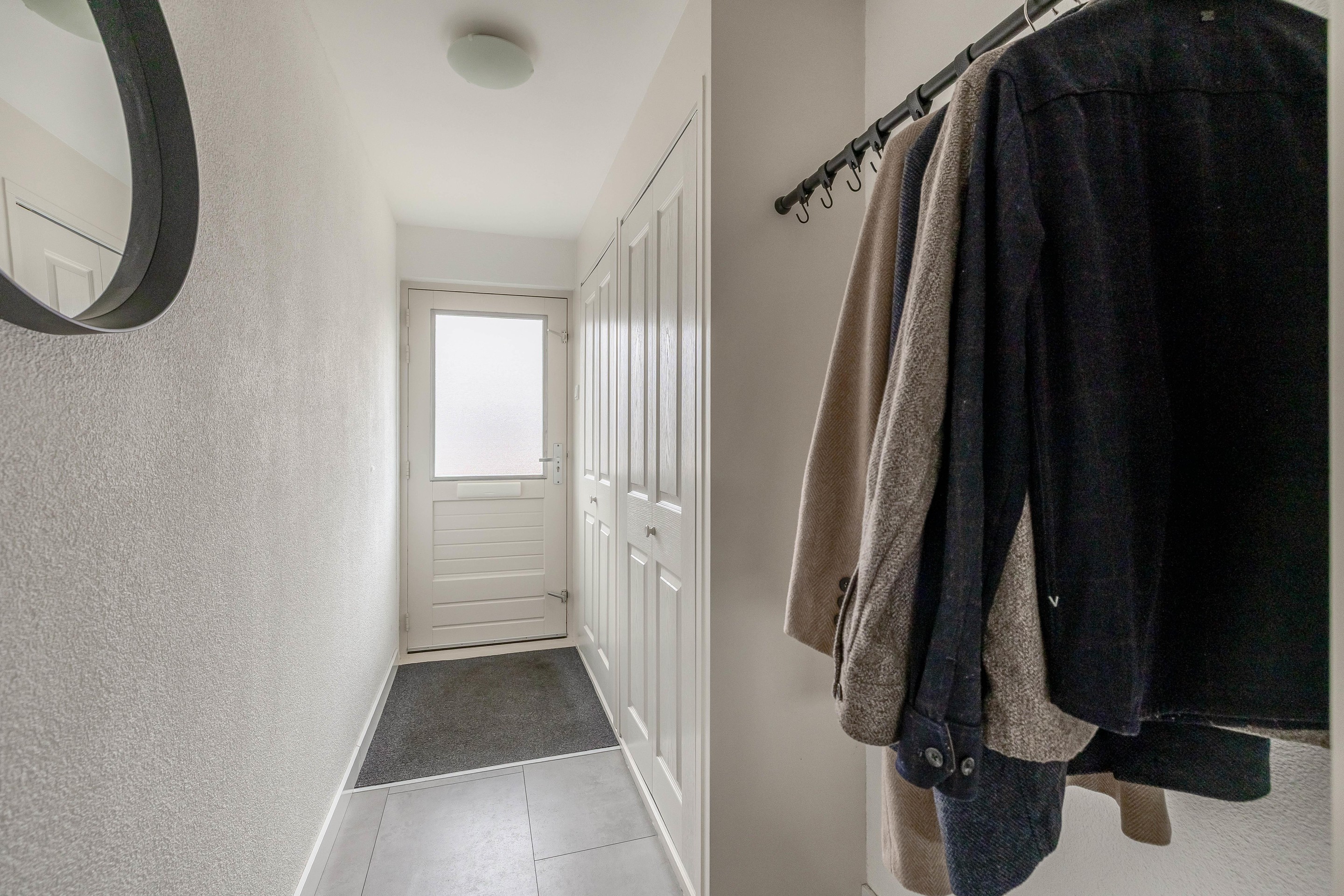 Bij binnenkomst in de woning komt u in de hal die praktisch is ingericht met een garderobe, de meterkast en een handige bergkast. Vanuit deze centrale entree loopt u door naar de keuken en de woonkamer.