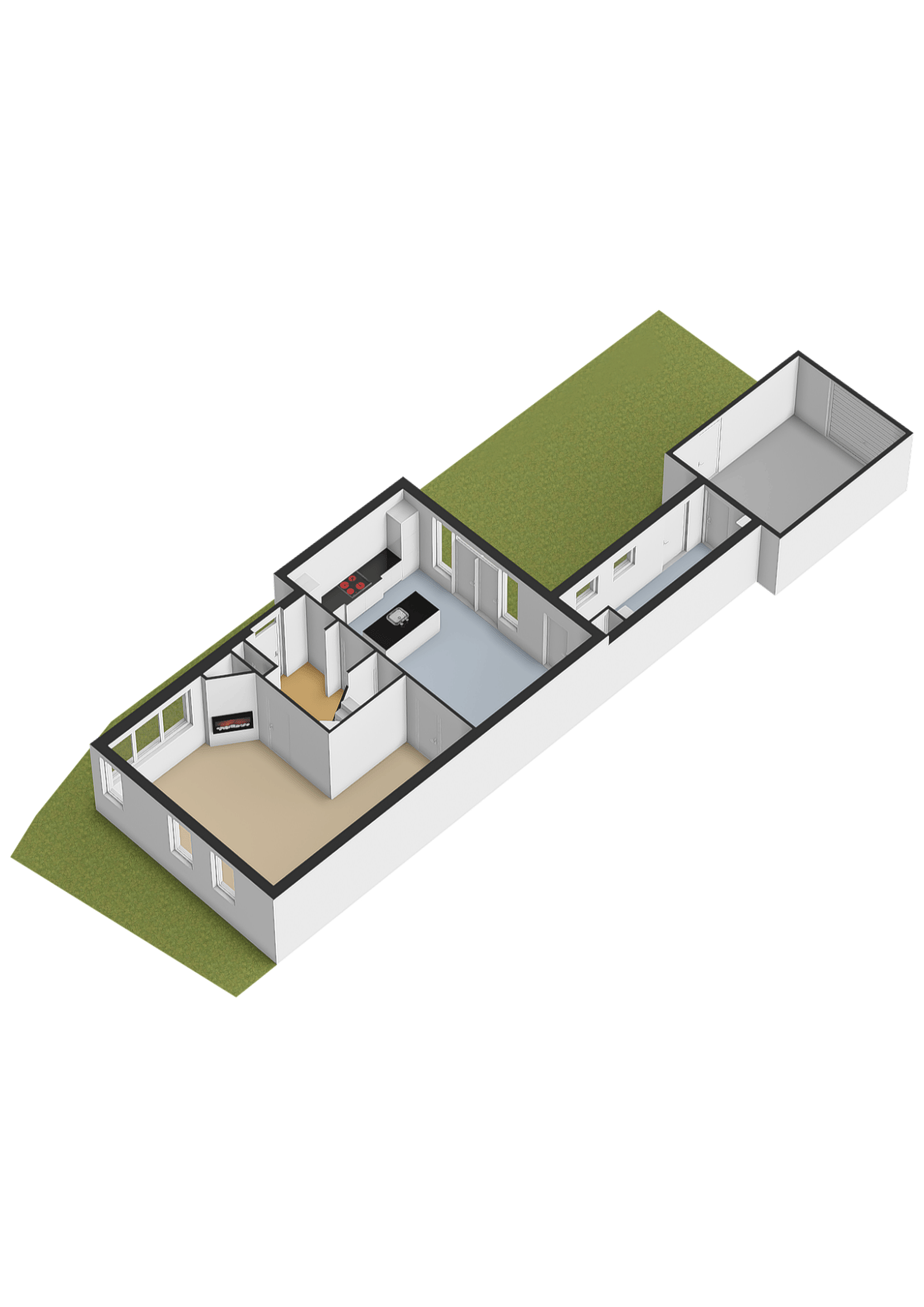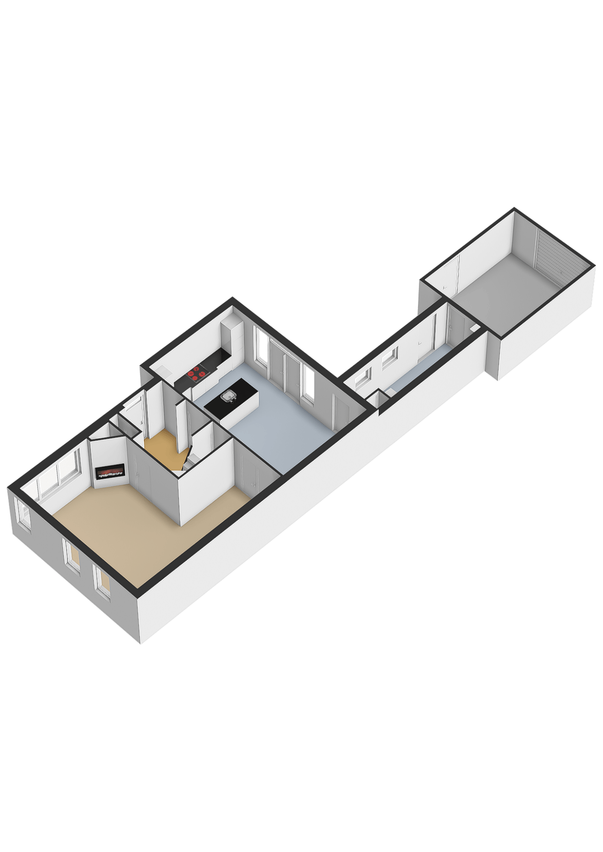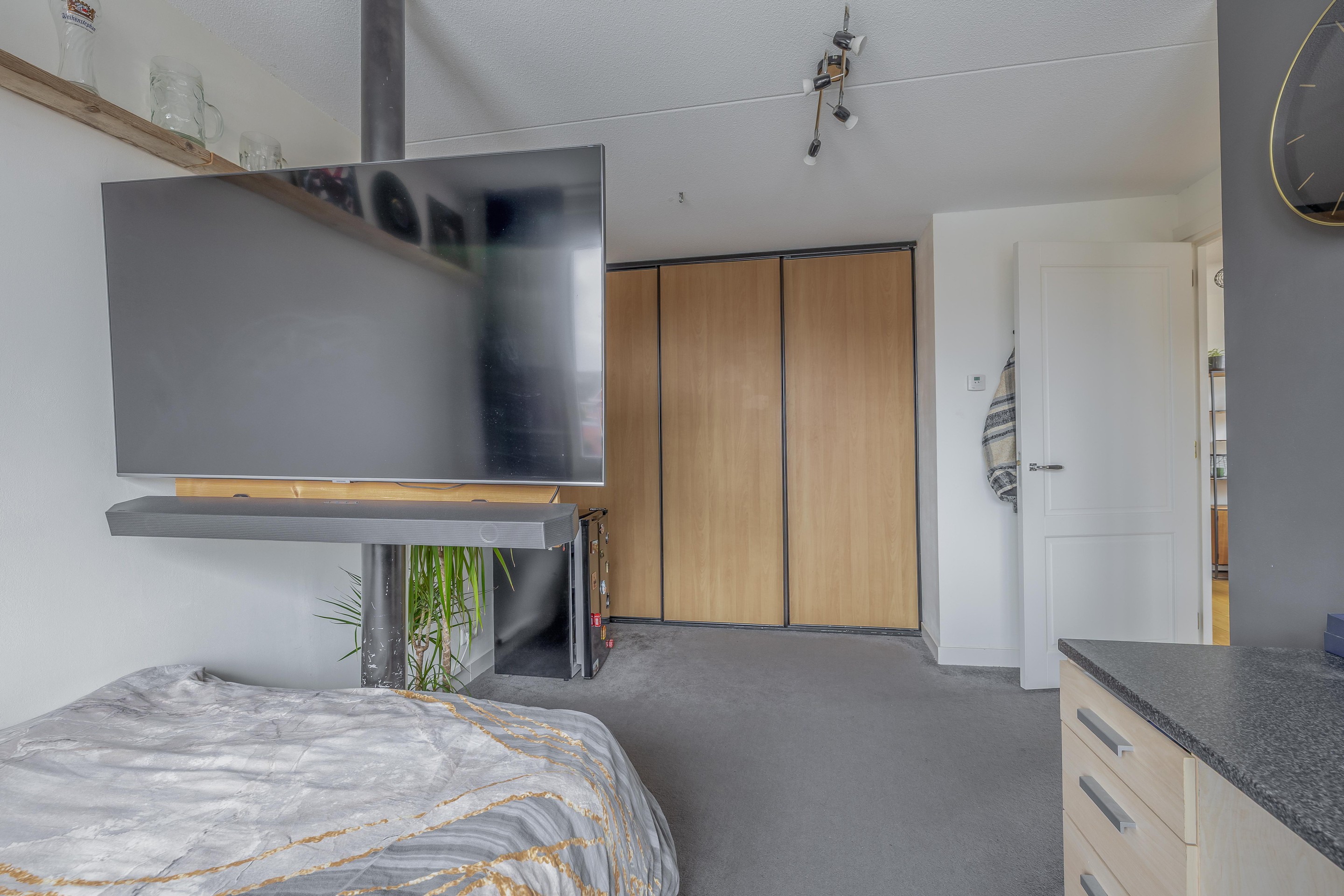 Een aparte ruimte voor de verwarmingsinstallatie en warmwatervoorziening is netjes achter een wand weggewerkt. Bij de bijzonderheden leest u hier meer over.