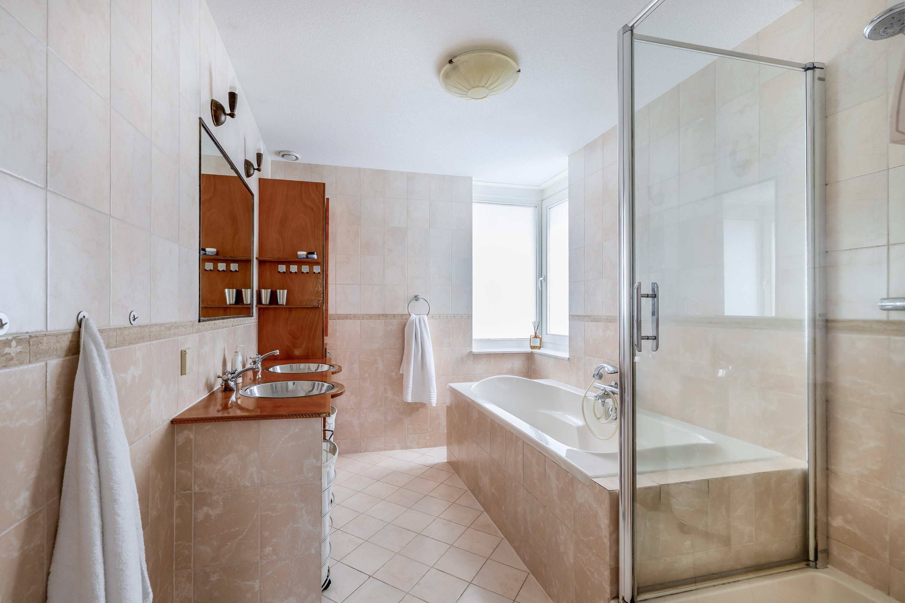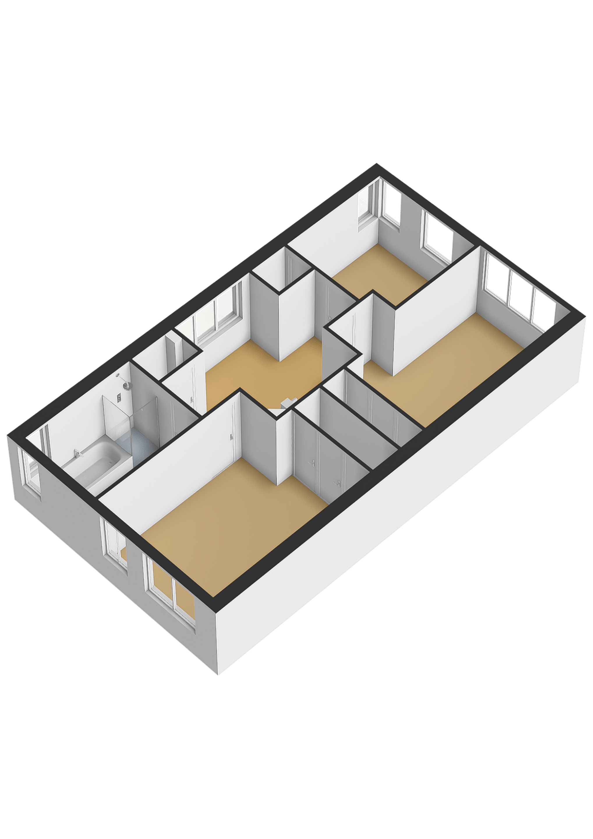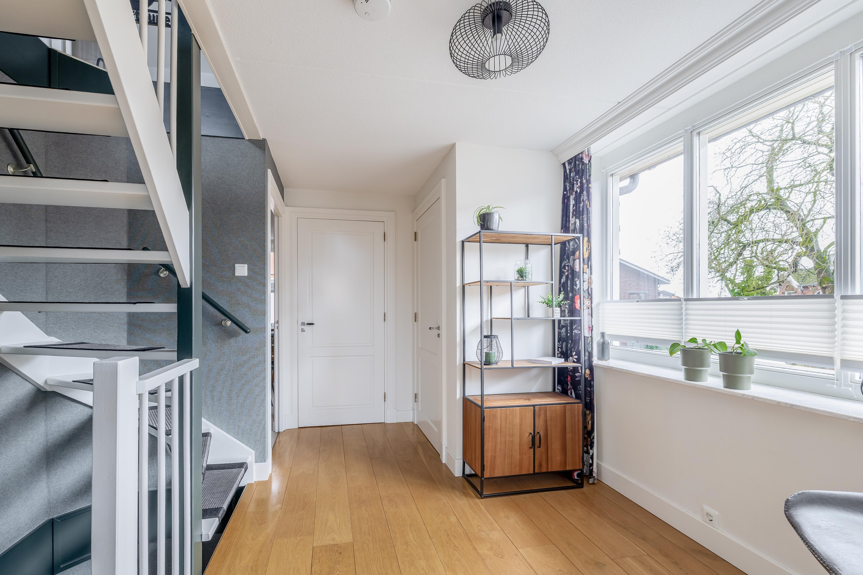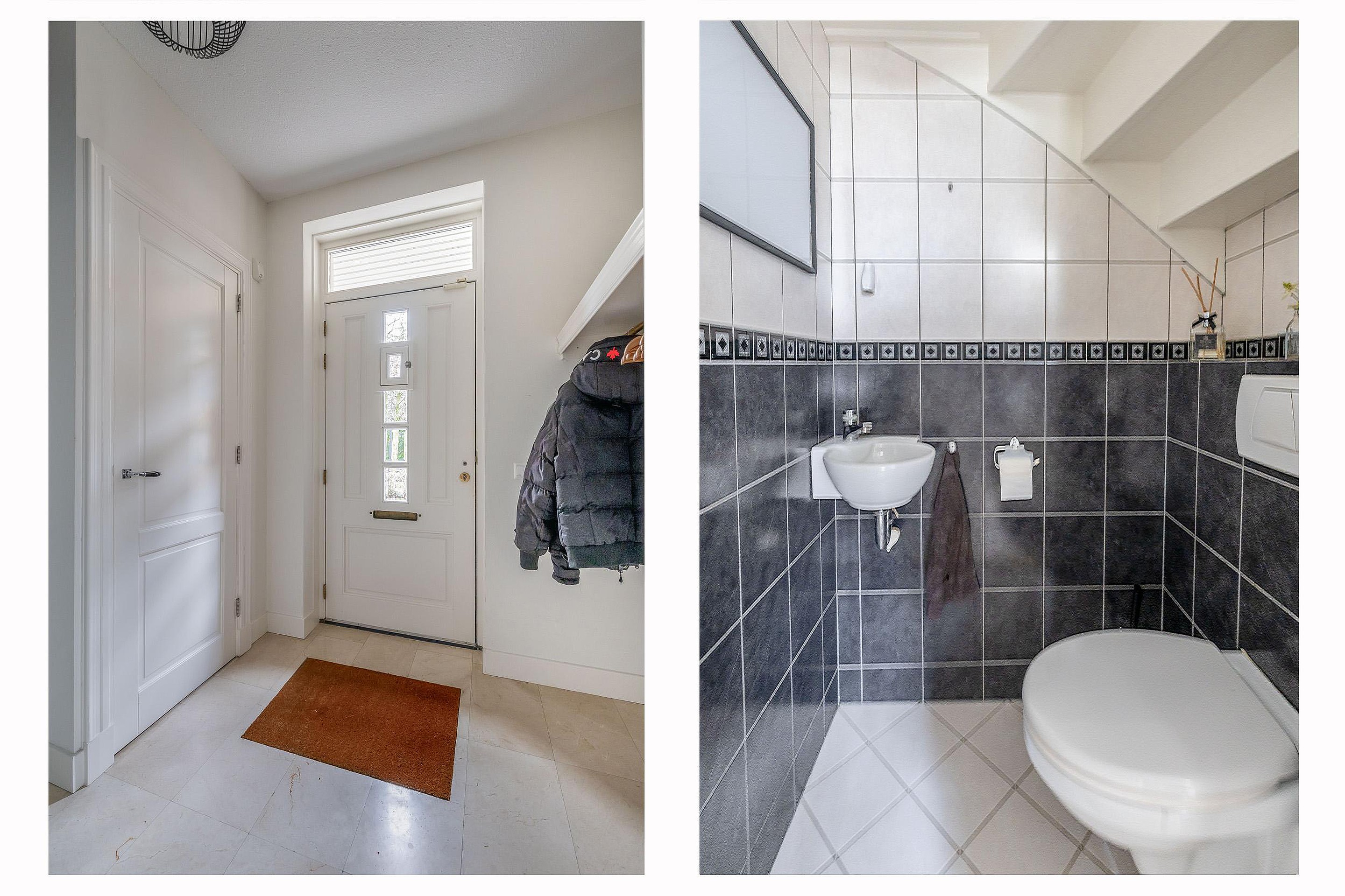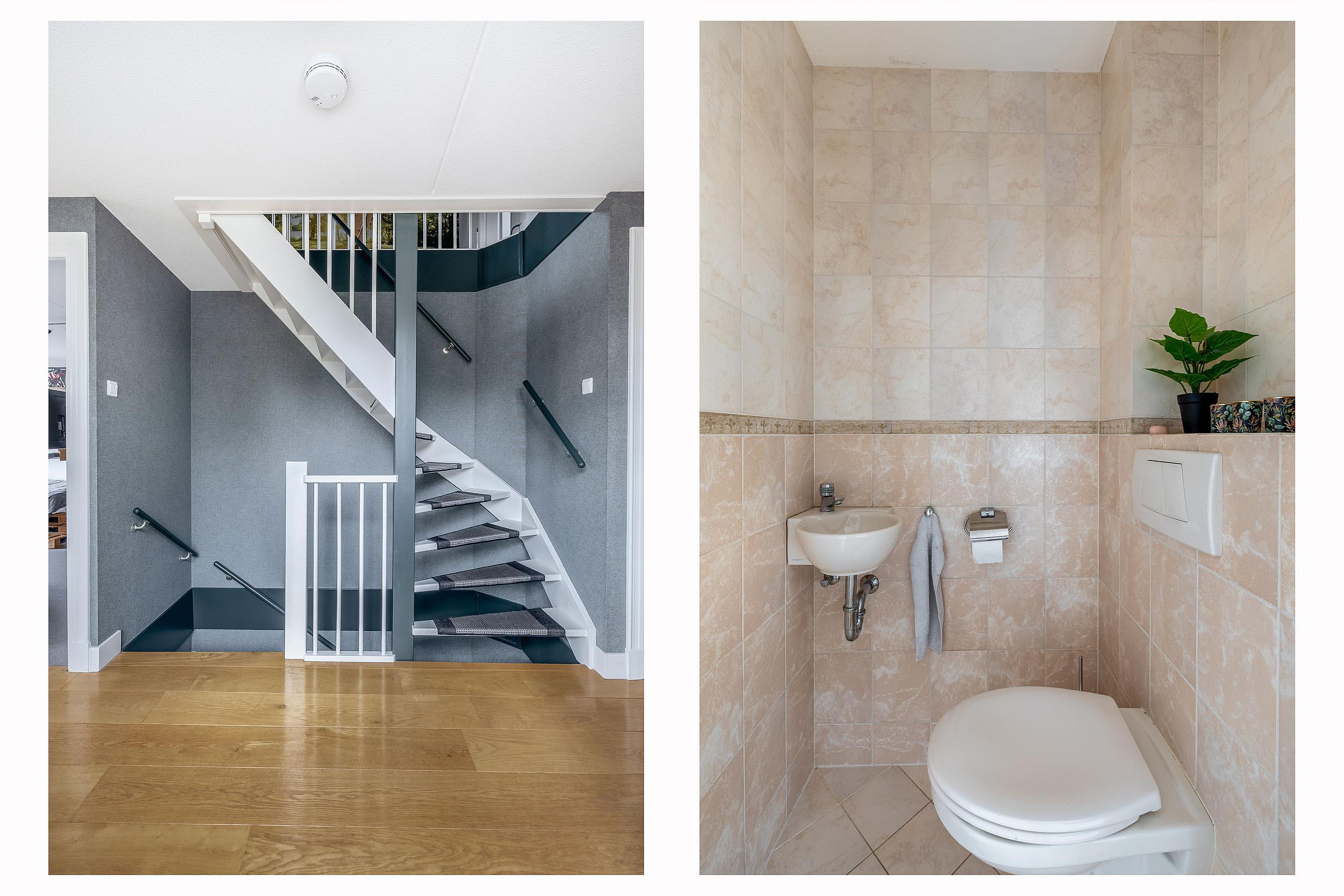 Eerste verdieping De overloop op de eerste verdieping is een lichte, aangename ruimte dankzij de gunstige lichtinval vanuit het zuiden. Aan de voorzijde van de woning bevindt zich de hoofdslaapkamer, die is uitgerust met een royale vaste kastenwand. Direct daarnaast ligt de badkamer, een volledig betegelde ruimte waar u de keuze heeft tussen een ontspannen bad of een snelle douche bij de dubbele wastafel. Het tweede toilet op deze verdieping is separaat gesitueerd, wat extra comfort biedt. Aan de rustige achterzijde van de woning zijn nog twee volwaardige slaapkamers gelegen.