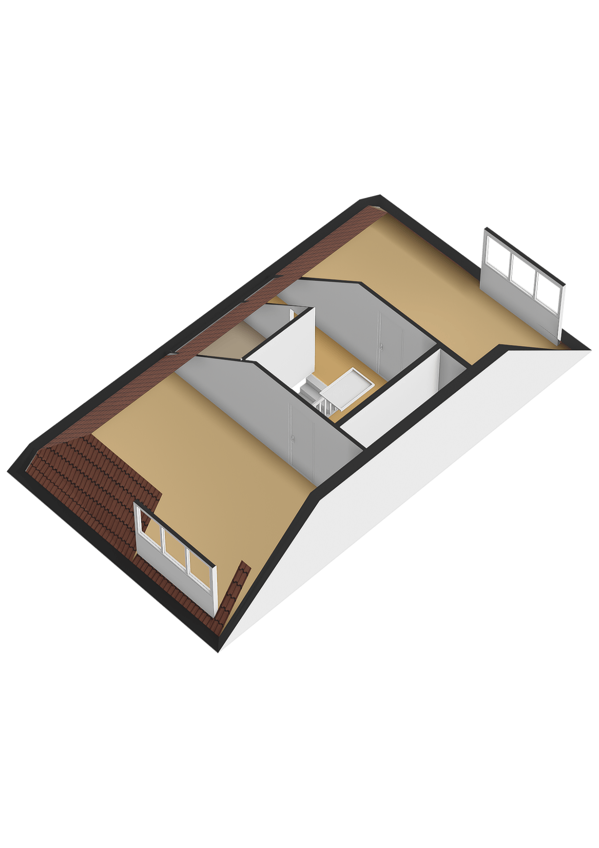 Tweede verdieping De vaste trap brengt u naar de tweede verdieping, waar de overloop direct verrast door de extra bergruimte achter de trap. Dankzij de dakkapellen aan zowel de voor- als achterzijde zijn hier twee zeer ruime slaapkamers gecreëerd. Onder de schuine kap is bovendien slim gebruikgemaakt van de ruimte met extra knieschotten voor opslag. Voor de spullen die u niet dagelijks nodig heeft, biedt de bovengelegen bergvliering tot slot nog de nodige extra vierkante meters aan bergruimte.