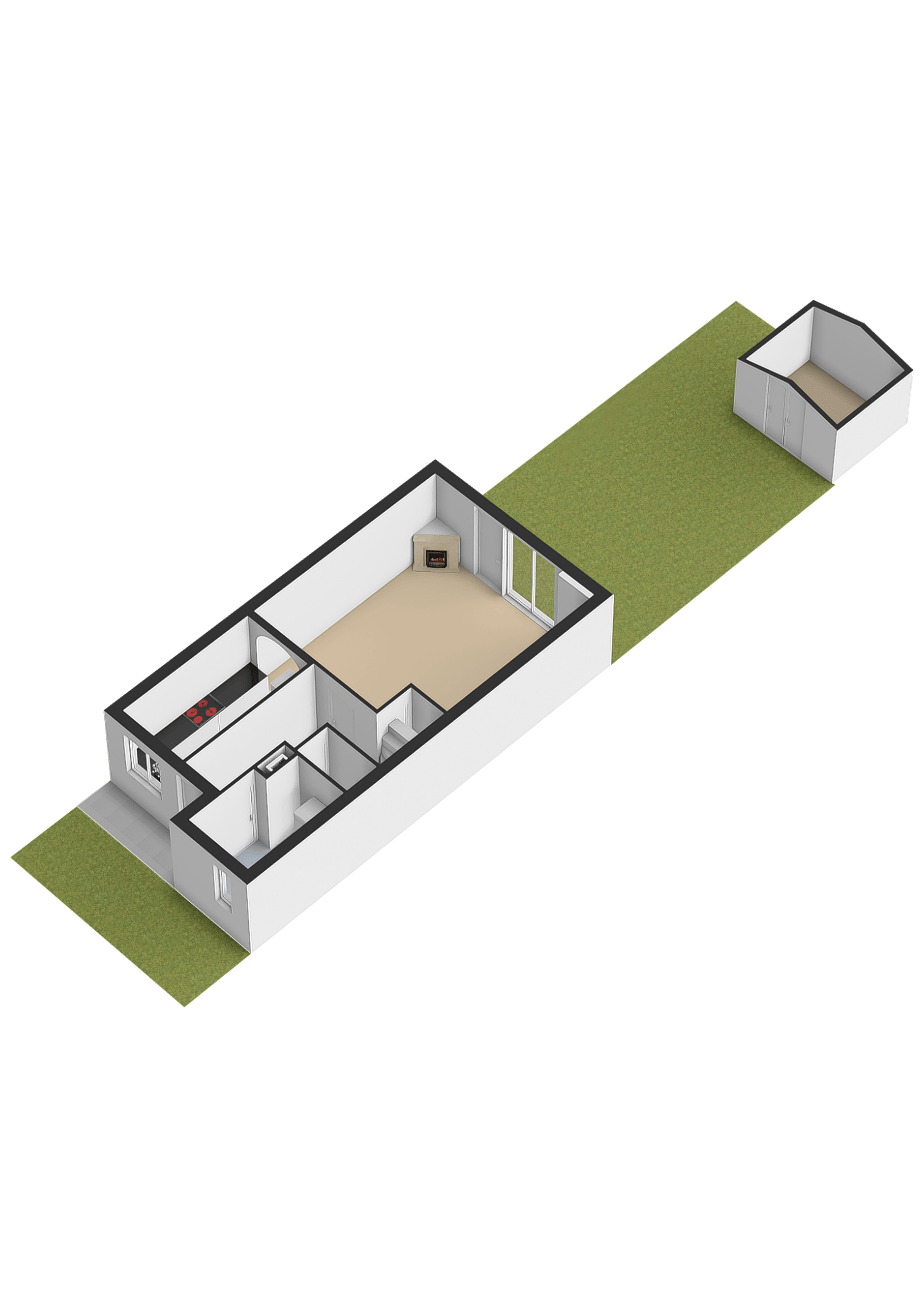 Berging achtertuin 2,29 x 2,75m ( 6,40m2)