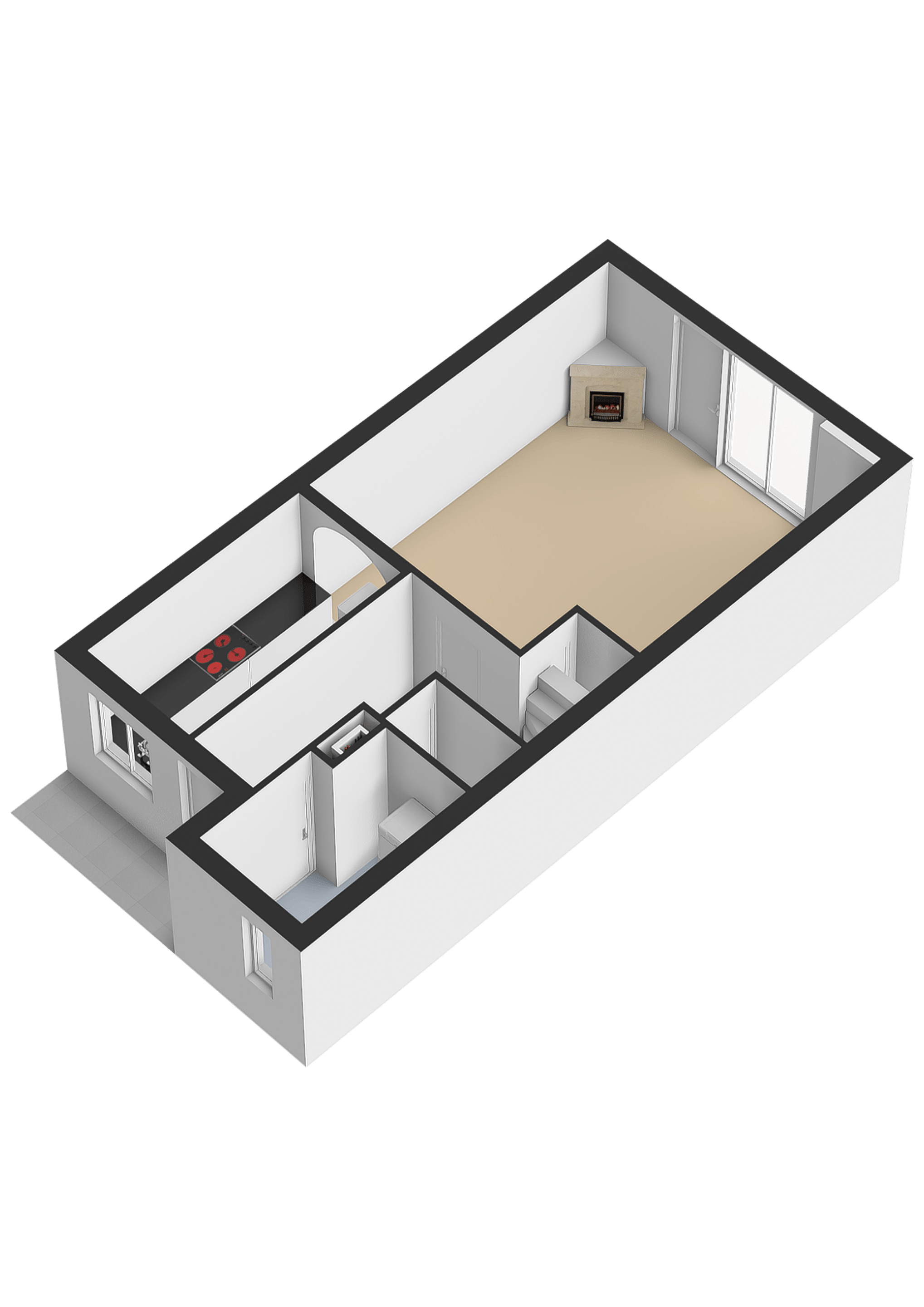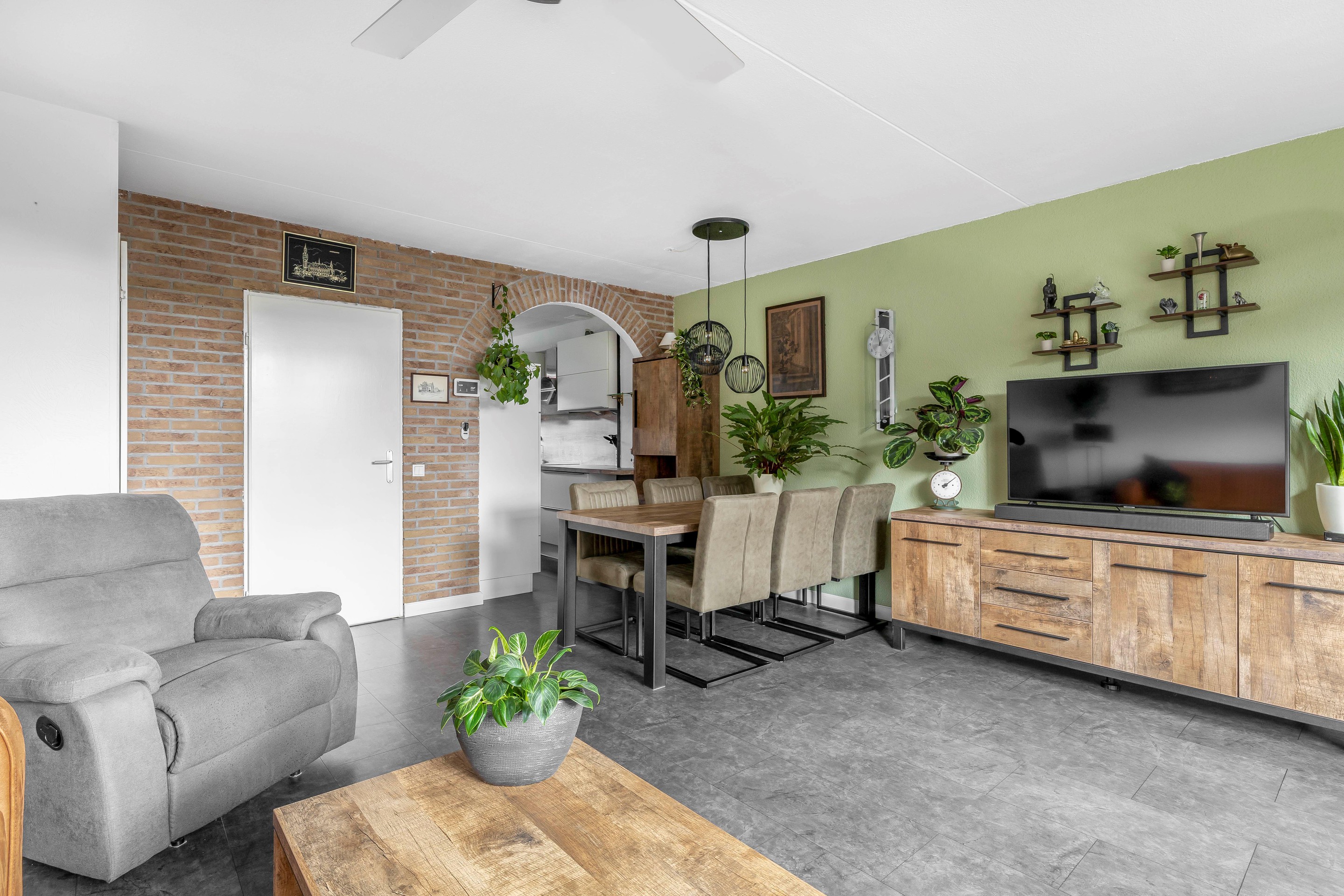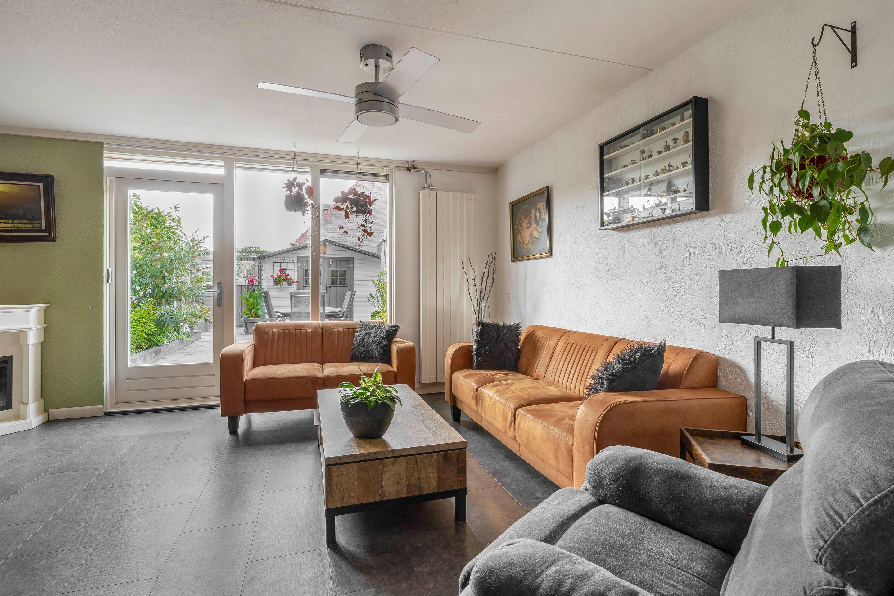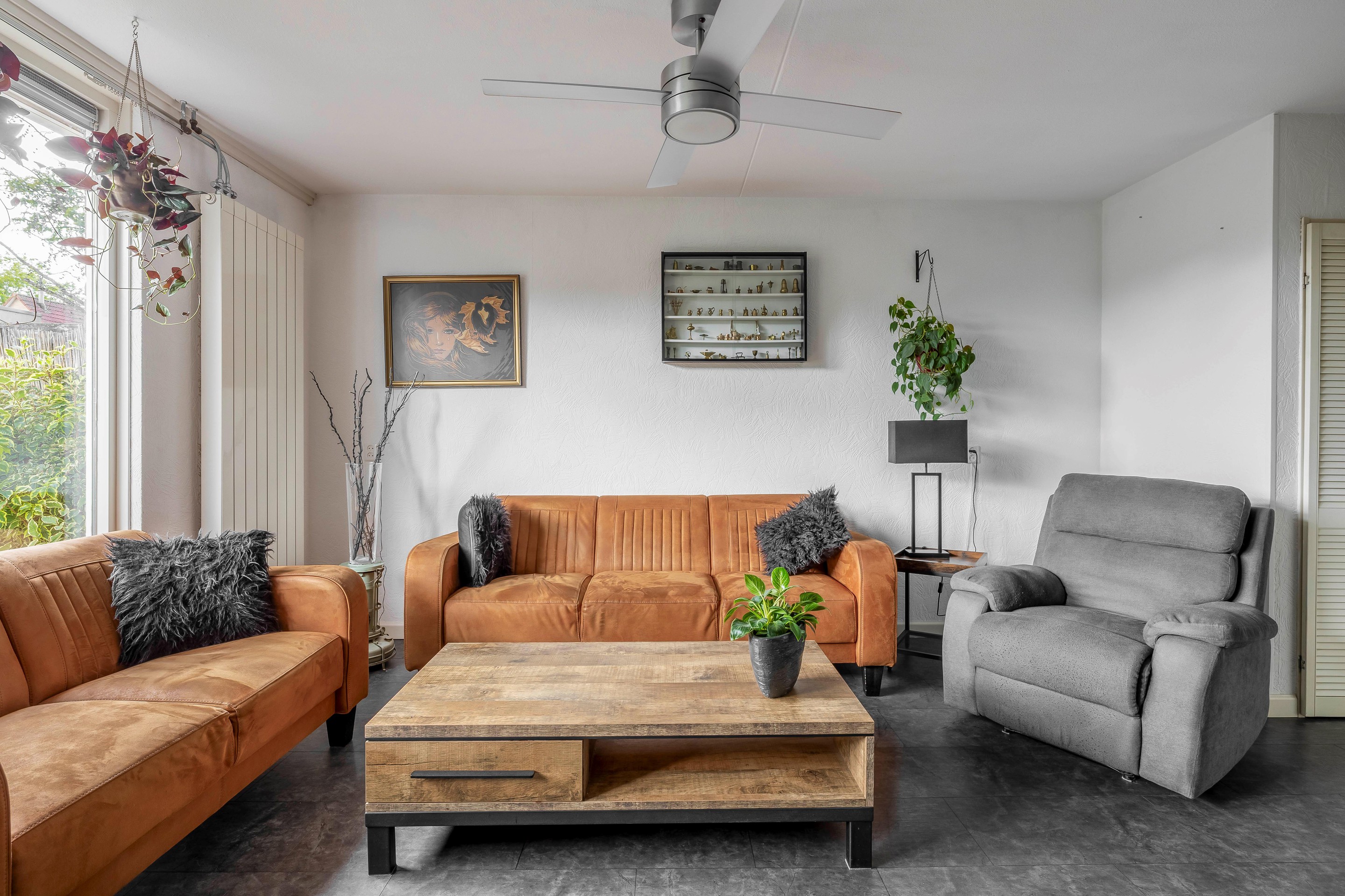 De woonkamer heeft een oppervlak van circa 27,00m2. Er is veel lichtinval door het grote raam dat tot op de vloer doorloopt. In een hoek van de woonkamer bevindt zich een trapkast.