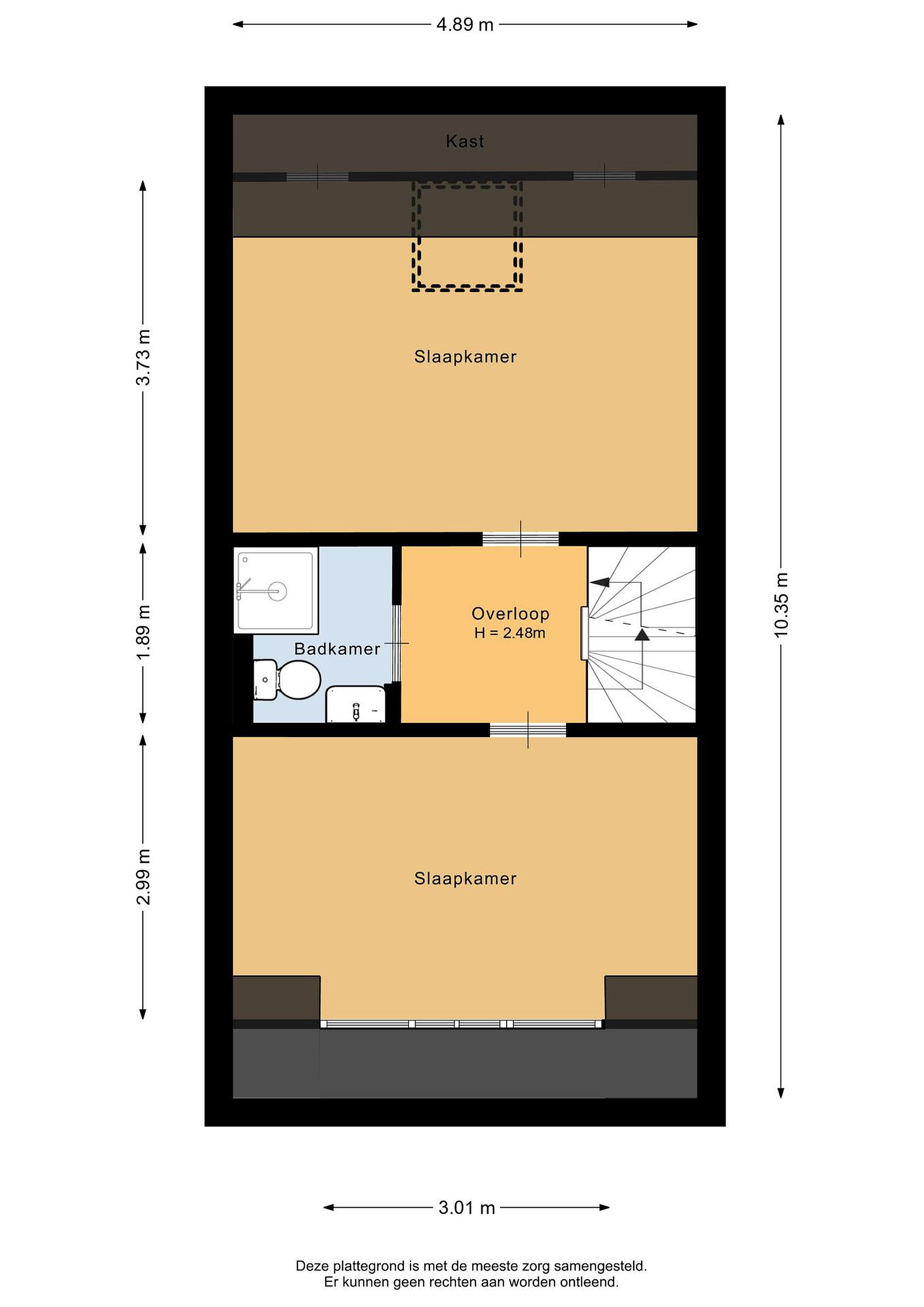 Slaapkamer 2 2,99 x 4,89m ( 13,00m2)