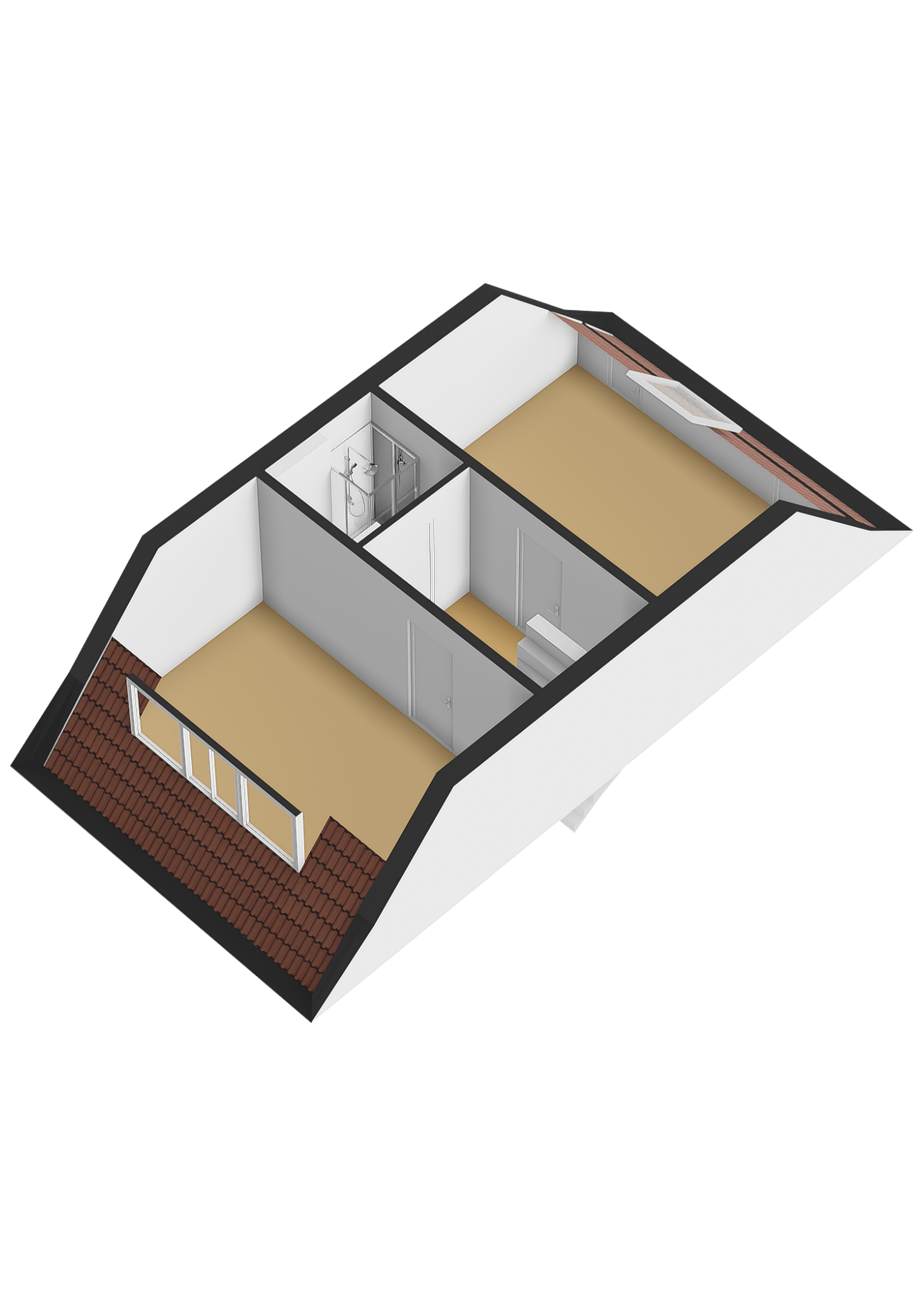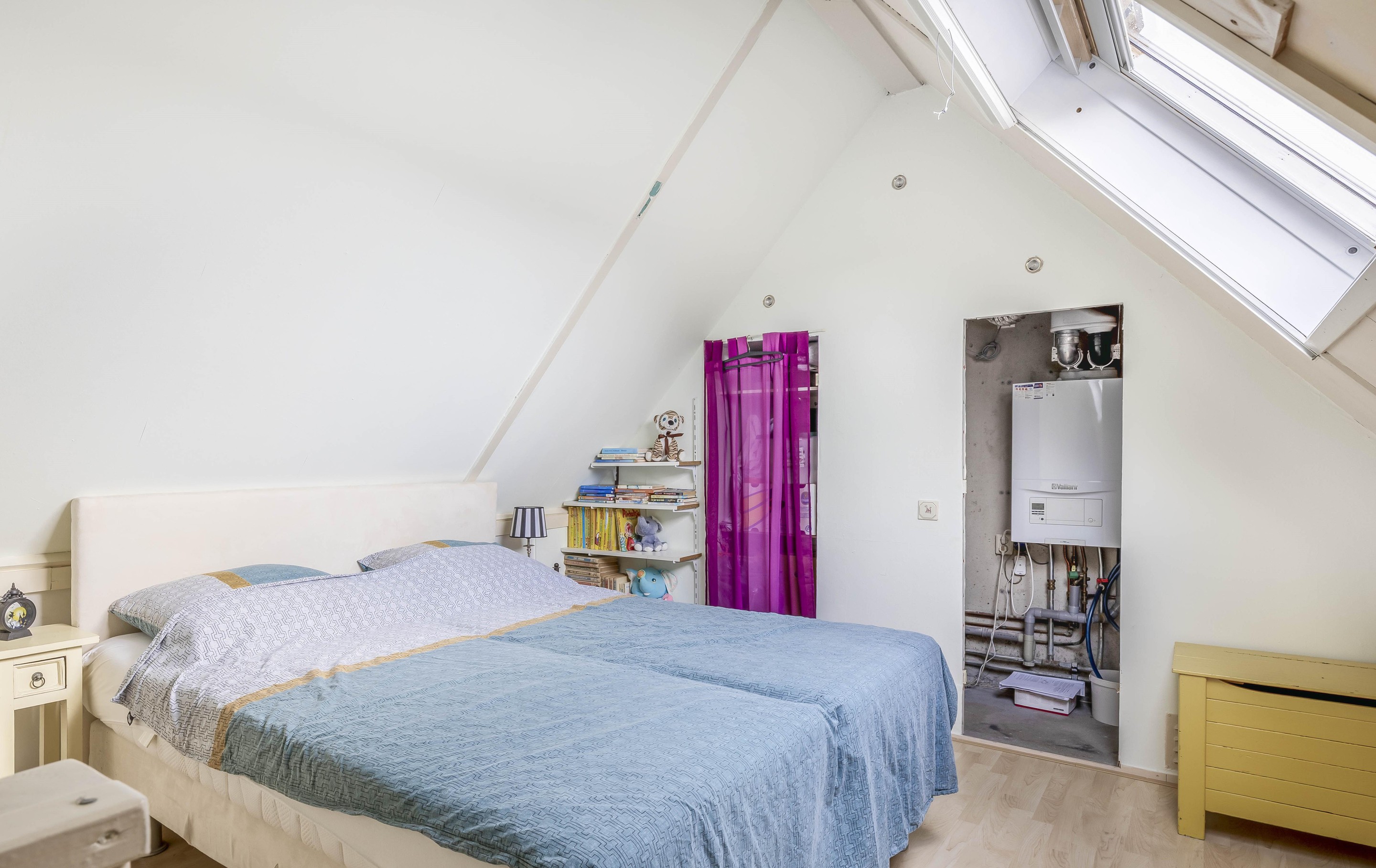Tweede verdieping De tweede verdieping is momenteel ingericht als open zolderruimte. Indien gewenst is het mogelijk om hier een slaapkamer te realiseren. Lichtinval is er via een groot dakraam. Op deze tweede woonlaag bevindt zich de CV-combiketel (2015) en de ventilatie-unit. Langs de schuine kanten zijn gedeeltelijk knieschotten gemaakt.