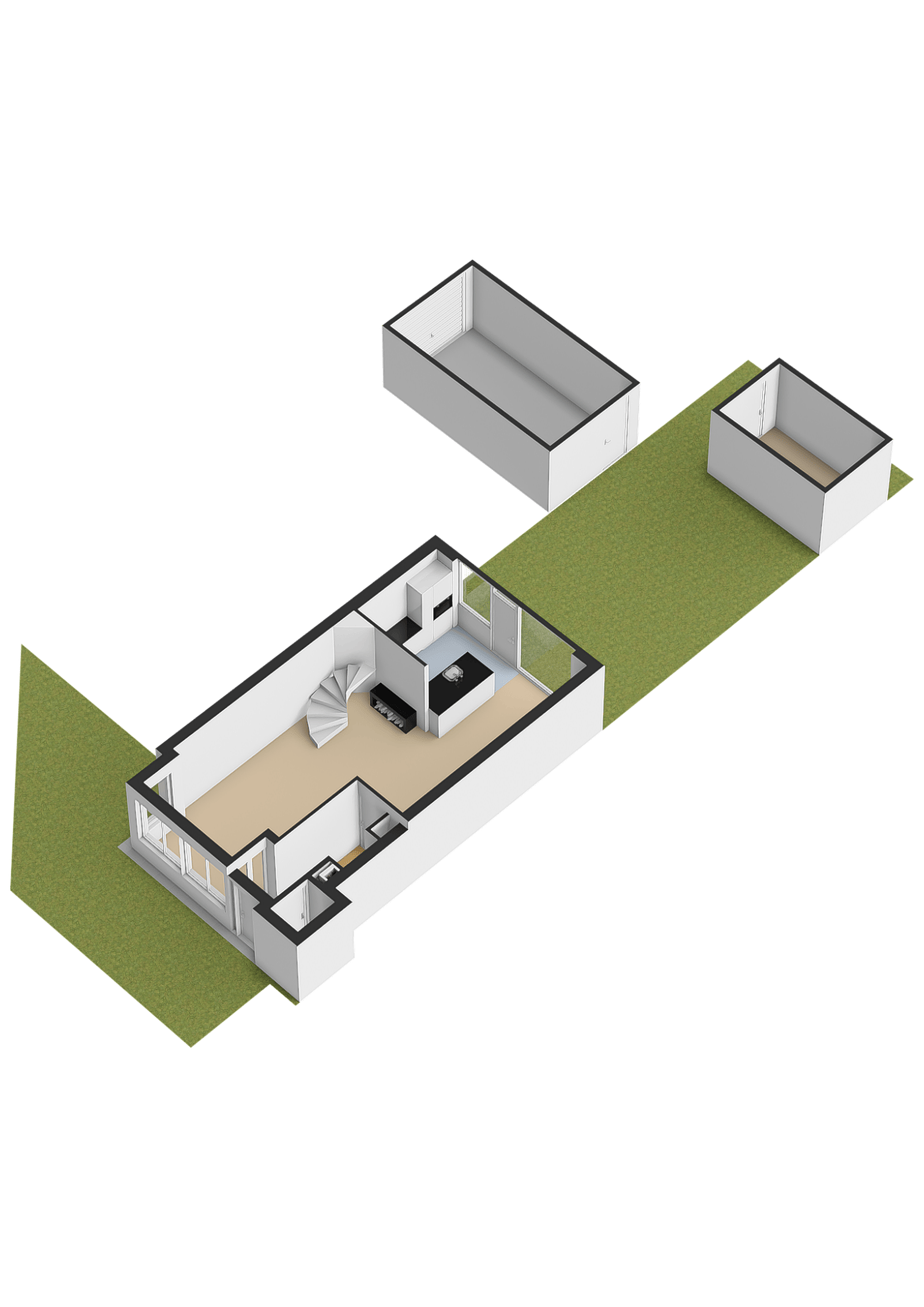 Berging in tuin 3,24 x 2,15m ( 7,75m2)