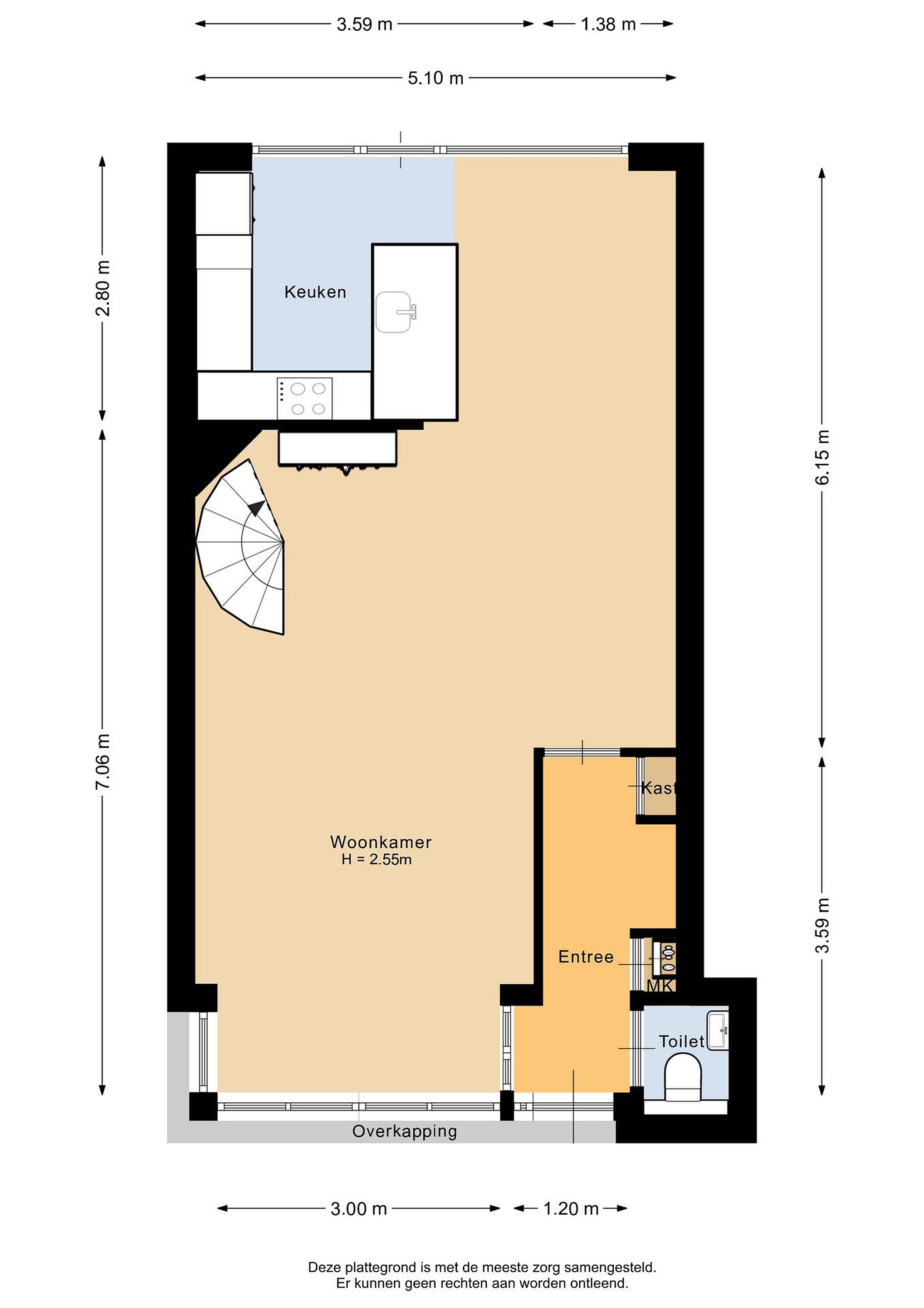 Deze vrijblijvende objectinformatie is met de meeste zorg samengesteld, maar voor de juistheid daarvan kunnen wij geen aansprakelijkheid aanvaarden. Ook kan aan de vermelde gegevens geen enkel recht worden ontleend. Alle informatie is enkel en alleen bedoeld voor de presentatie van het object en niet meer dan een uitnodiging tot het doen van een bod. Eventueel bijgevoegde plattegronden zijn slechts indicatief.