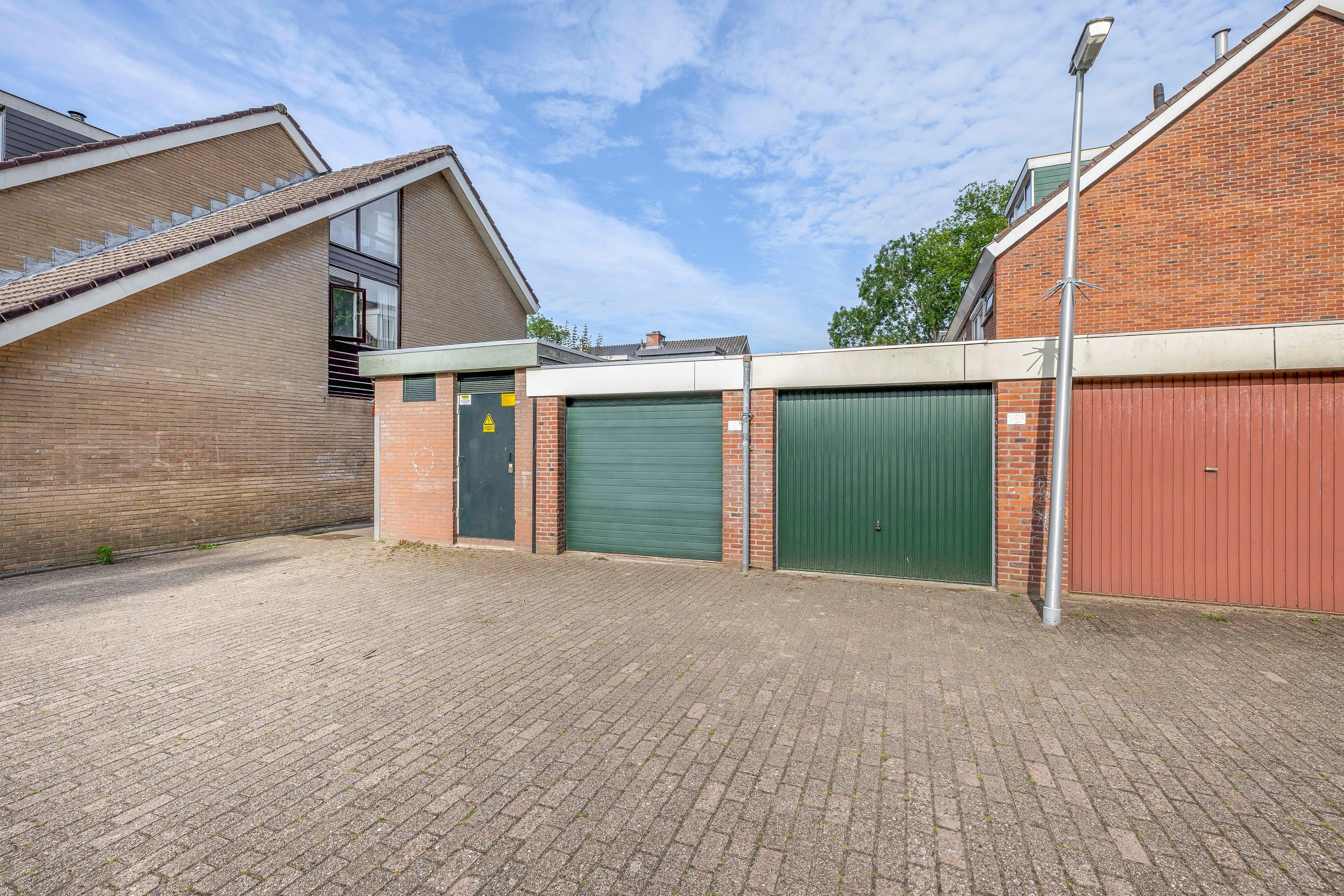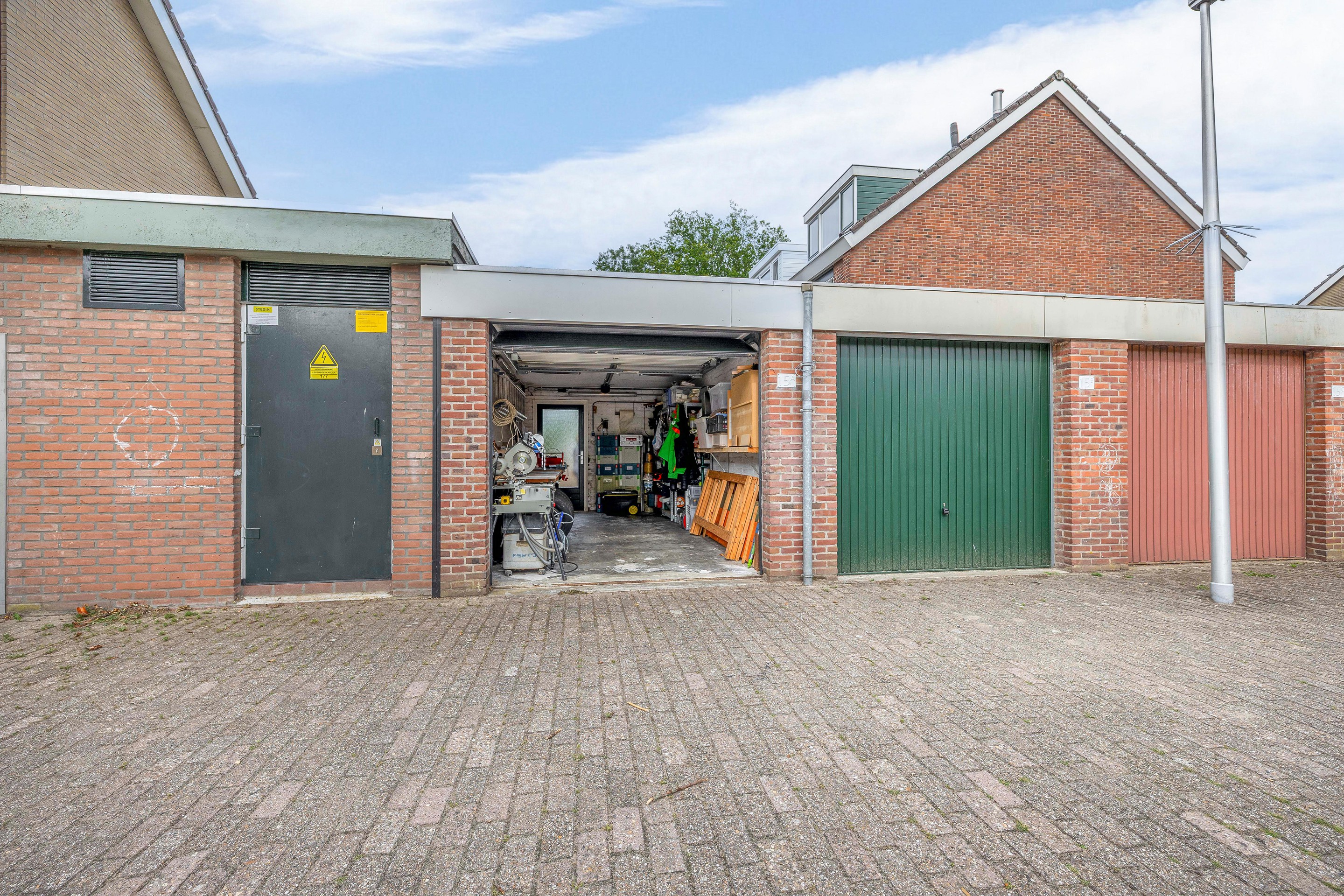 De garage die bij de woning hoort is rechtstreeks vanuit de tuin bereikbaar via een deur. Deze garage is eveneens voorzien van elektra en er is een elektrisch bediende sectionaaldeur geplaatst voor extra gebruiksgemak.