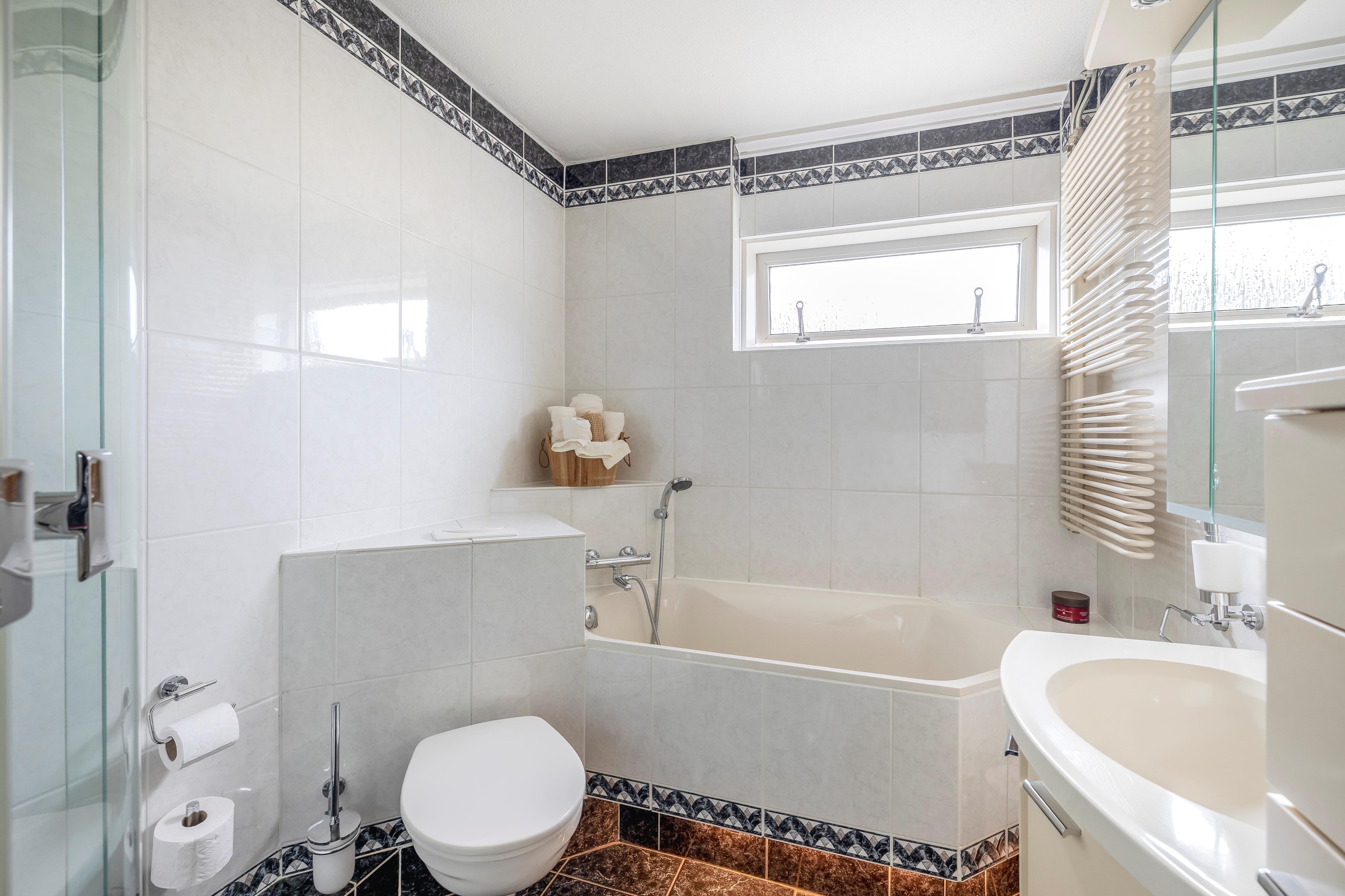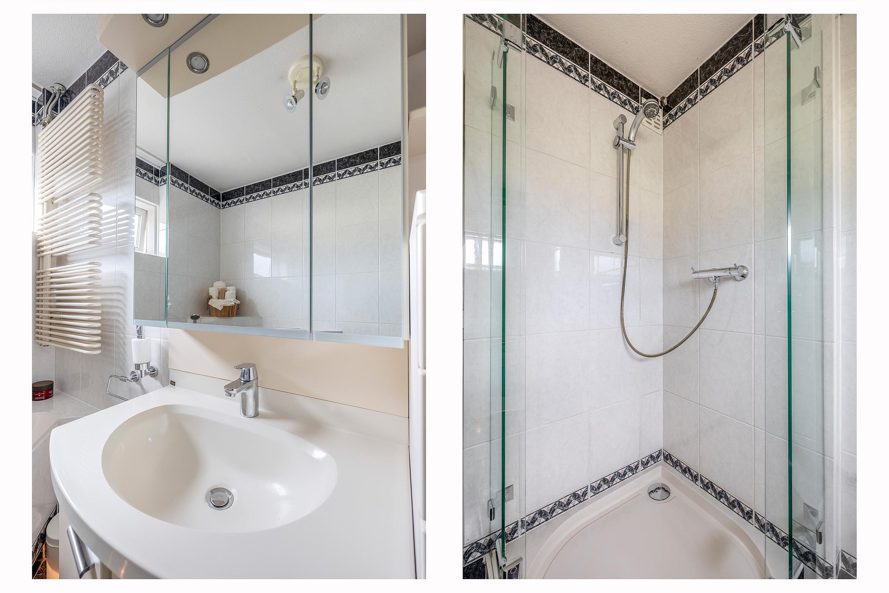 De badkamer is heerlijk ruim. Spetteren in het ligbad, snel douchen in de cabine, tandenpoetsen bij de wastafel: zelfs met z’n allen kun je hier perfect uit de voeten. Extra pluspunt: elektrische vloerverwarming zorgt ook hier voor warme voeten en het tweede toilet is een slimme bonus.