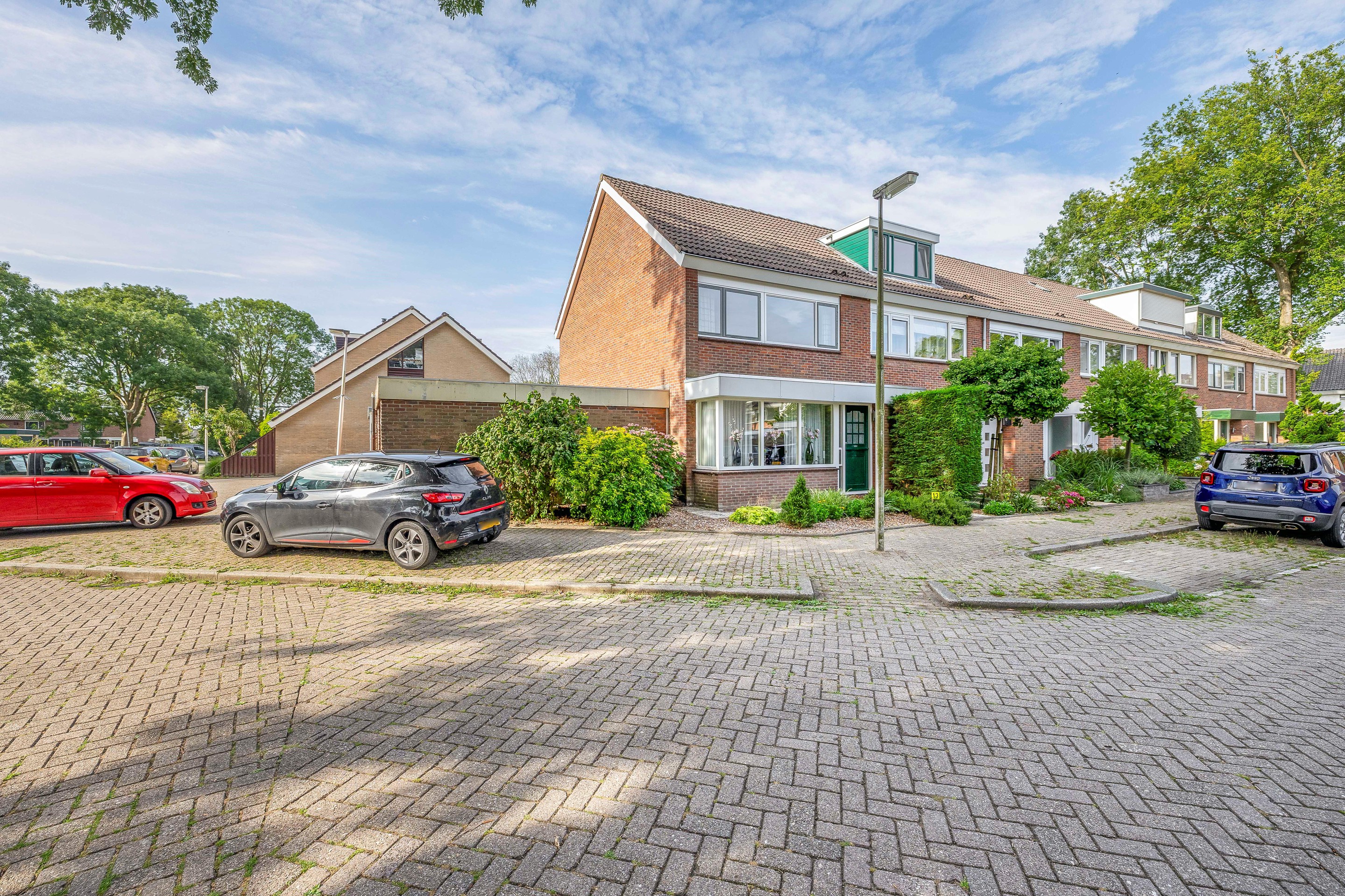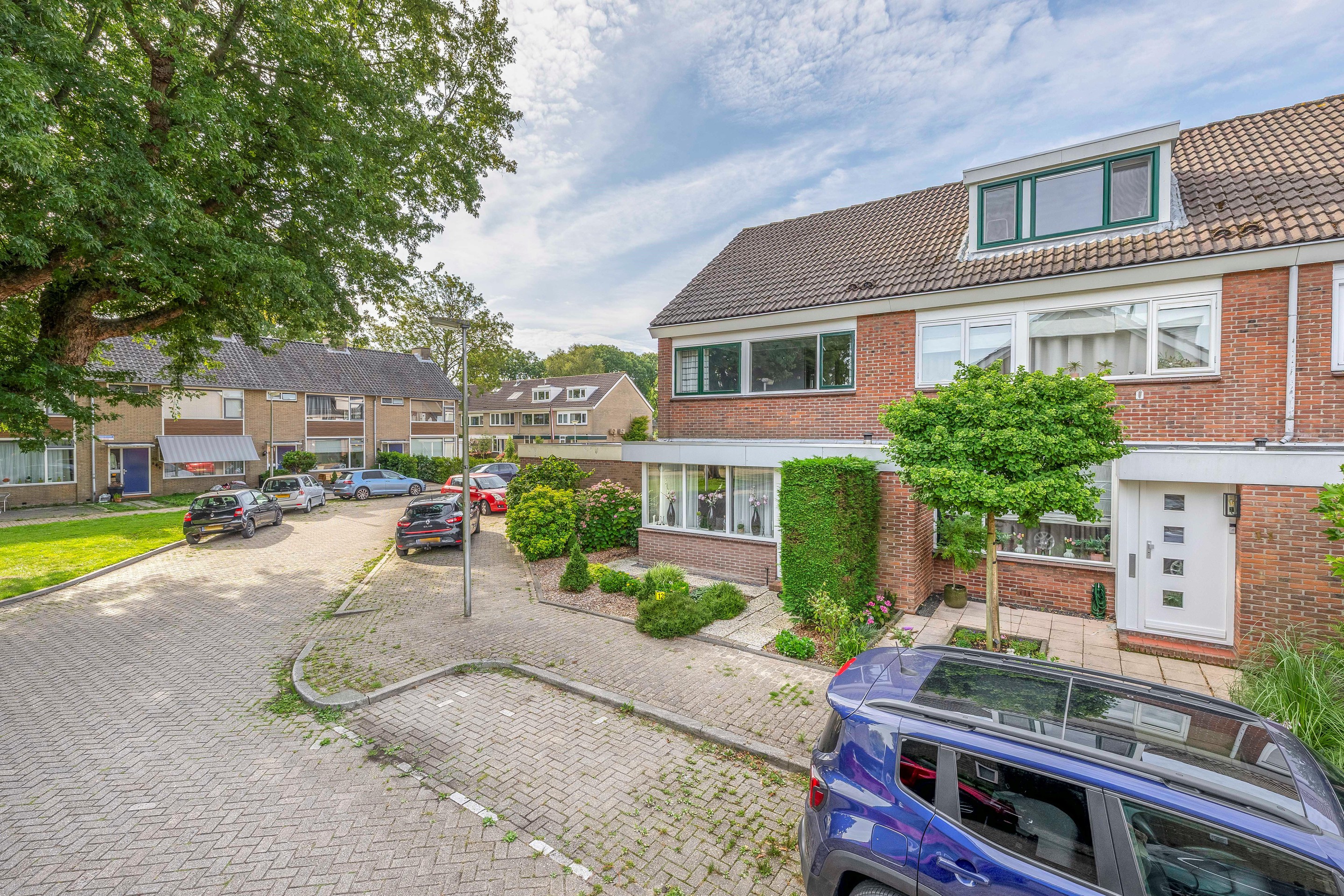 Deze woning ligt aan een rustige straat in de wijk Groenswaard. waar alleen bestemmingsverkeer komt. Er zijn openbare parkeerplaatsen voor de deur en er kan altijd geparkeerd worden op de plek voor de garage aan de zijkant van het huis. De woning ligt op loopafstand van winkelcentrum Groensvoorde en ook het KW-Plein met onder meer een supermarkt is op korte afstand. Schuin achter de woning ligt aan het eind van de straat een leuk speelveld voor de kinderen. Het treinstation Waddinxveen Noord is eveneens op loopafstand bereikbaar.