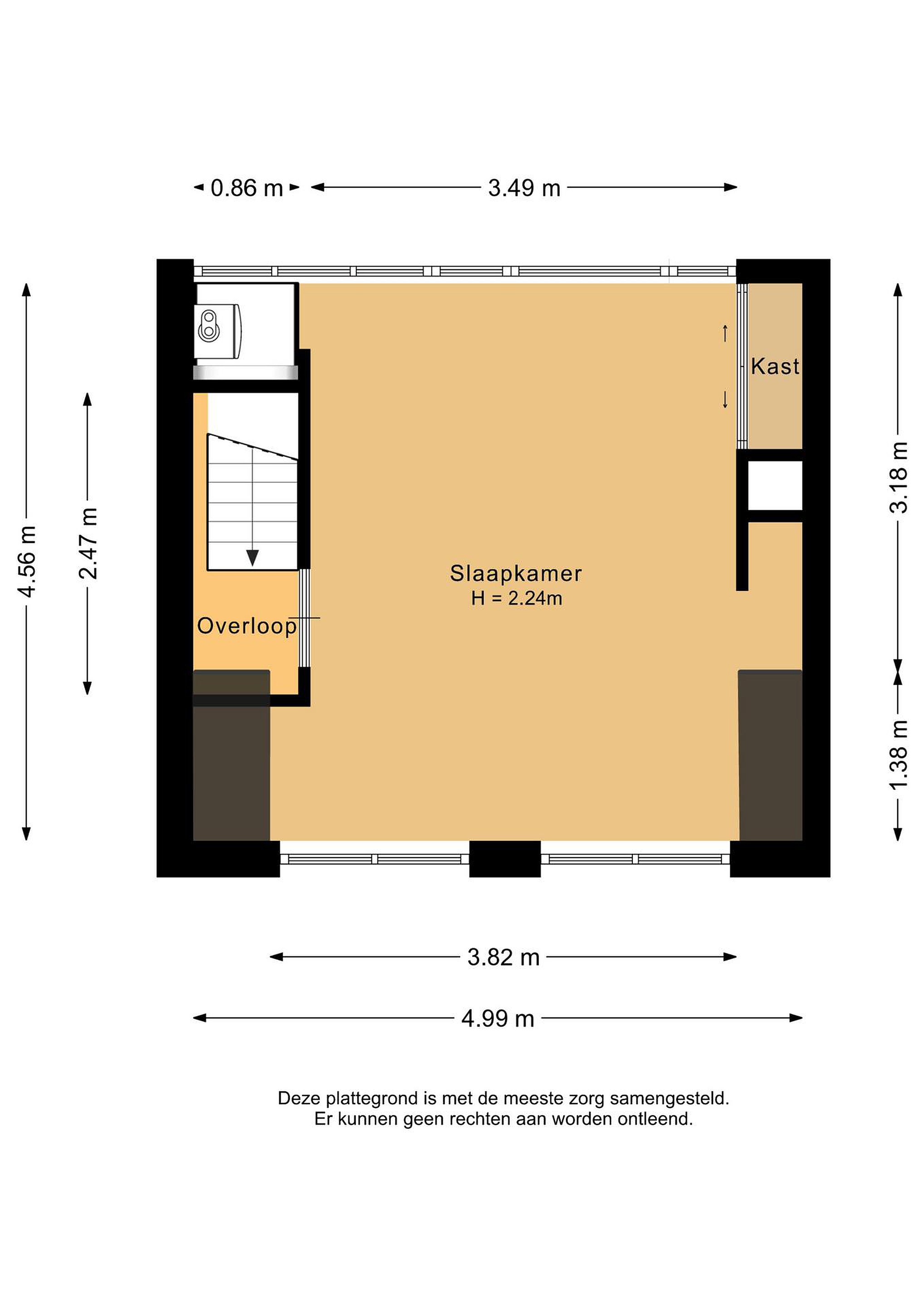 Deze objectinformatie is met zorg samengesteld, desalniettemin kunnen aan de verstrekte gegevens geen rechten worden ontleend en wordt elke aansprakelijkheid uitgesloten. De informatie dient uitsluitend ter presentatie van het object en geldt als uitnodiging tot het doen van een bod. Eventueel toegevoegde plattegronden zijn indicatief.