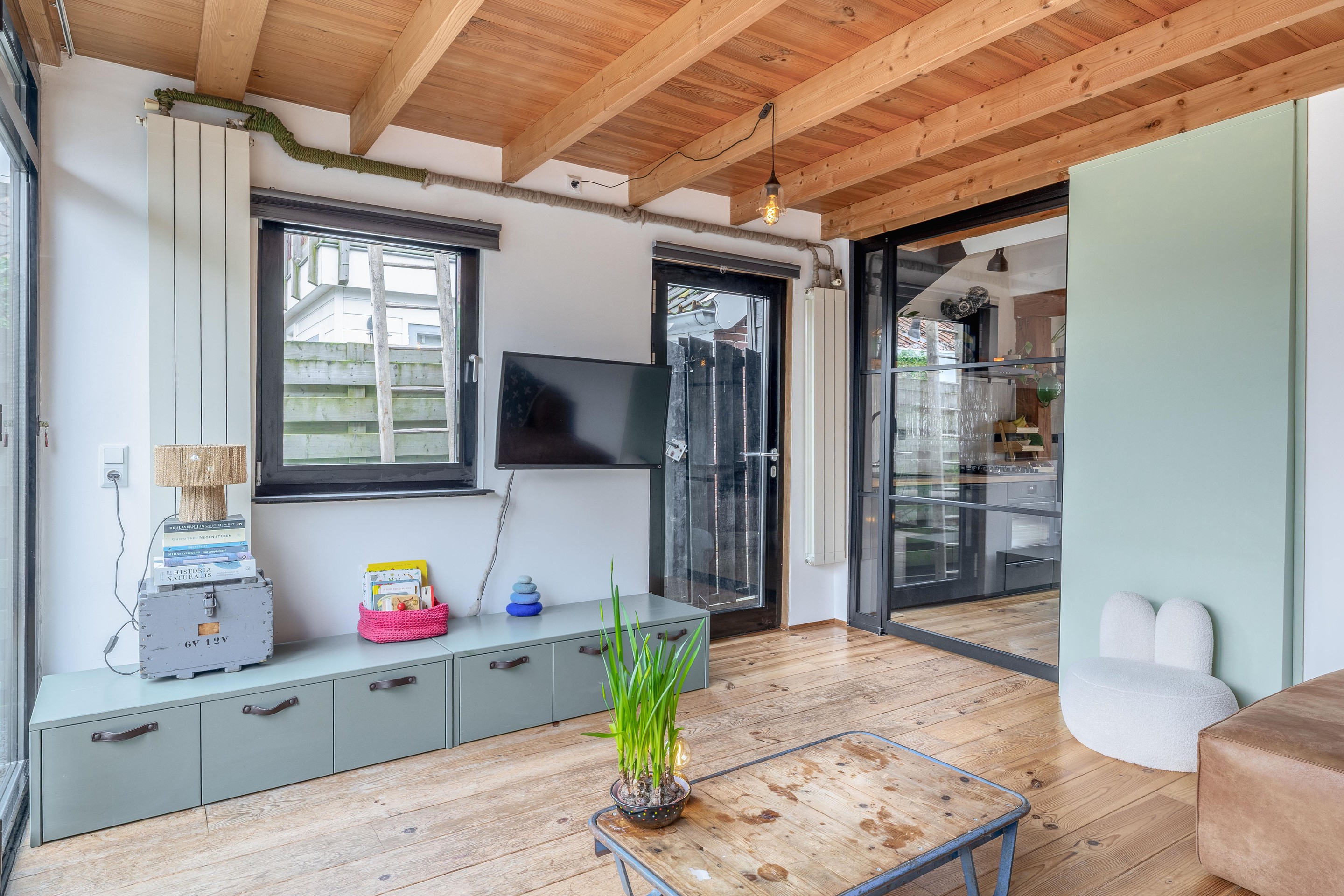 Wat deze woning écht uniek maakt, is het groene Sedumdak op de uitbouw. Dit ziet er niet alleen prachtig uit, maar werkt ook als natuurlijke airco: het houdt de woning heerlijk koel in de zomer en behaaglijk warm in de winter.